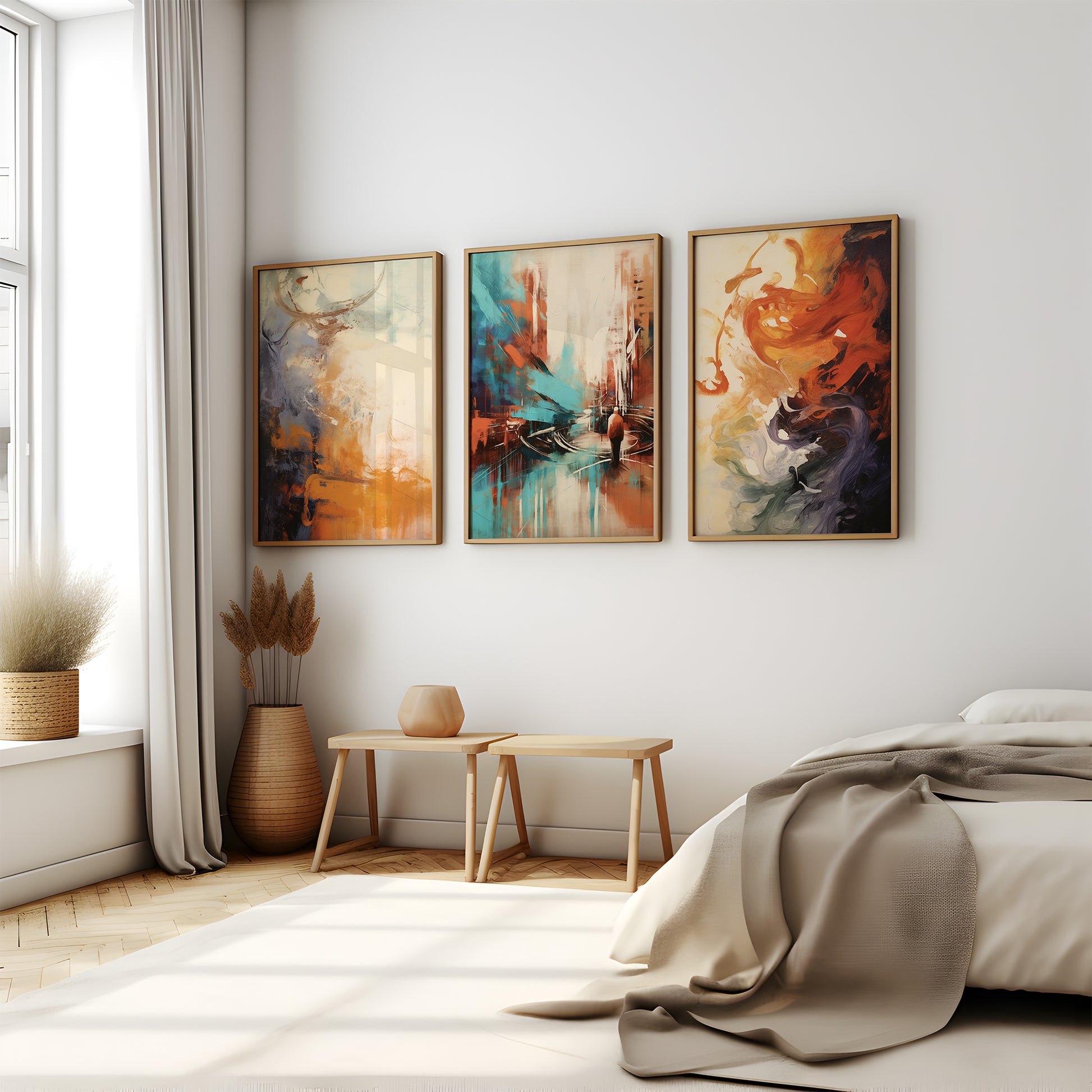 Abstract Art: Art that doesn’t attempt to represent anything realistically. It's often colorful, geometric, and great for adding a pop of energy.