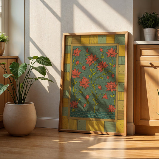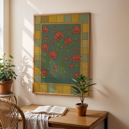 Lotus Flowers - Kalamkari Art- Indian Heritage Art