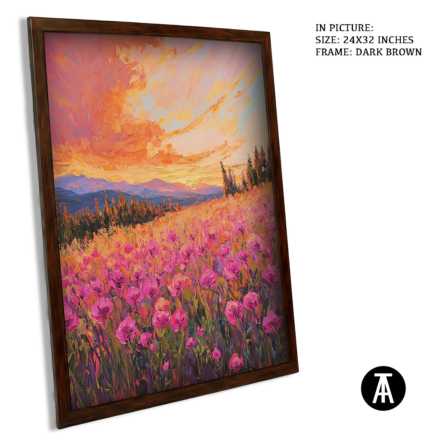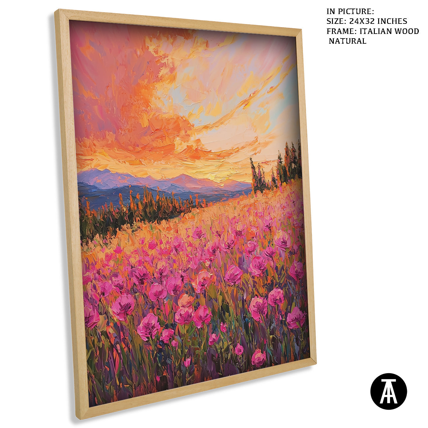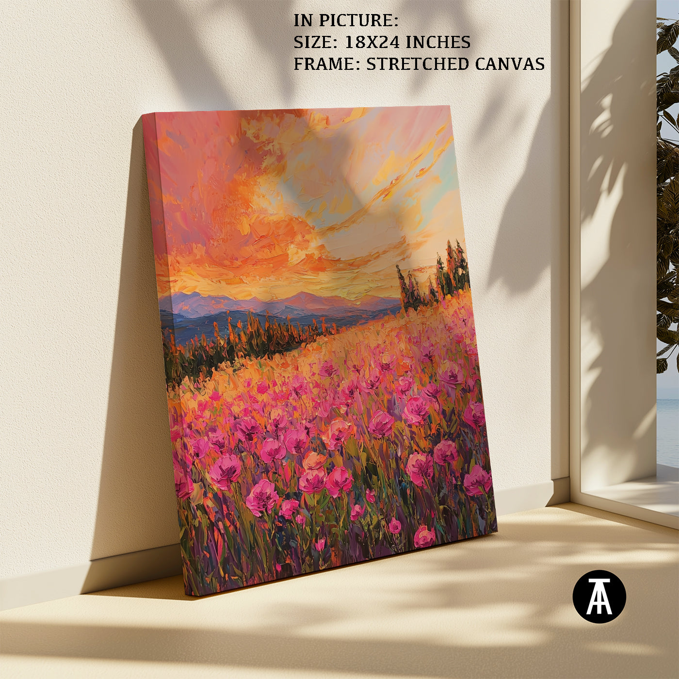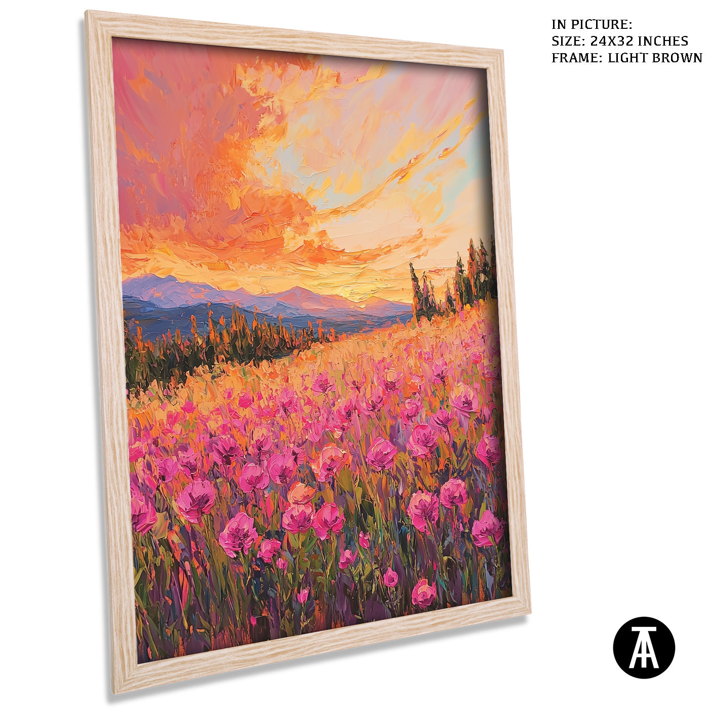 Enjoy the peaceful beauty of a pink sunrise with this artwork. The soft pink colors fill the sky, making it a perfect way to start your day. This piece shows the calm and quiet of the morning. It brings warmth and a positive feeling to your room. A great way to brighten up your space with a gentle touch of nature.