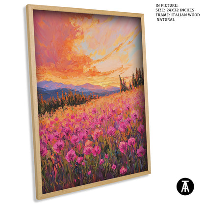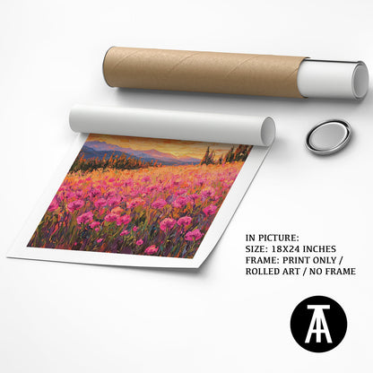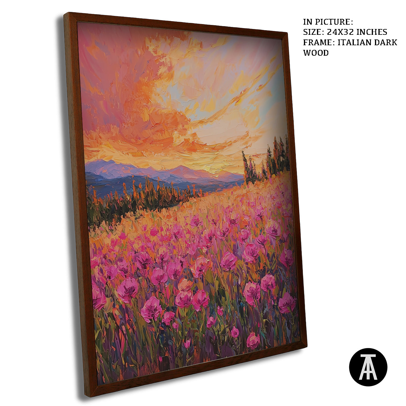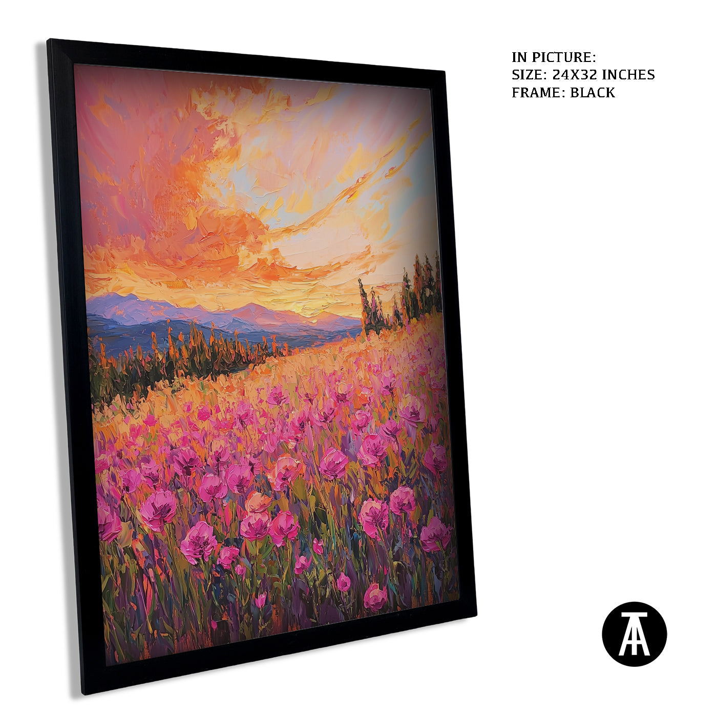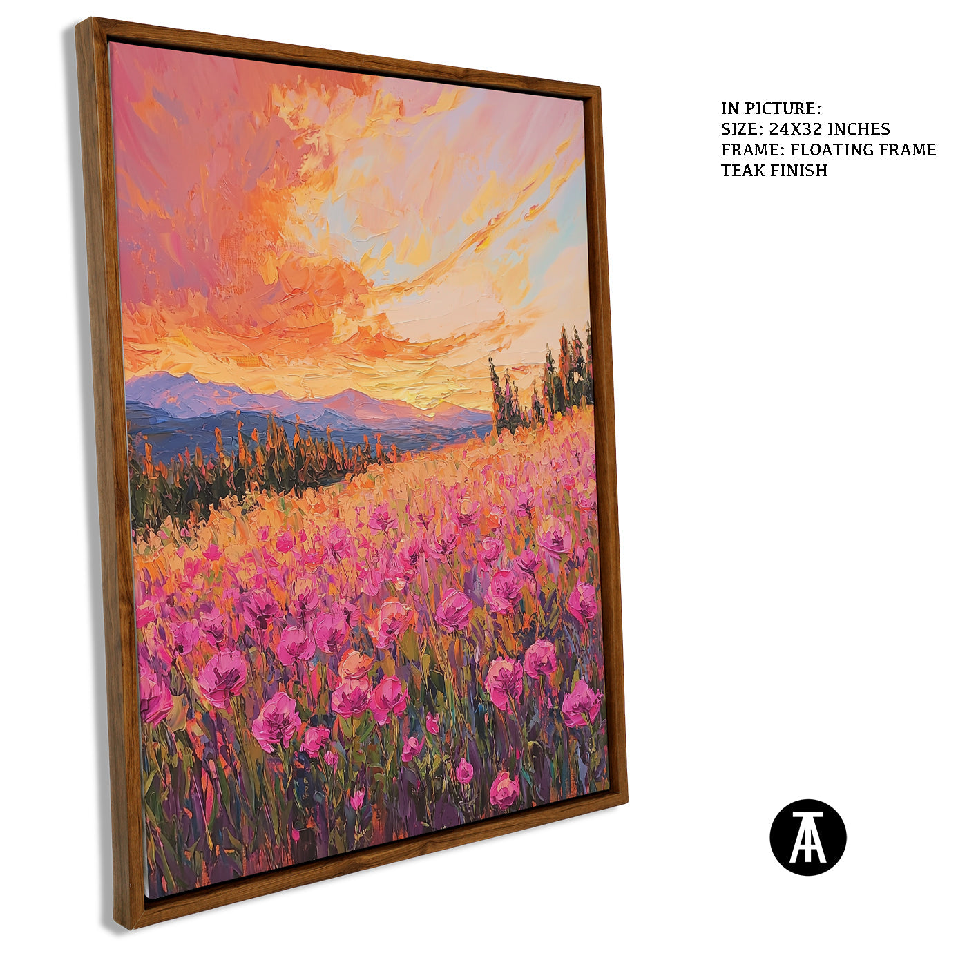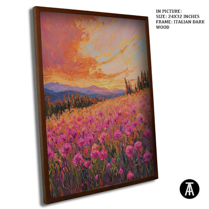 Enjoy the peaceful beauty of a pink sunrise with this artwork. The soft pink colors fill the sky, making it a perfect way to start your day. This piece shows the calm and quiet of the morning. It brings warmth and a positive feeling to your room. A great way to brighten up your space with a gentle touch of nature.