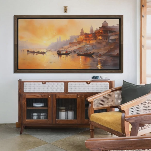 Capture the spiritual ambiance of Benares Ghats with our Indian art collection, showcasing the timeless beauty and cultural significance of this sacred riverfront.