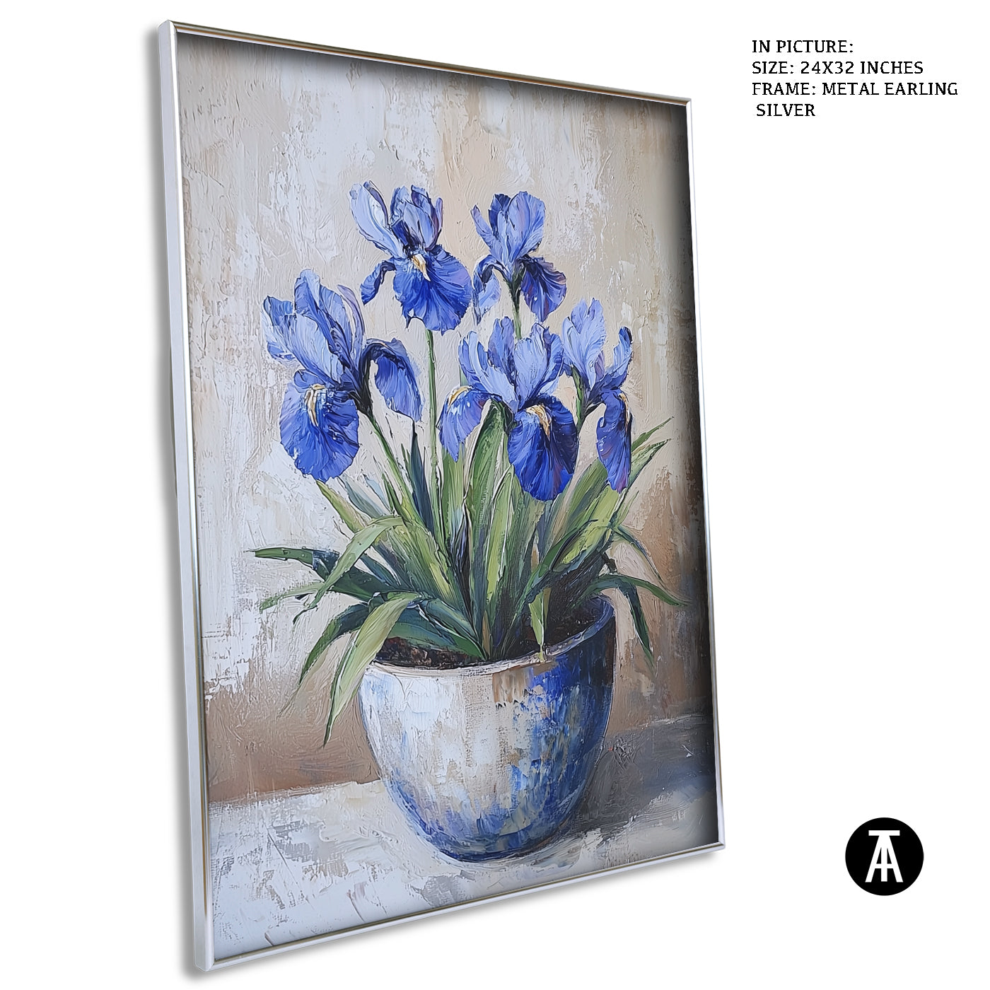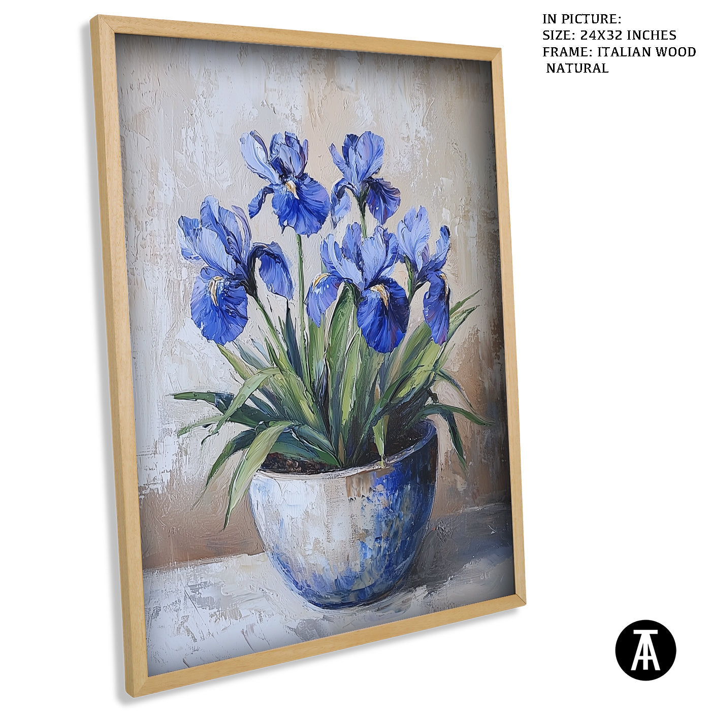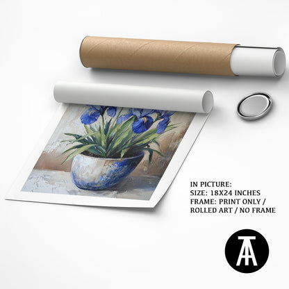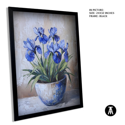 A stunning blue iris flower is the focus of this artwork. Its elegant petals and deep color make it a standout piece. The artwork captures the simple beauty of the iris in full bloom. It’s perfect for adding a touch of elegance and nature to your space. A lovely choice for flower lovers.