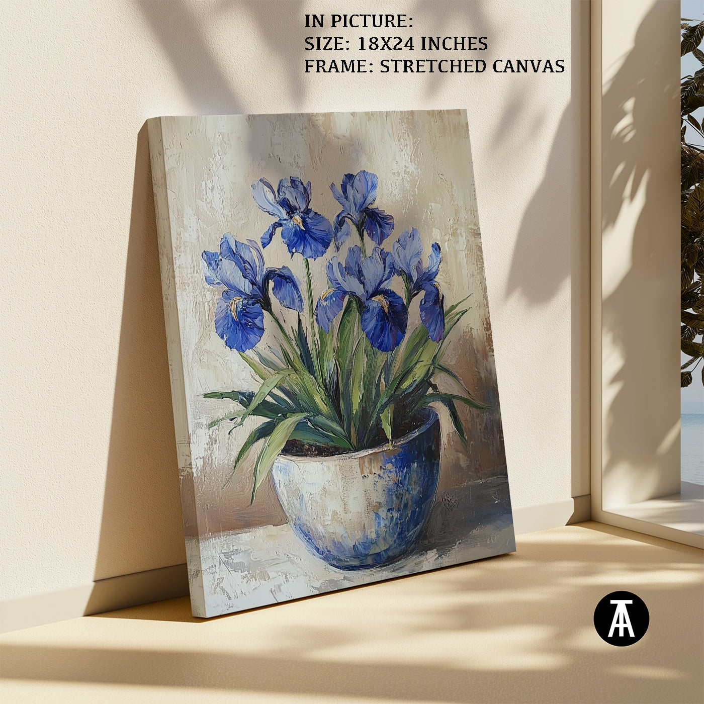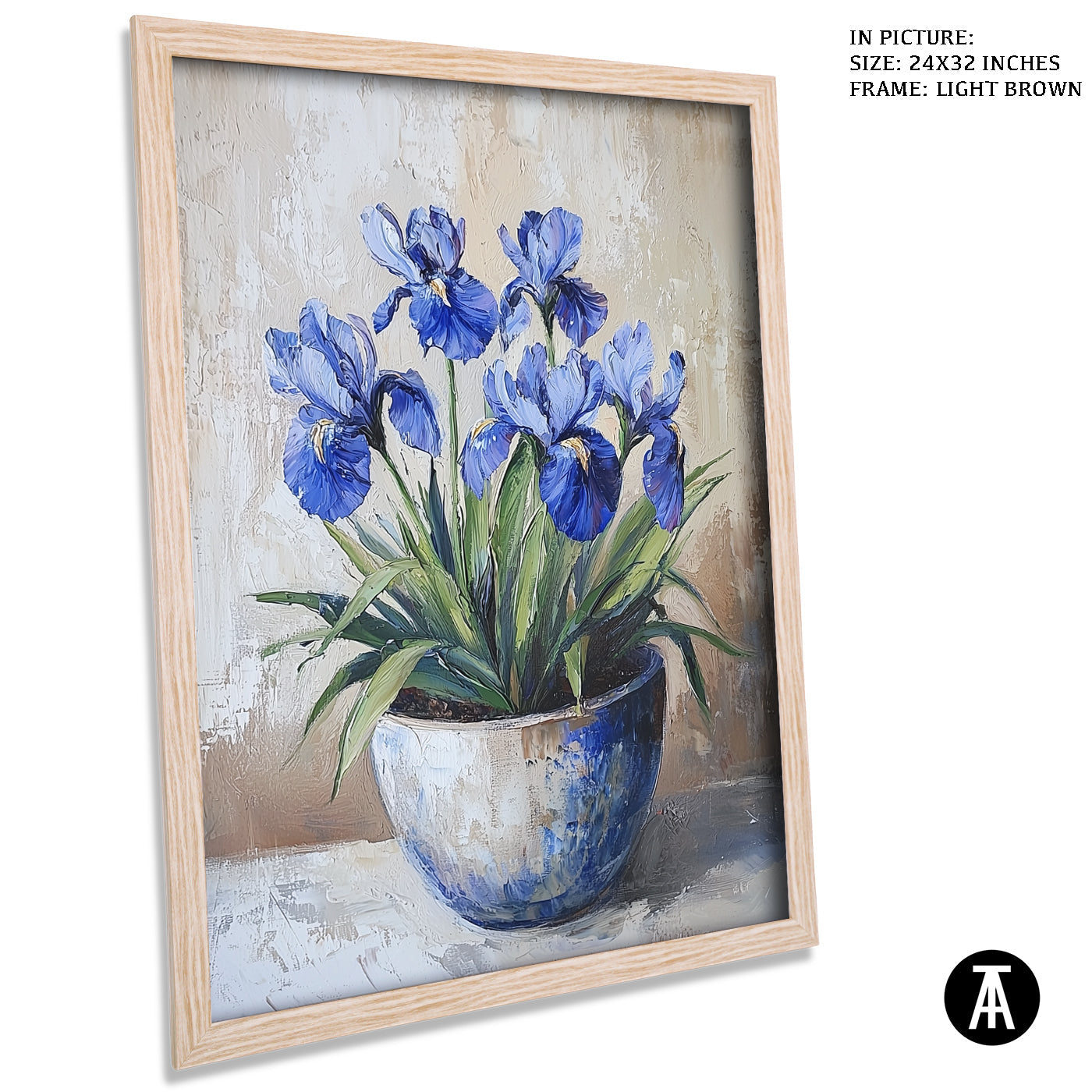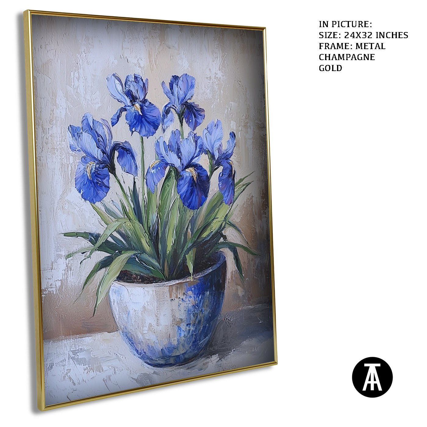 A stunning blue iris flower is the focus of this artwork. Its elegant petals and deep color make it a standout piece. The artwork captures the simple beauty of the iris in full bloom. It’s perfect for adding a touch of elegance and nature to your space. A lovely choice for flower lovers.
