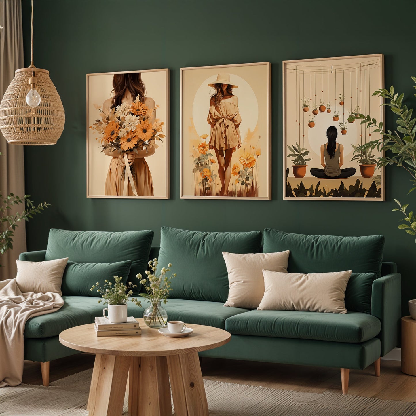 Introducing the Bohemian Lady Framed Art Collection, featuring a set of 3 14X18 inch pieces. Inspired by femininity, this boho-style gallery wall set adds a touch of charm to any space. Elevate your decor with the unique and artistic designs of Bohemian Lady.