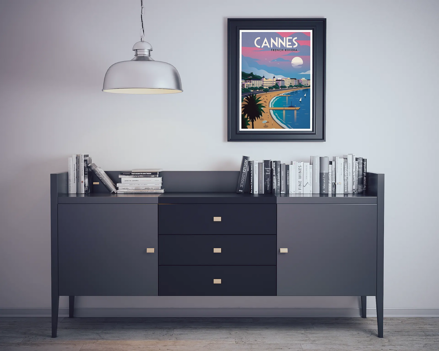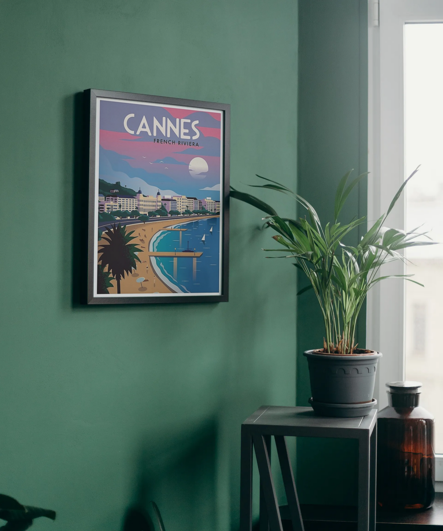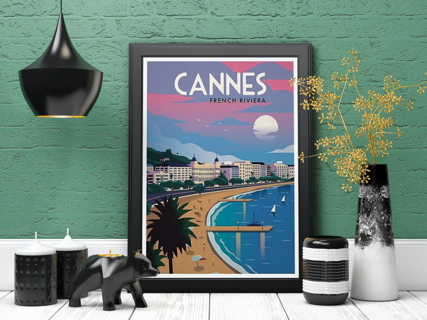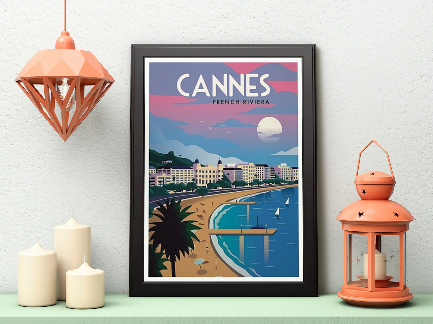 Experience the breathtaking beauty of the Cannes coastline with our Vintage Cannes Coast Poster. This captivating artwork captures the stunning blend of rugged cliffs, azure waters, and charming seaside villages that define the allure of the French Riviera. A perfect choice for art collectors and travel enthusiasts, this vintage poster brings the Mediterranean charm and coastal elegance of Cannes to your space, evoking a sense of serenity and wanderlust.