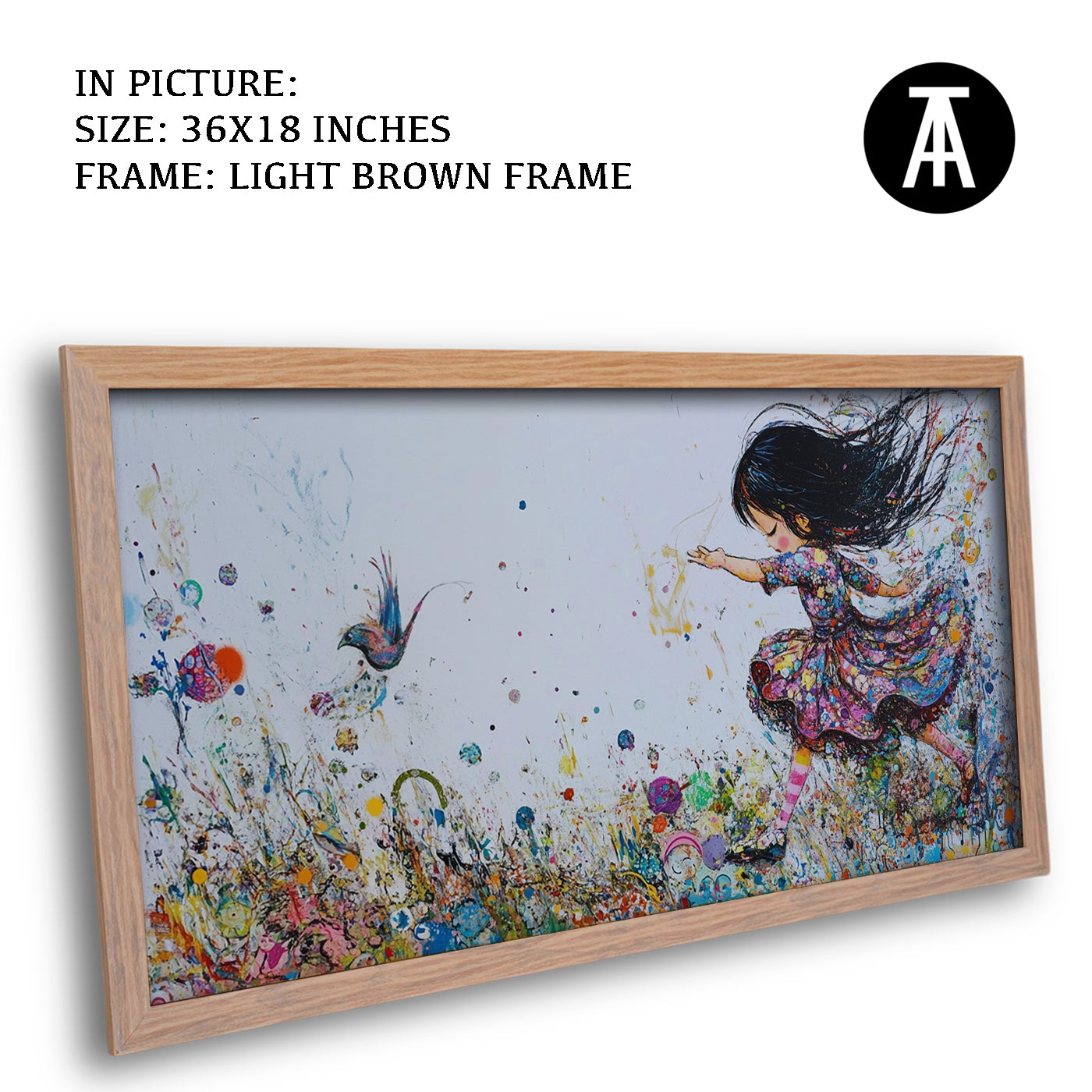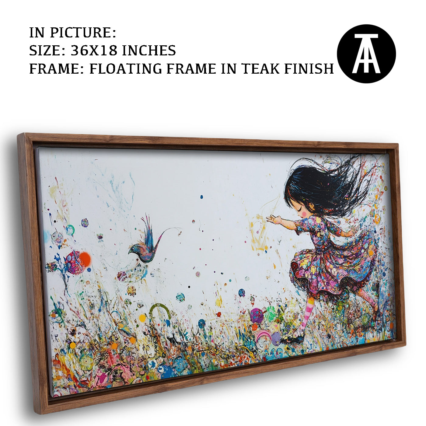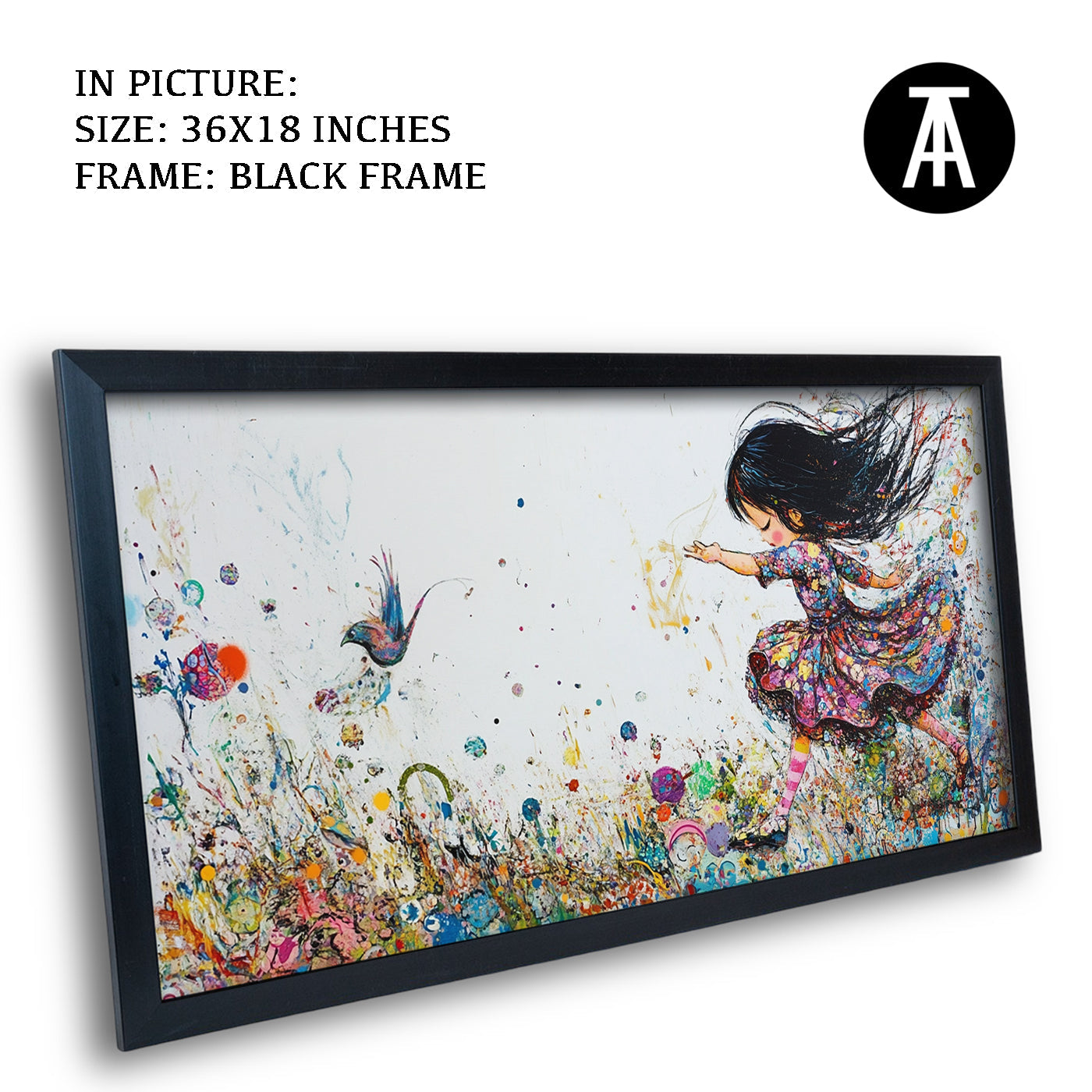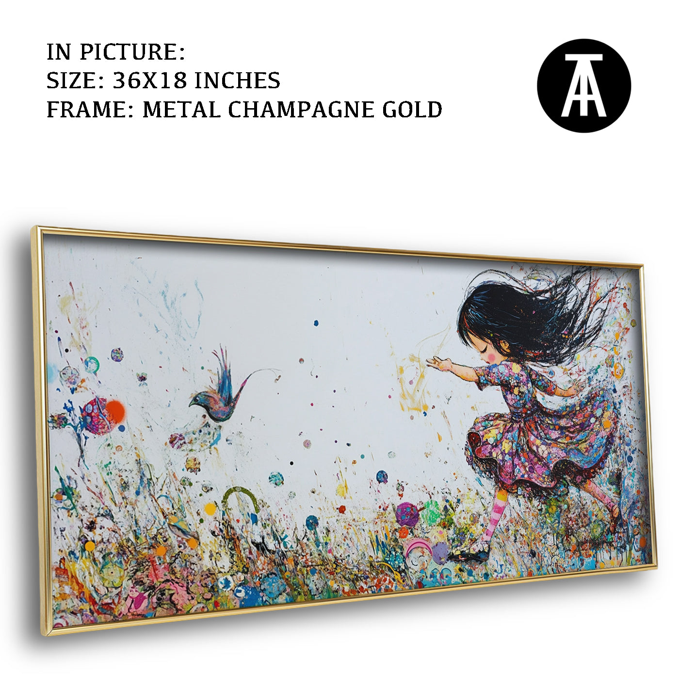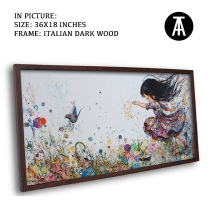 This vibrant, abstract painting by Pompidou Moderne is a burst of color and energy. A young girl, filled with wonder and curiosity, chases butterflies through a field of wildflowers. The playful shapes and dynamic brushstrokes evoke a sense of freedom and exploration. Perfect for adding a touch of nature and childhood innocence to any living room, this piece is sure to spark conversation and inspire a sense of wonder.