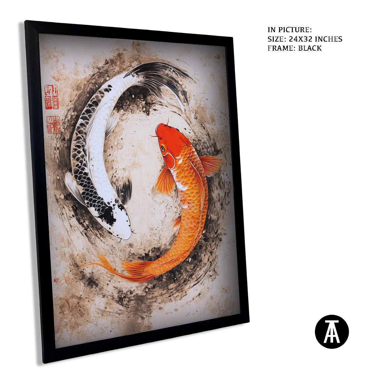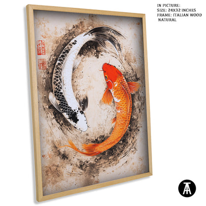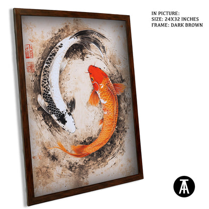 This framed artwork features a beautiful depiction of Chinese Koi Fish. The koi are gracefully swimming, symbolizing good luck, prosperity, and perseverance. The vibrant colors and flowing water bring a sense of peace and harmony, making it a perfect piece to enhance any space.