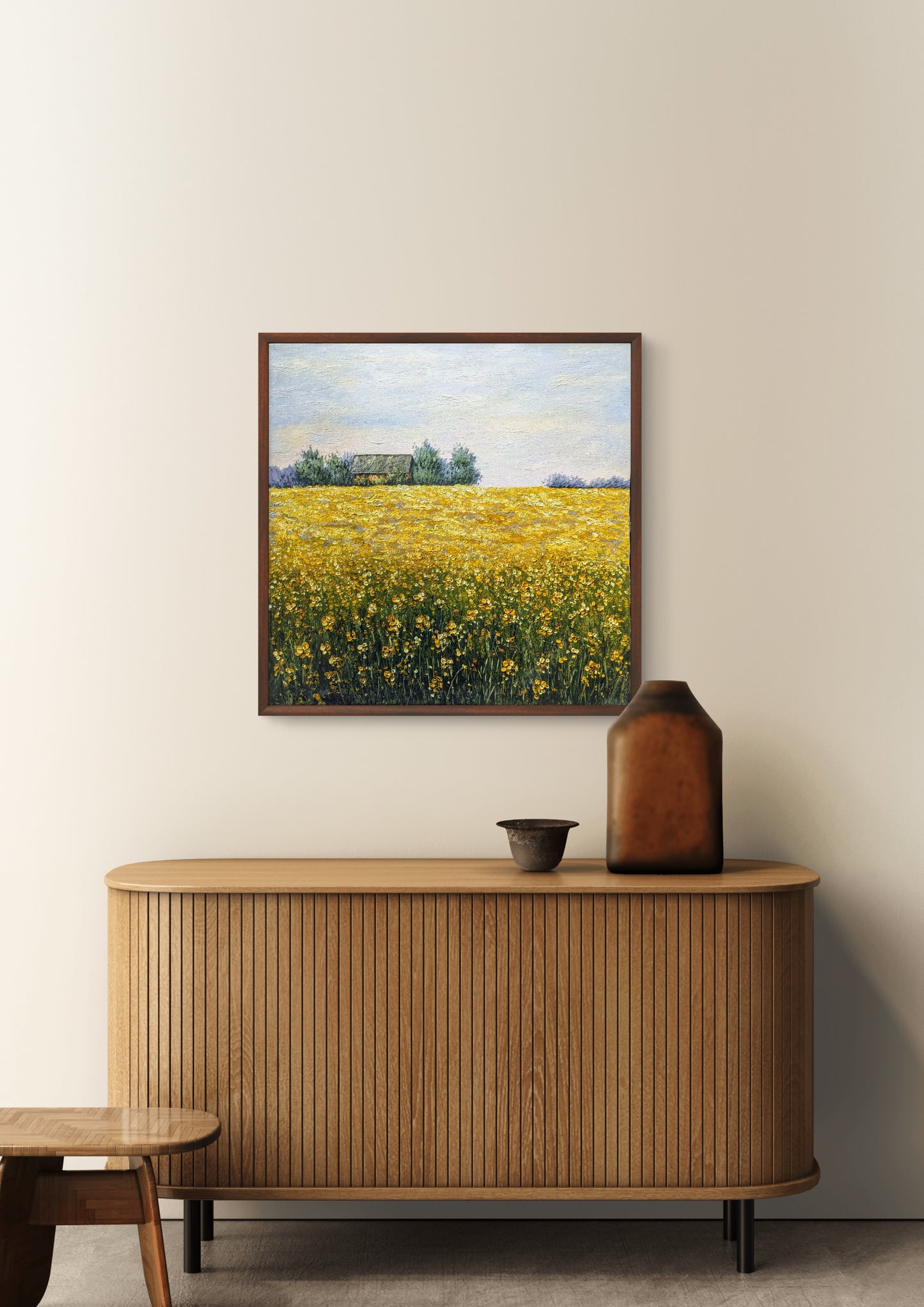 Brighten your space with "Cottage in the Field," a beautiful handmade oil painting on canvas. This artwork depicts a charming countryside scene, capturing the tranquility and simplicity of rural life. Painted with high-quality oils, it will add a peaceful and elegant touch to your decor. Perfect for anyone who loves nature and art, this painting will make your room feel warm and welcoming.