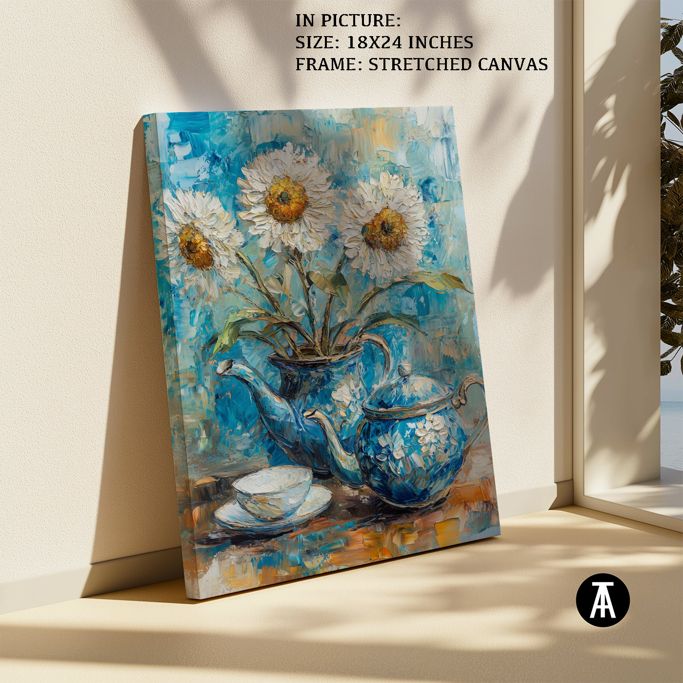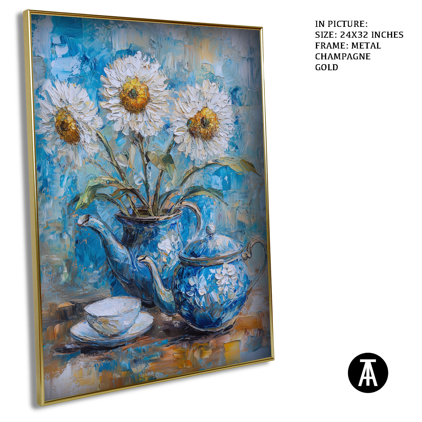 This artwork shows a delightful collection of flowers perfect for a tea party setting. The soft colors and delicate blooms create a warm, inviting feel. It’s great for adding a touch of elegance and charm to your home. Perfect for creating a cozy and welcoming atmosphere. Enjoy the beauty of a garden tea party with this lovely piece.