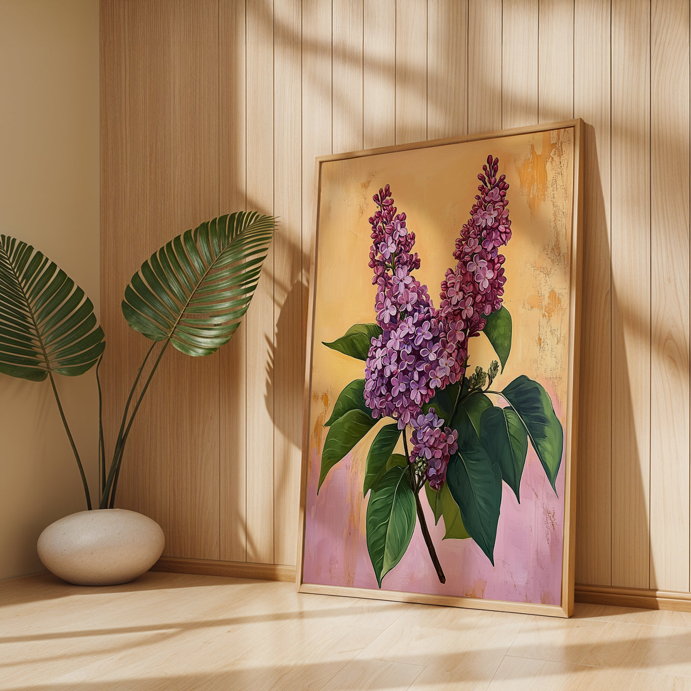 This artwork captures the soft beauty of lilacs in full bloom. The delicate purple flowers and fresh green leaves create a peaceful and refreshing look. It’s perfect for bringing the calm and charm of springtime into your home. Enjoy the simple beauty of lilacs with this lovely piece.
