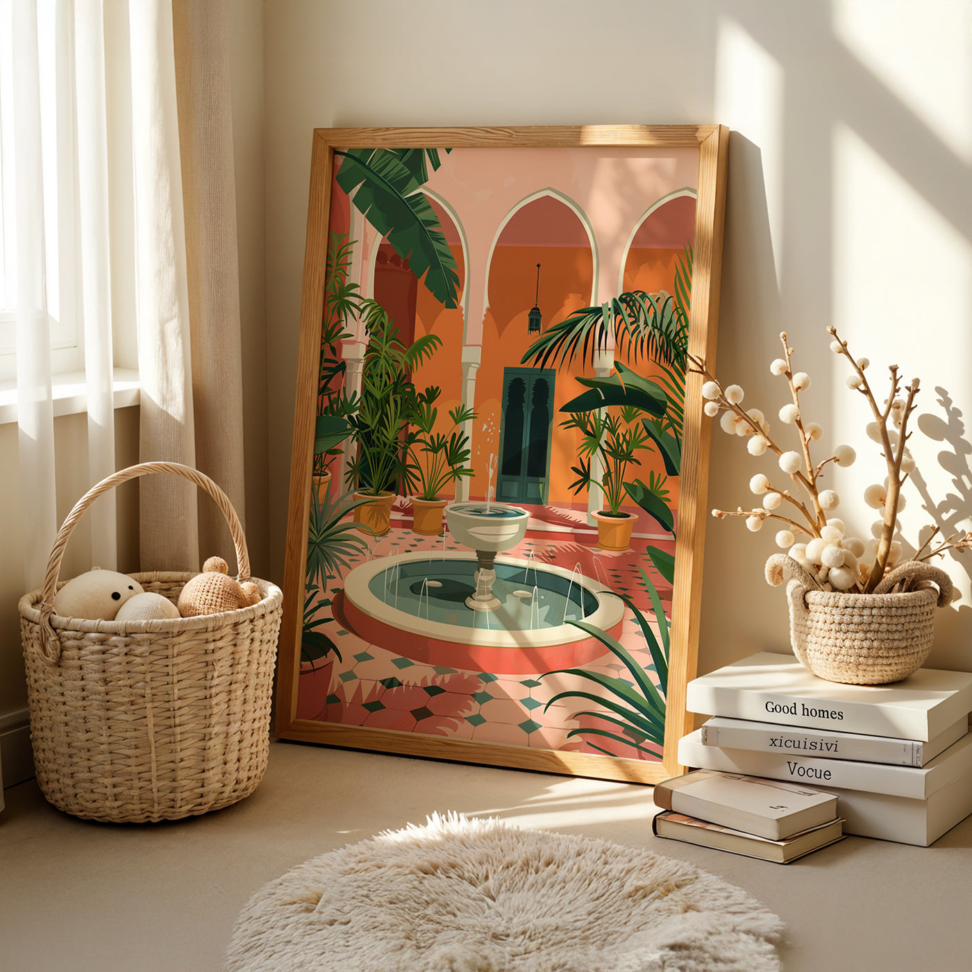 Elevate your home decor with our stunning Fountain in the Courtyard art. This captivating bohemian painting captures the serene beauty of nature, making it a perfect addition to your wall art collection. Whether you're looking to refresh your space or add a touch of boho charm, this exquisite wall painting brings tranquility and elegance to any room. Ideal for creating a cozy atmosphere in your home!