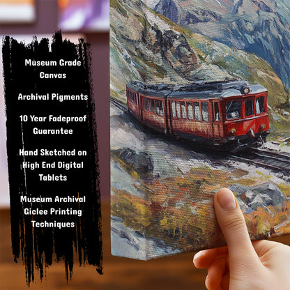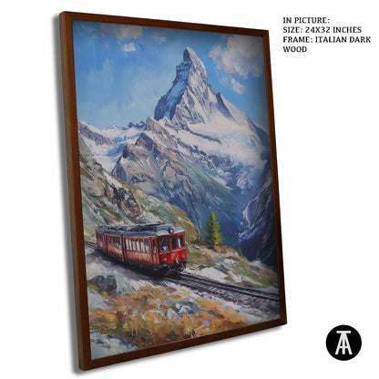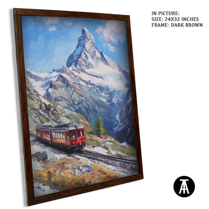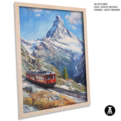 Bring the thrill of Swiss alpine adventures into your home with this captivating framed art of the Gornergrat Railway. This stunning painting showcases the iconic train as it winds through the majestic Swiss Alps, offering a breathtaking view of snow-capped peaks and lush valleys. Perfect for any living room, office, or travel-inspired space, this modern wall art adds a sense of wanderlust and elegance to your décor. A true conversation piece, it combines the beauty of nature with the excitement of exploration. Elevate your walls with this unforgettable Gornergrat Railway artwork today.