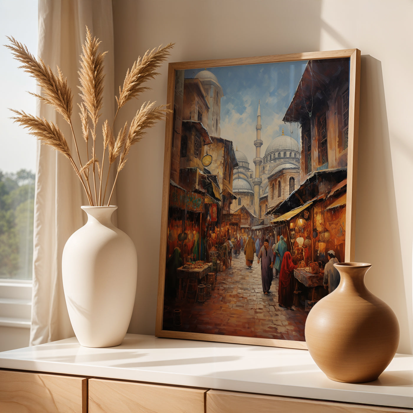 Embark on a journey through the bustling lanes of Istanbul with a framed artwork featuring the grandeur of the Grand Bazaar. This luxurious piece seamlessly blends luxury decor and cultural richness, making it an ideal addition to your wall art collection. Immerse your living space in the vibrant and diverse scenes of Istanbul's historic marketplace.