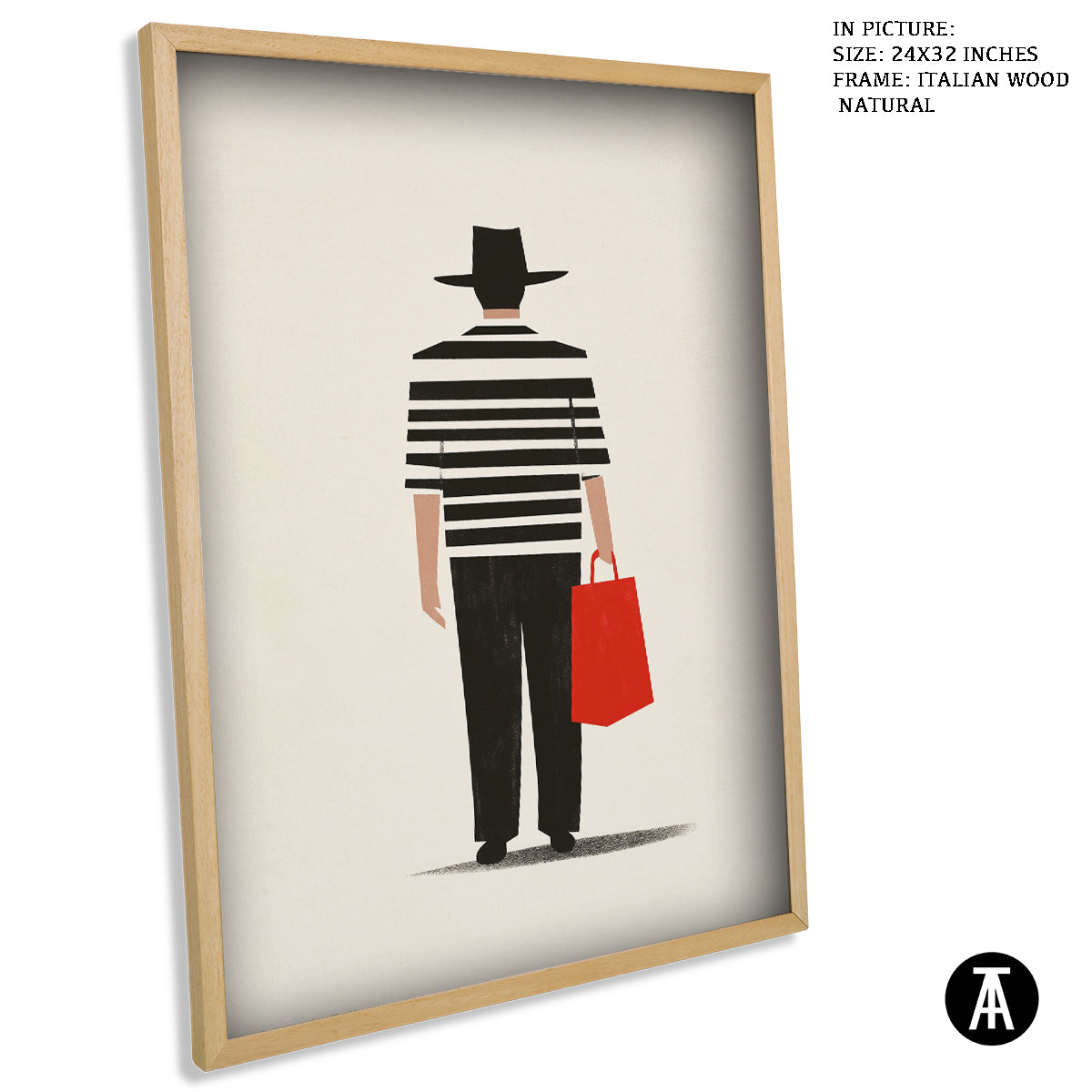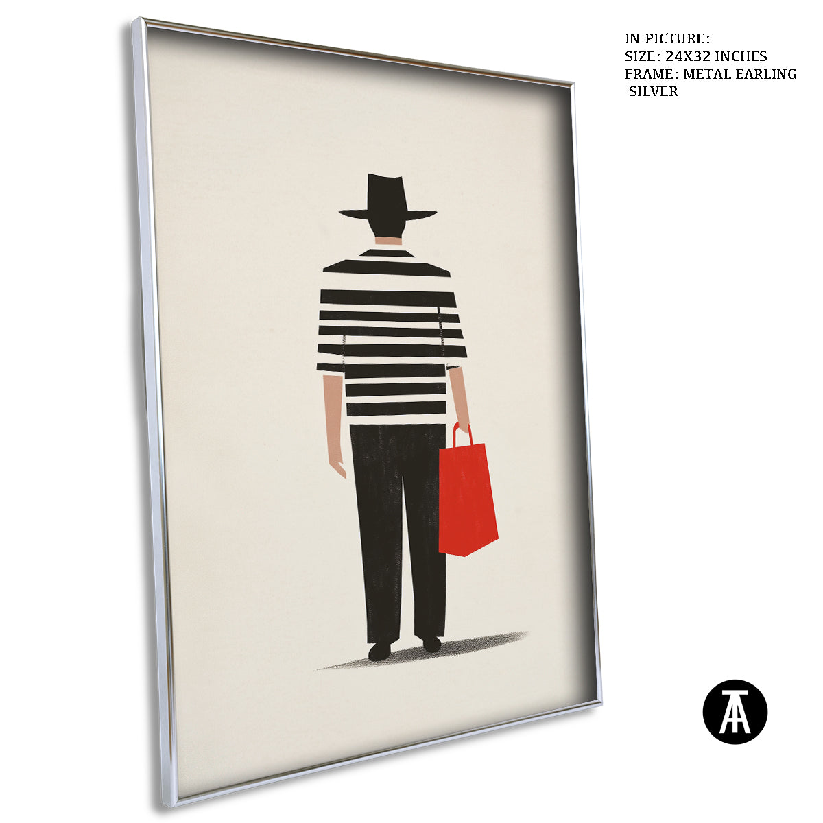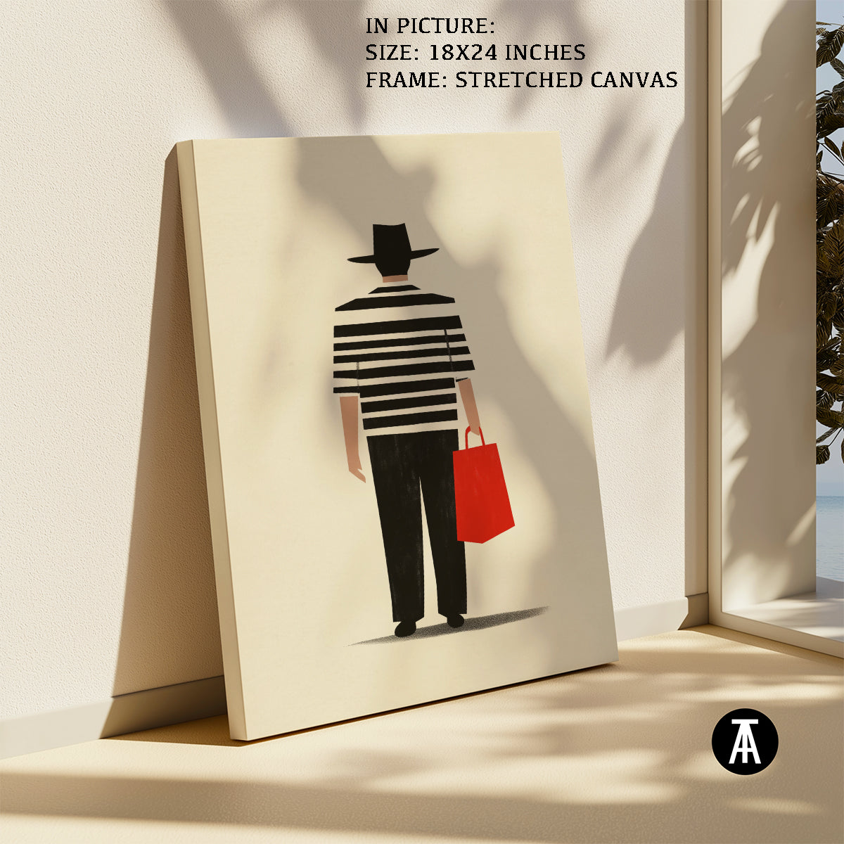 This minimalist piece captures a man heading home after a day's work with pure, flowing lines. Emphasizing the beauty of everyday life, it draws from Scandinavian simplicity. It evokes a sense of quiet joy, nostalgia, and mindfulness. Ideal for adding a calming and elegant touch to living rooms, studios, or cozy nooks.