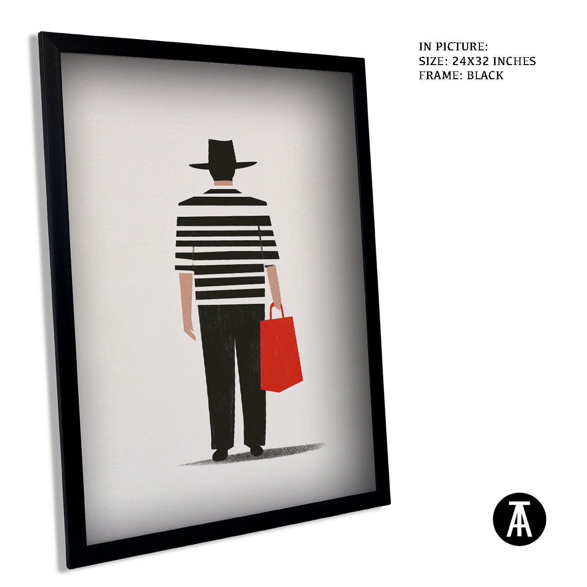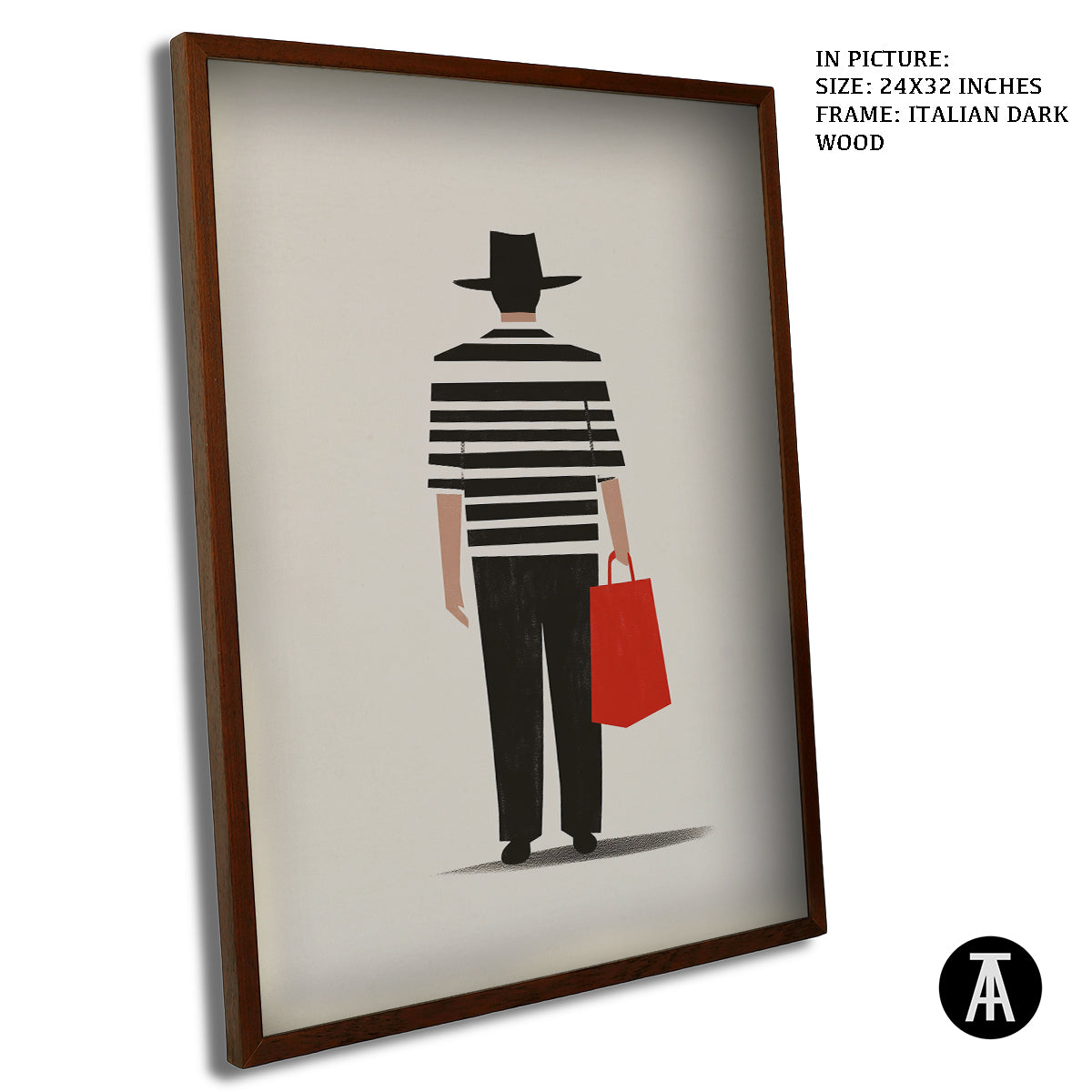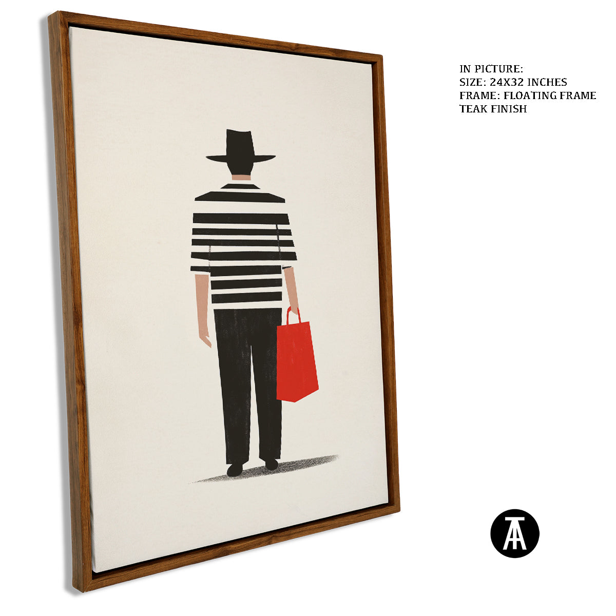 This minimalist piece captures a man heading home after a day's work with pure, flowing lines. Emphasizing the beauty of everyday life, it draws from Scandinavian simplicity. It evokes a sense of quiet joy, nostalgia, and mindfulness. Ideal for adding a calming and elegant touch to living rooms, studios, or cozy nooks.