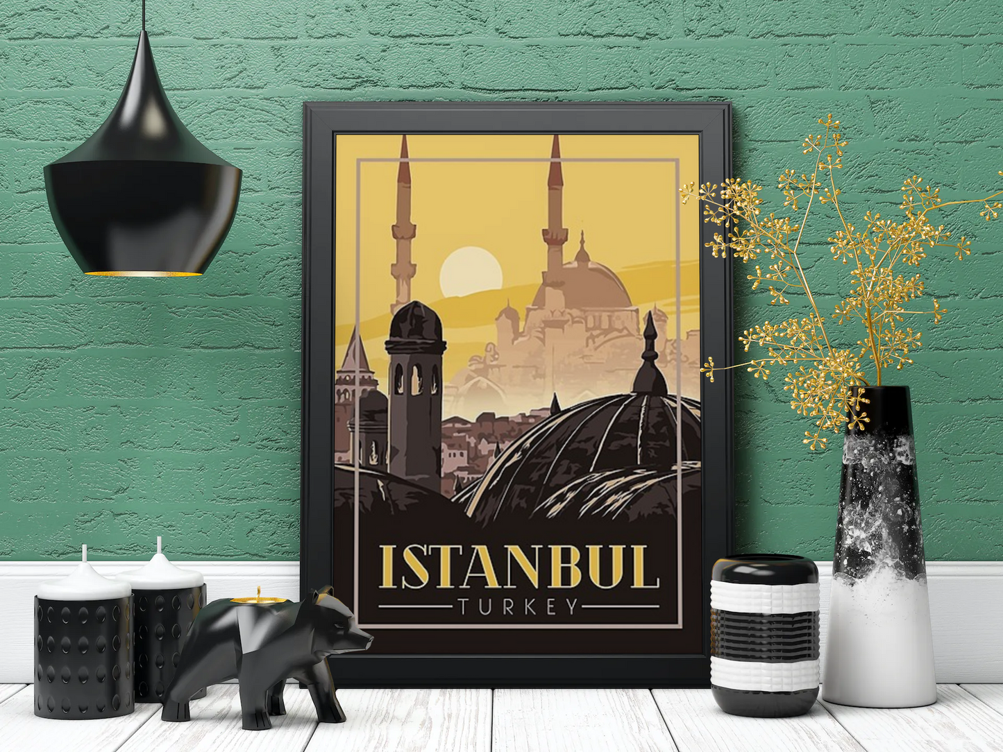 Experience the architectural marvel of Istanbul with our Vintage Istanbul Hagia Sophia Poster. This captivating artwork transports you to the iconic Hagia Sophia, showcasing its majestic domes, intricate details, and historical significance. A perfect choice for art enthusiasts and travel lovers, this vintage poster brings the allure of Istanbul's rich heritage and architectural splendor to your space, infusing it with a touch of timeless beauty and a sense of cultural exploration.
