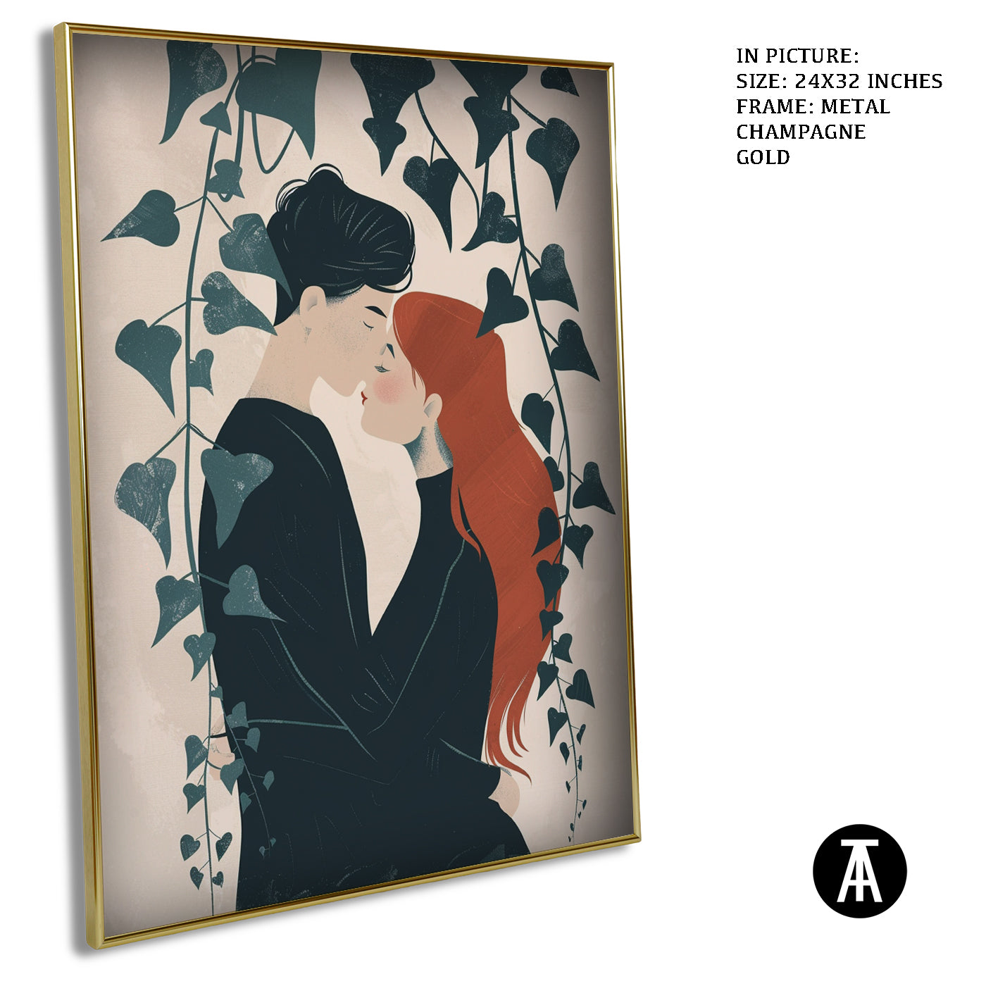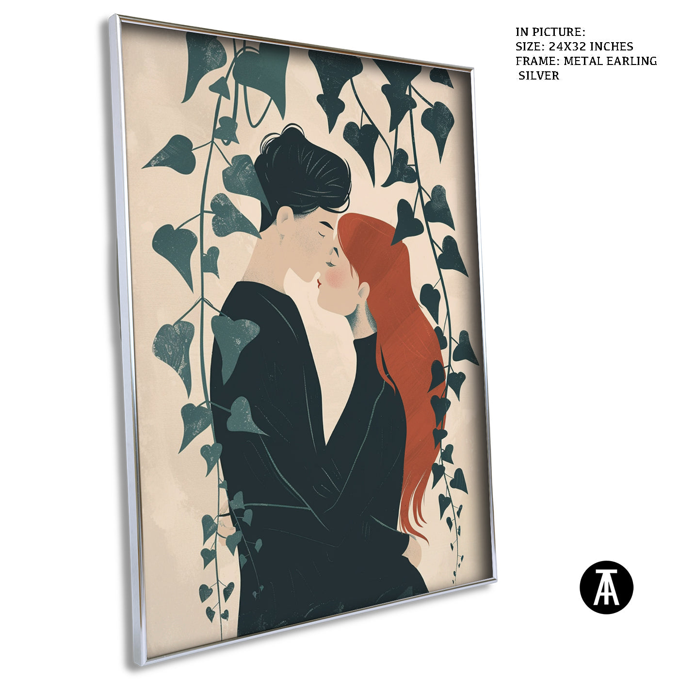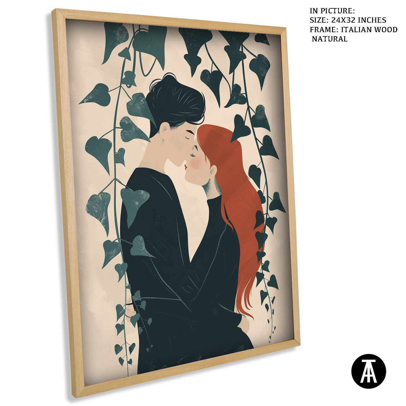 Transform your space with Kissing under the Ivy, a stunning art piece that captures a moment of romance amidst lush greenery. This bohemian painting is perfect for adding a touch of warmth to your home decor, making it an eye-catching addition to any wall. Elevate your wall art collection with this beautiful depiction of love and nature. Ideal for those who appreciate unique wall paintings that tell a story!