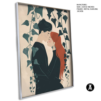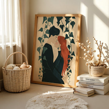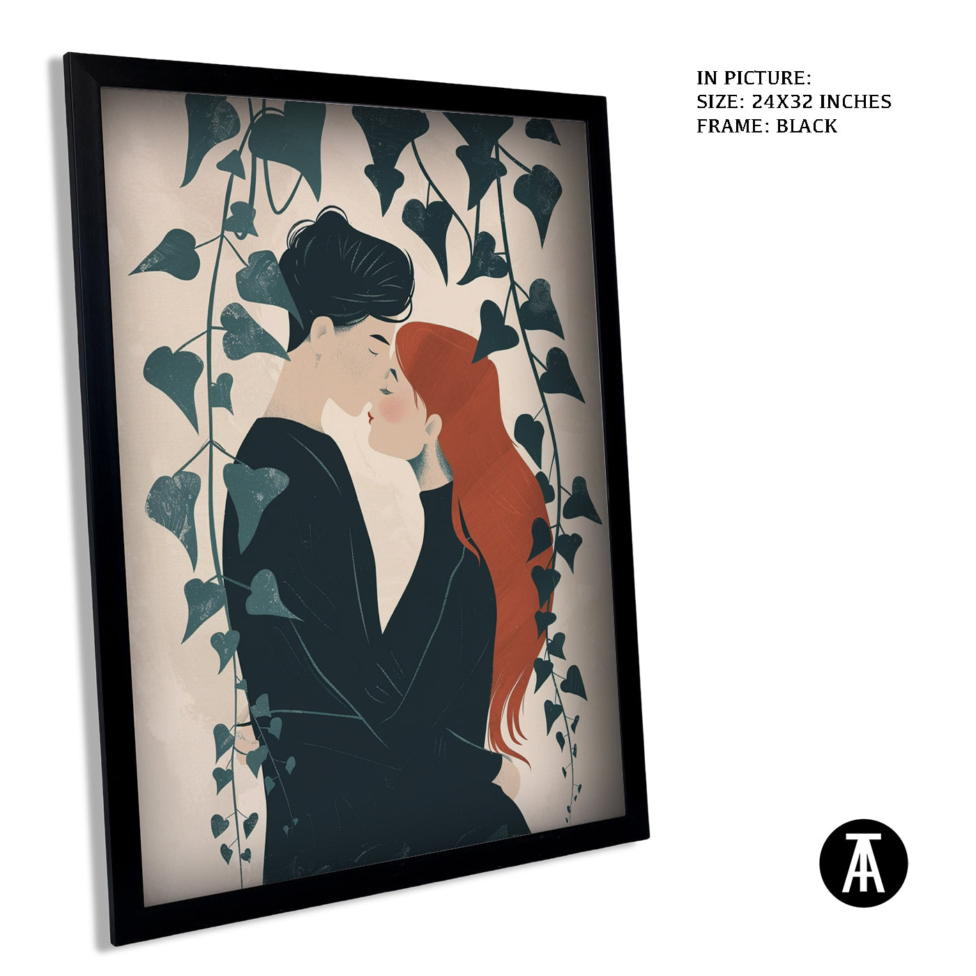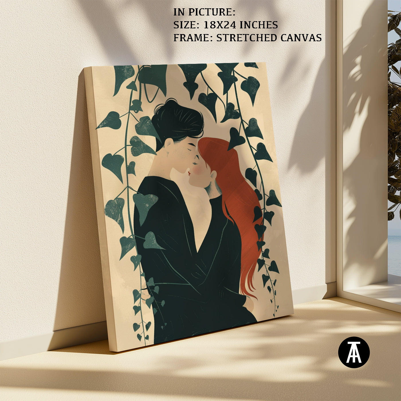 Transform your space with Kissing under the Ivy, a stunning art piece that captures a moment of romance amidst lush greenery. This bohemian painting is perfect for adding a touch of warmth to your home decor, making it an eye-catching addition to any wall. Elevate your wall art collection with this beautiful depiction of love and nature. Ideal for those who appreciate unique wall paintings that tell a story!