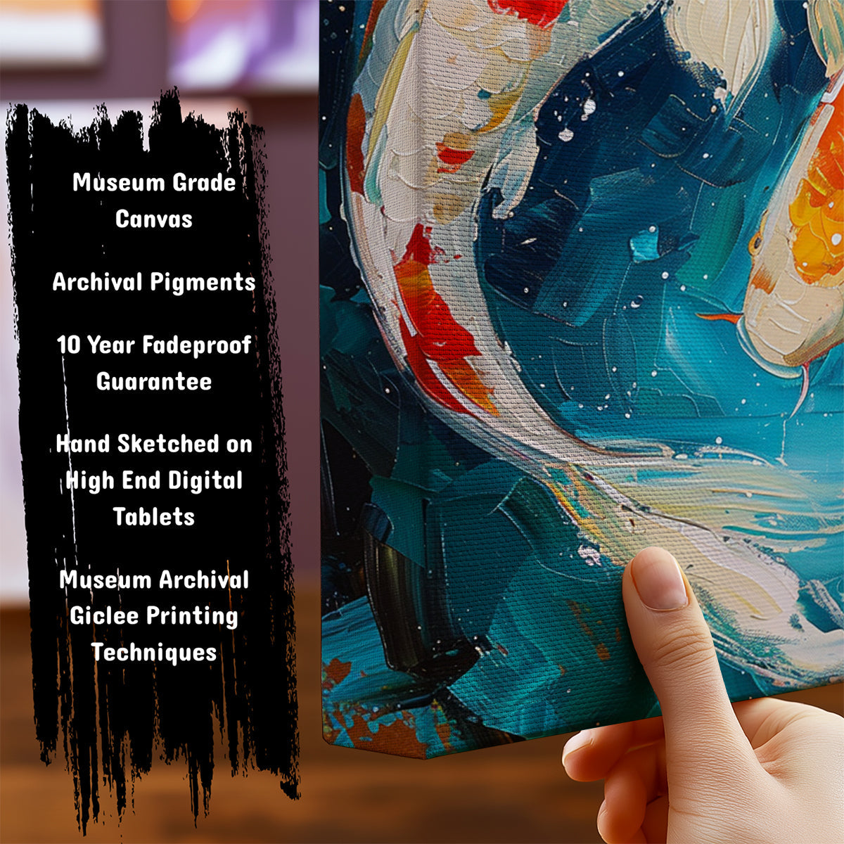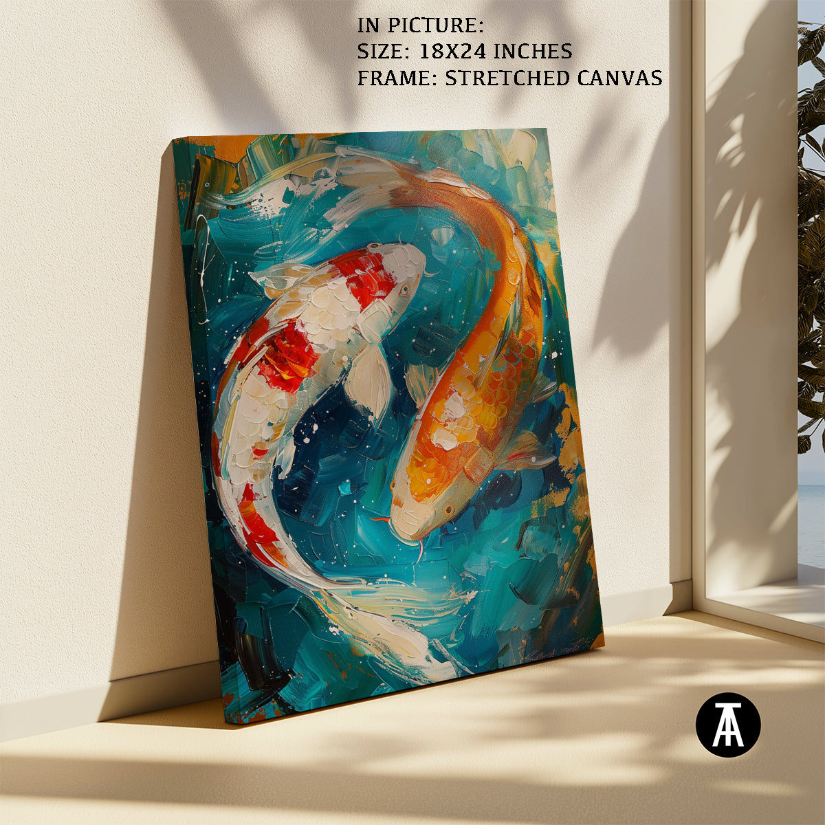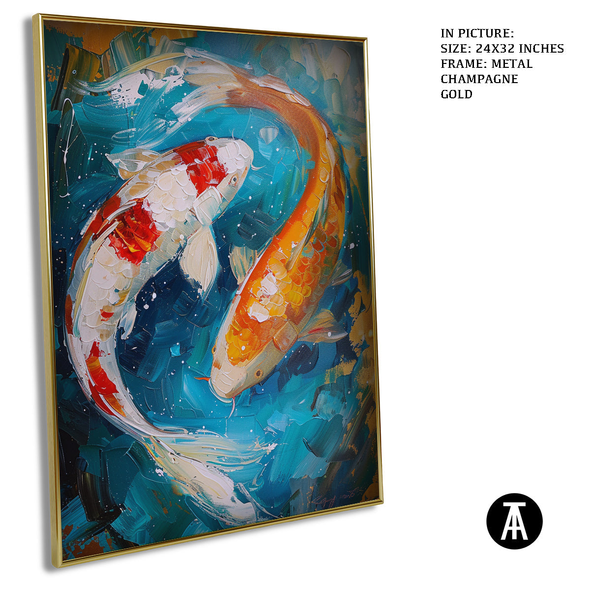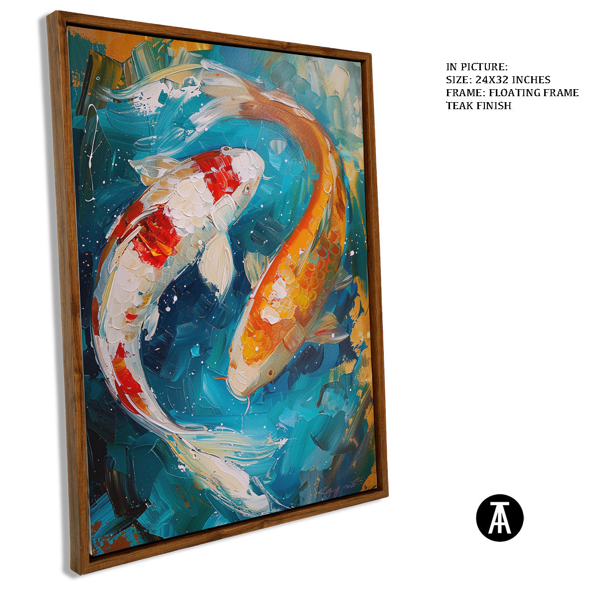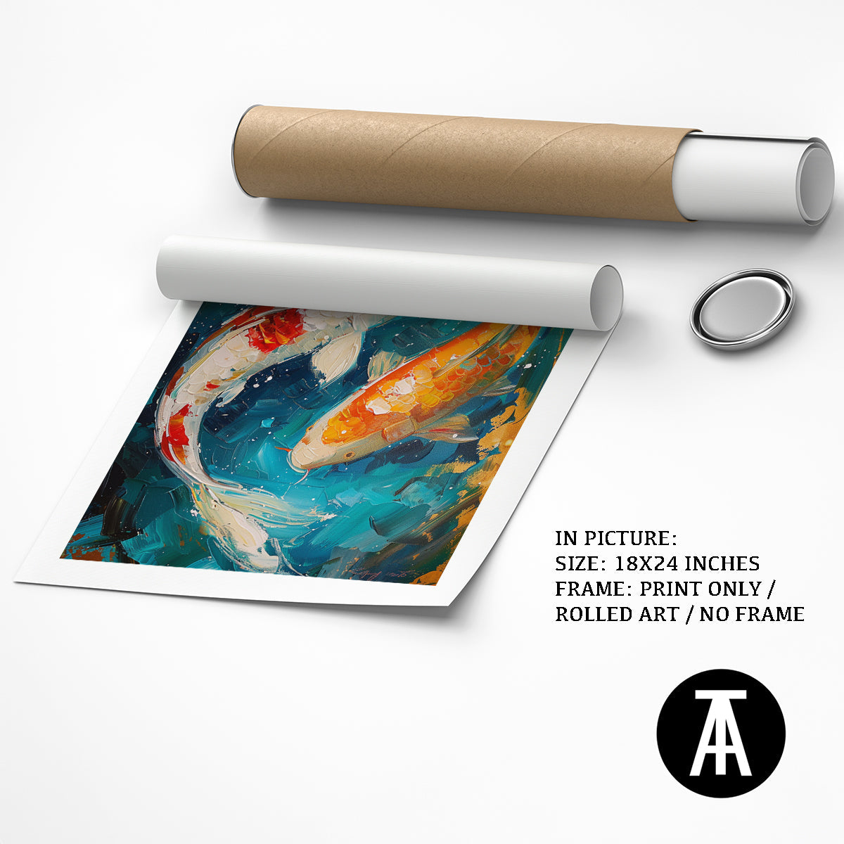 This framed artwork, titled "Koi Fish Pond," captures the serene beauty of a peaceful pond filled with vibrant koi fish. The detailed illustration brings the gentle ripples of water and the graceful movement of the fish to life, creating a calming and harmonious atmosphere. Perfect for adding a touch of tranquility to any space.
