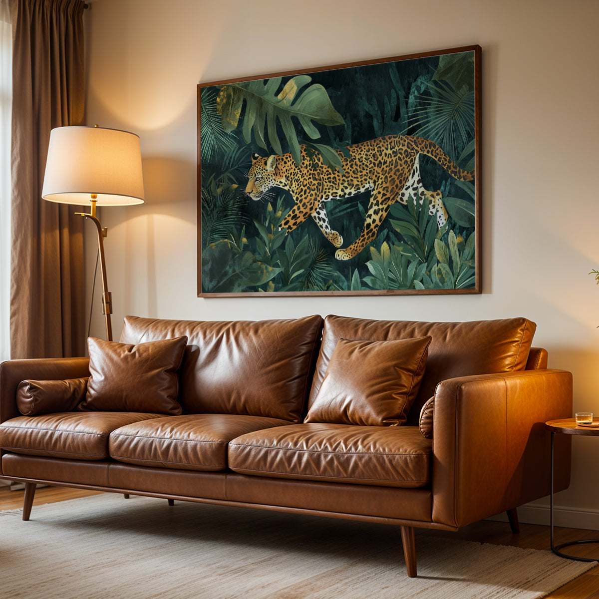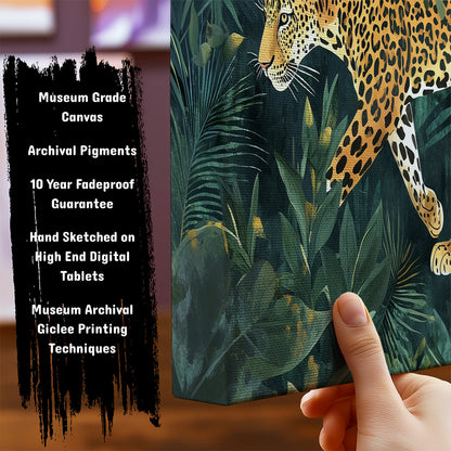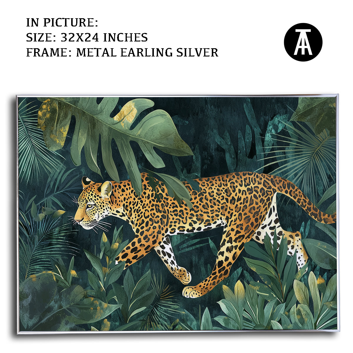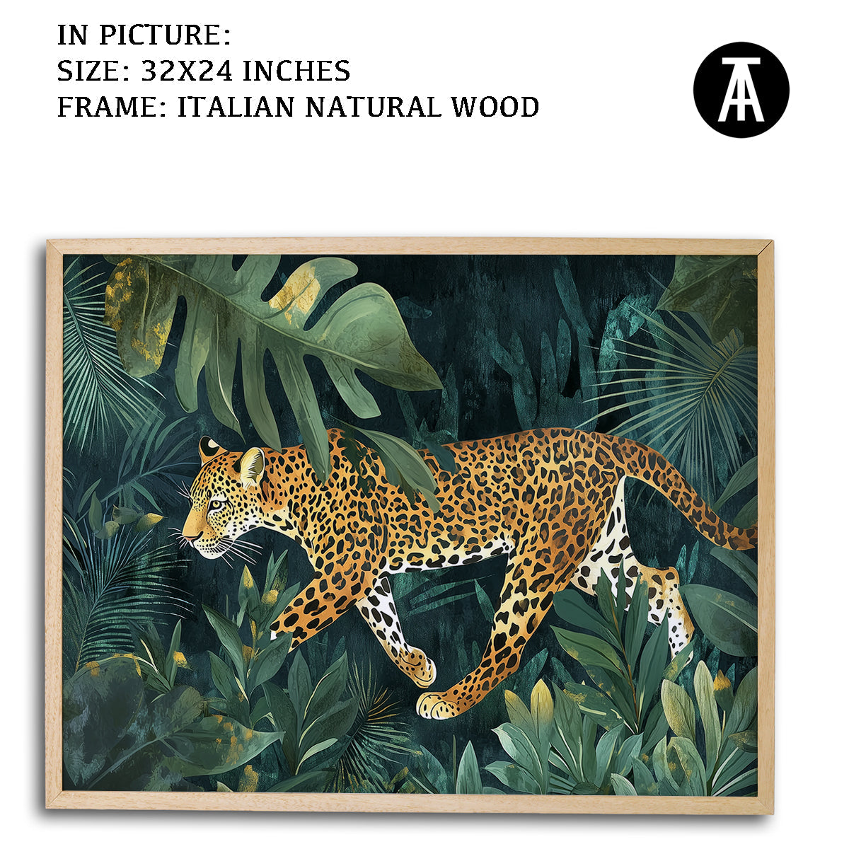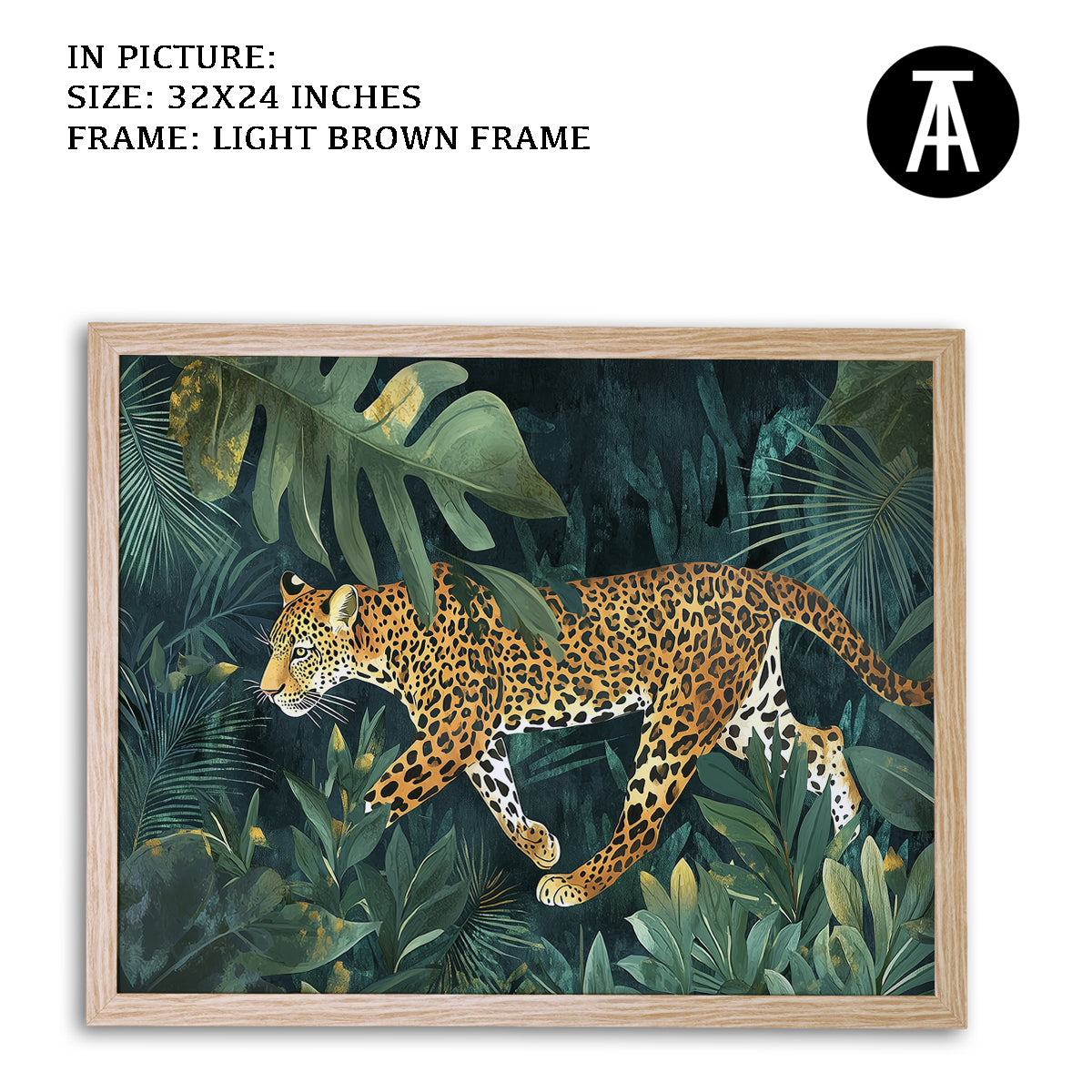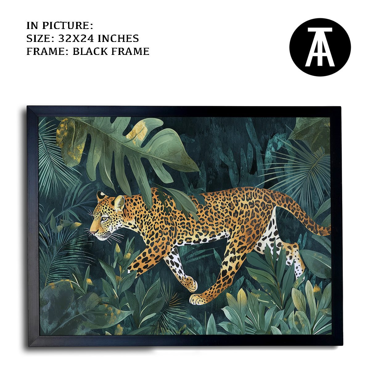 A majestic leopard prowls through the wild in this striking artwork. The detailed design and natural colors capture the beauty and strength of this wild cat. It’s perfect for adding a bold, adventurous vibe to your space. A great piece for animal lovers and nature enthusiasts.