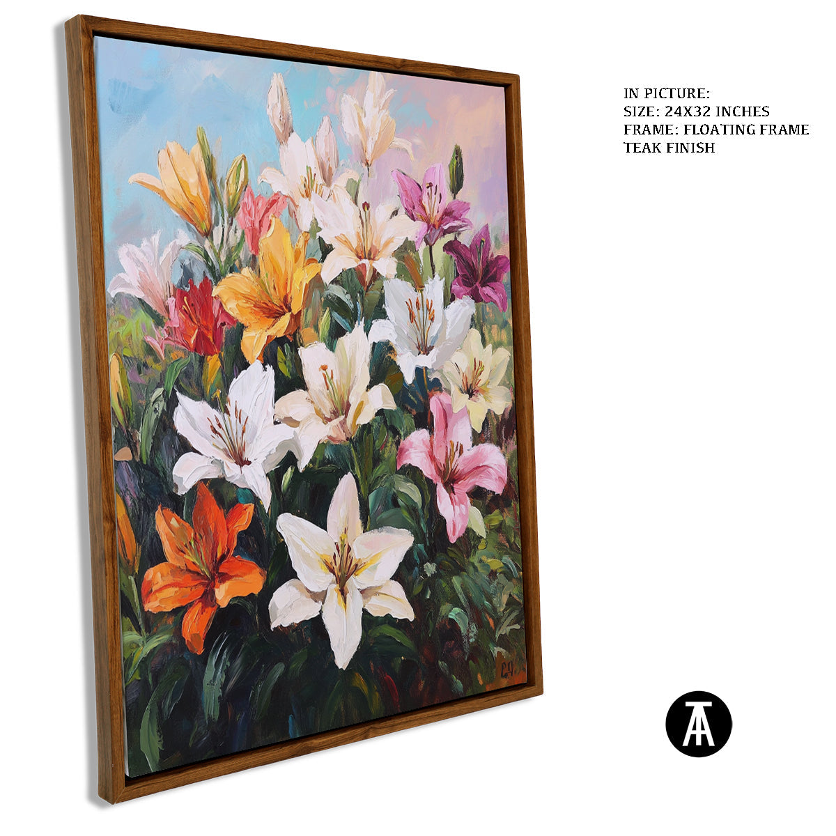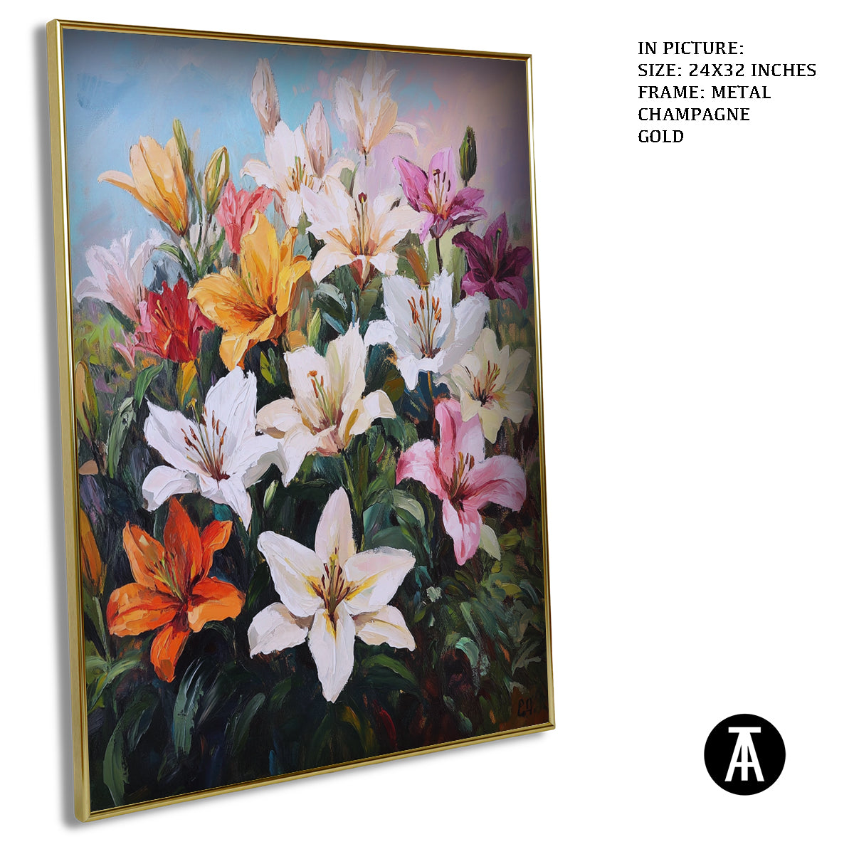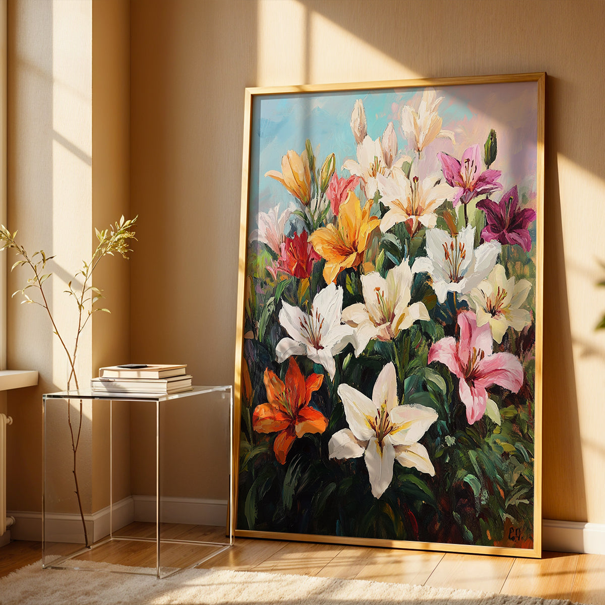 Elevate your space with our modern art masterpiece featuring vibrant lilies. This exquisite framed art piece brings the beauty of nature indoors, perfect for enhancing any living room or contemporary setting. Ideal as wall art or a stunning wall painting, it seamlessly blends into modern decor while adding a touch of elegance. Discover the allure of modern paintings with this captivating floral artwork.