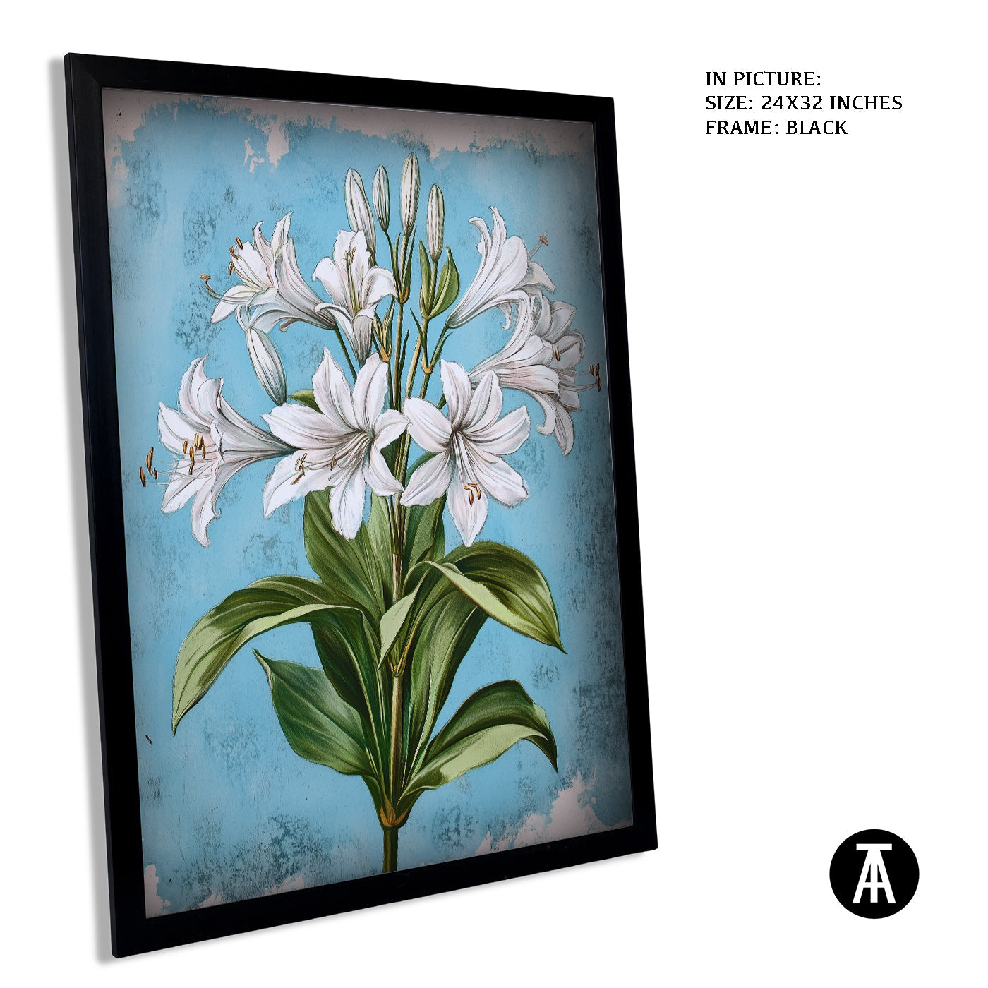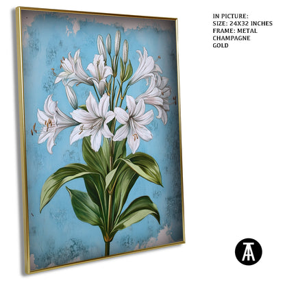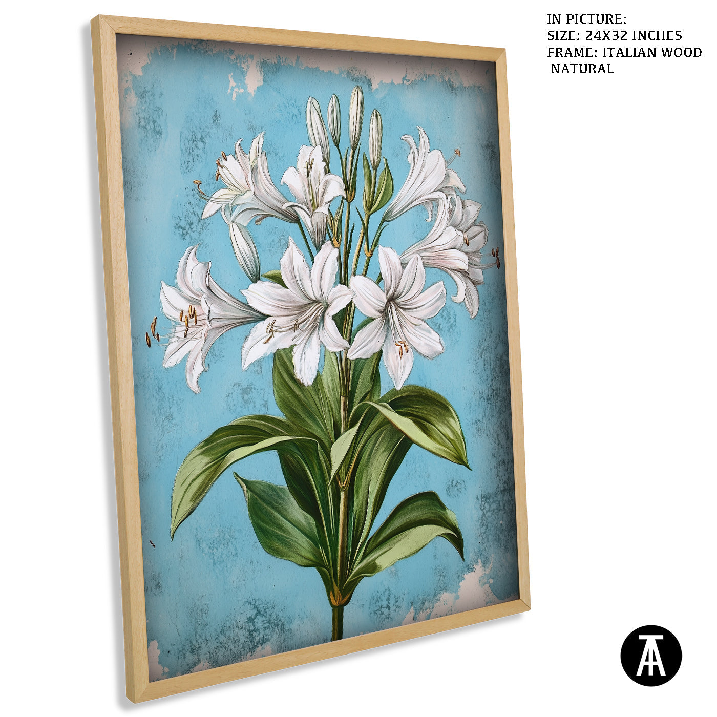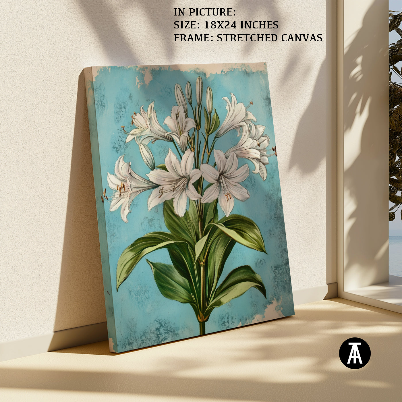 This artwork showcases the graceful beauty of the Lily of the Nile. The soft blue flowers and green leaves create a calm, peaceful scene. It’s perfect for adding a touch of elegance and nature to any room. Enjoy the simple beauty of this lovely flower with this beautiful piece.