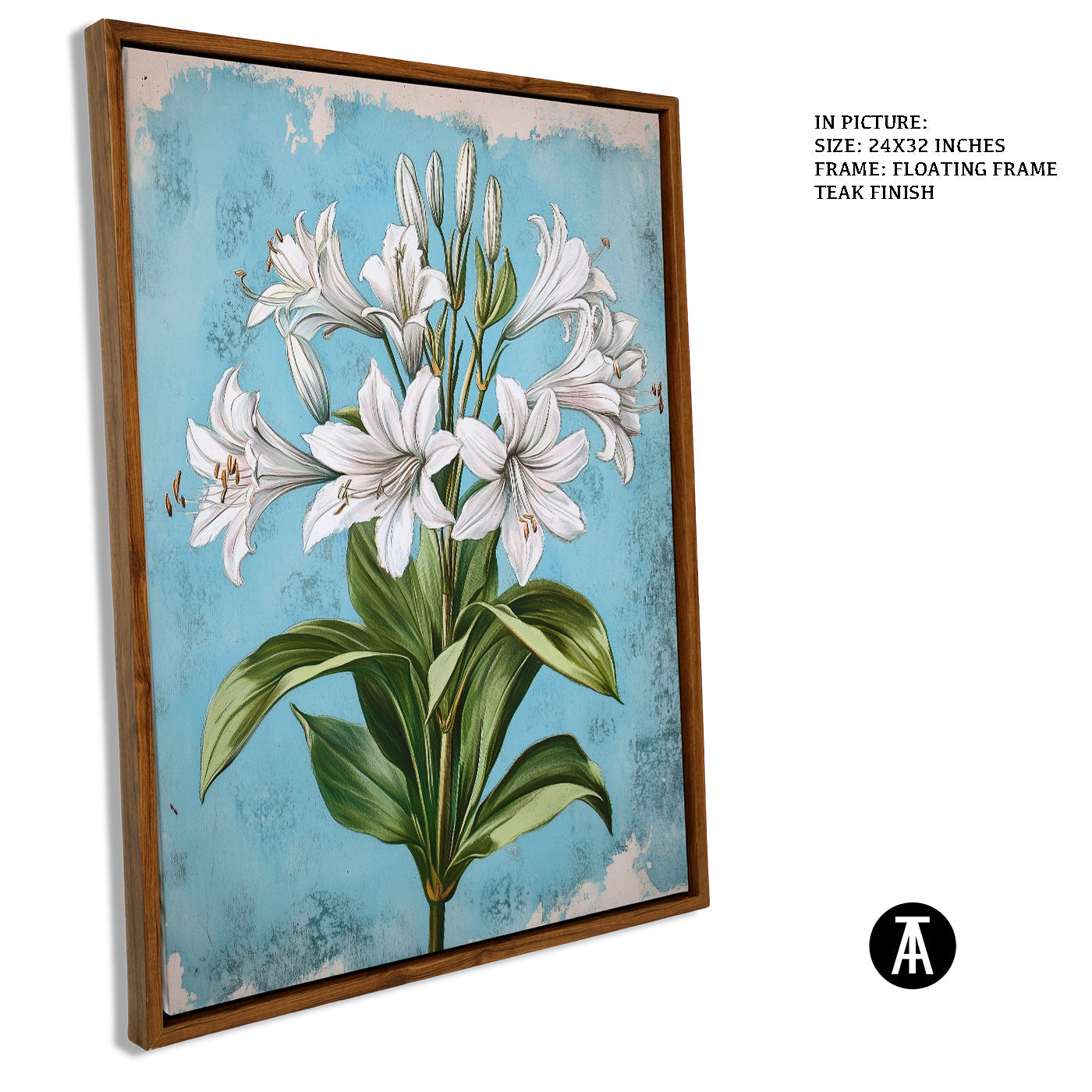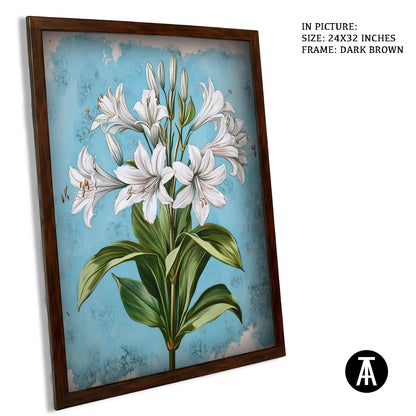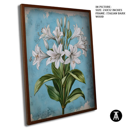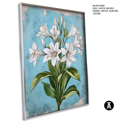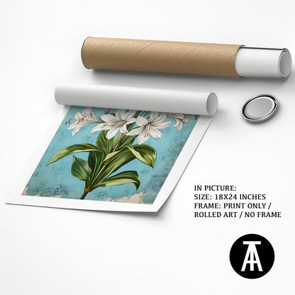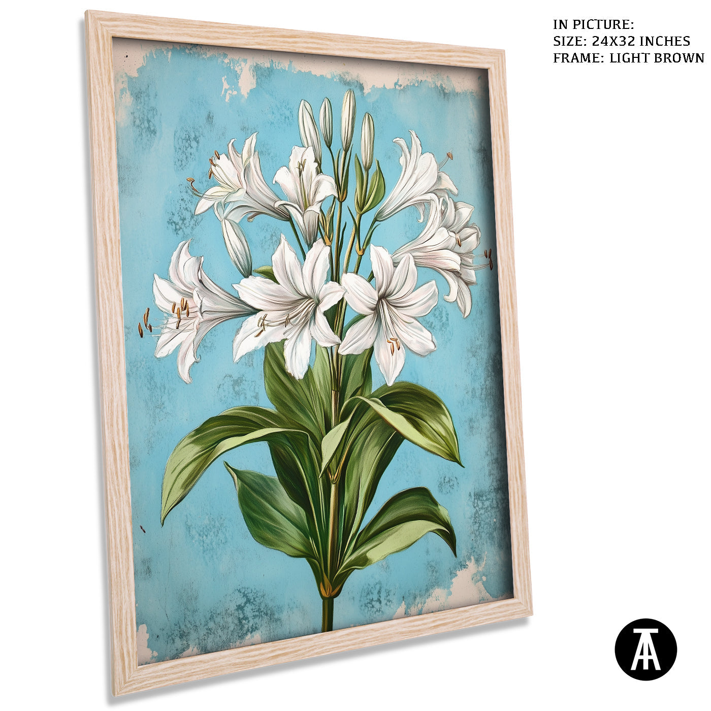 This artwork showcases the graceful beauty of the Lily of the Nile. The soft blue flowers and green leaves create a calm, peaceful scene. It’s perfect for adding a touch of elegance and nature to any room. Enjoy the simple beauty of this lovely flower with this beautiful piece.