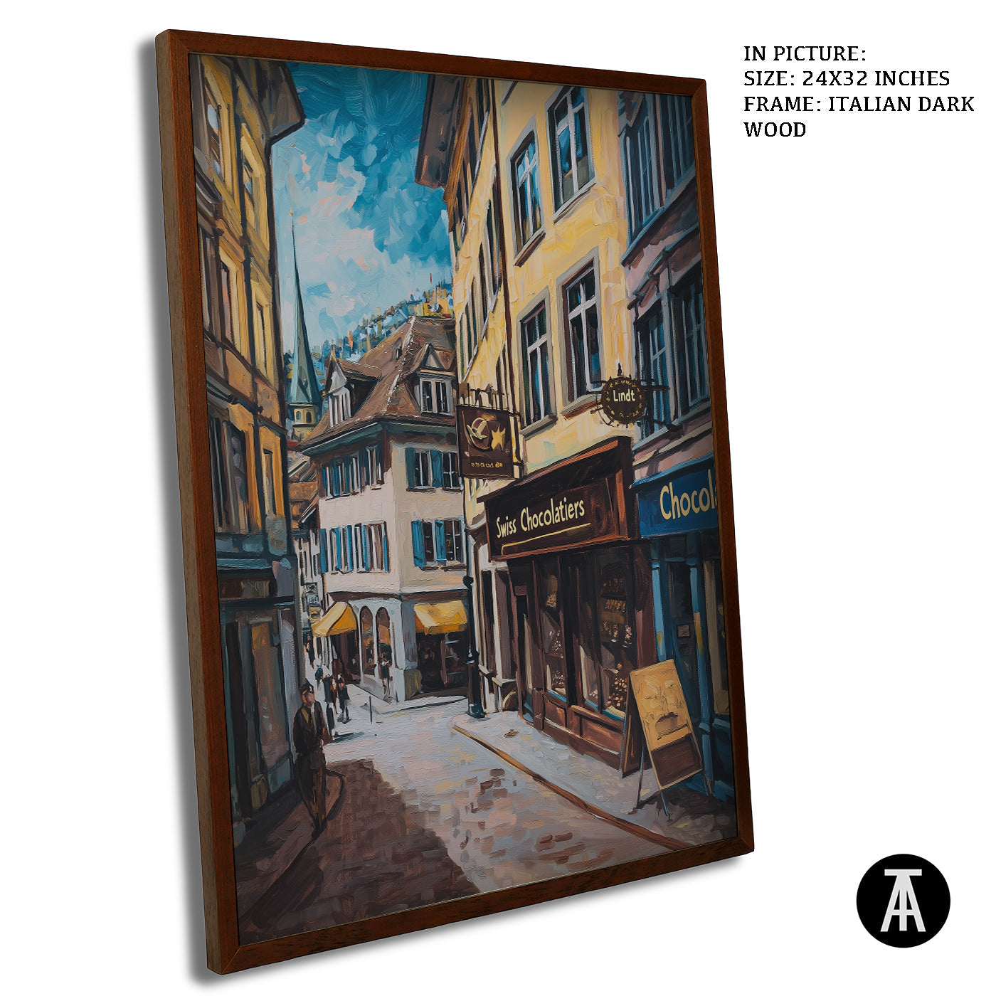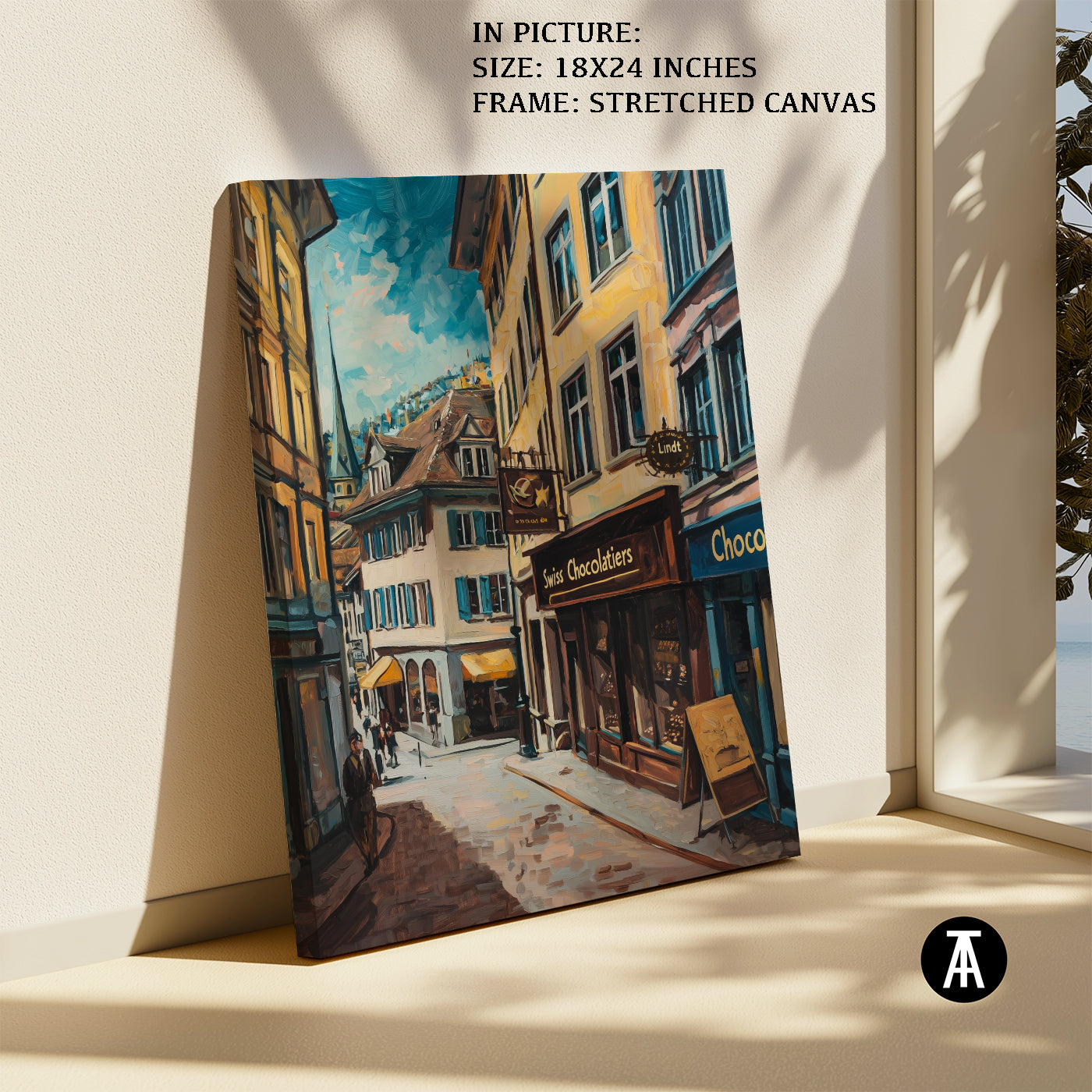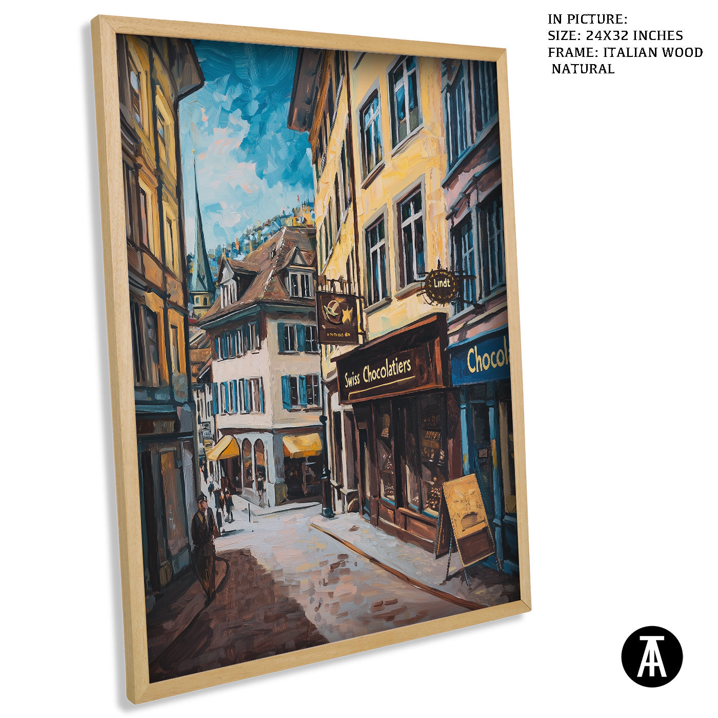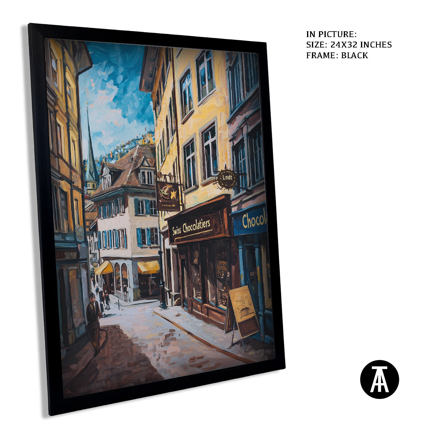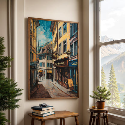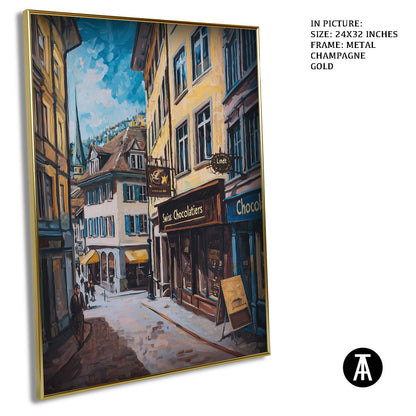 Step into a world of indulgence with this artwork of a Lindt chocolate shop. The painting beautifully portrays the warm, inviting atmosphere of this Swiss treasure, filled with the finest chocolates. Perfect as framed art for your dining room, kitchen, or living room, it adds a touch of sweetness and charm to your decor. With its rich details and vibrant colors, this wall painting is a treat for the eyes and soul. Ideal for modern art enthusiasts and chocolate lovers, this piece captures the spirit of Swiss excellence.
