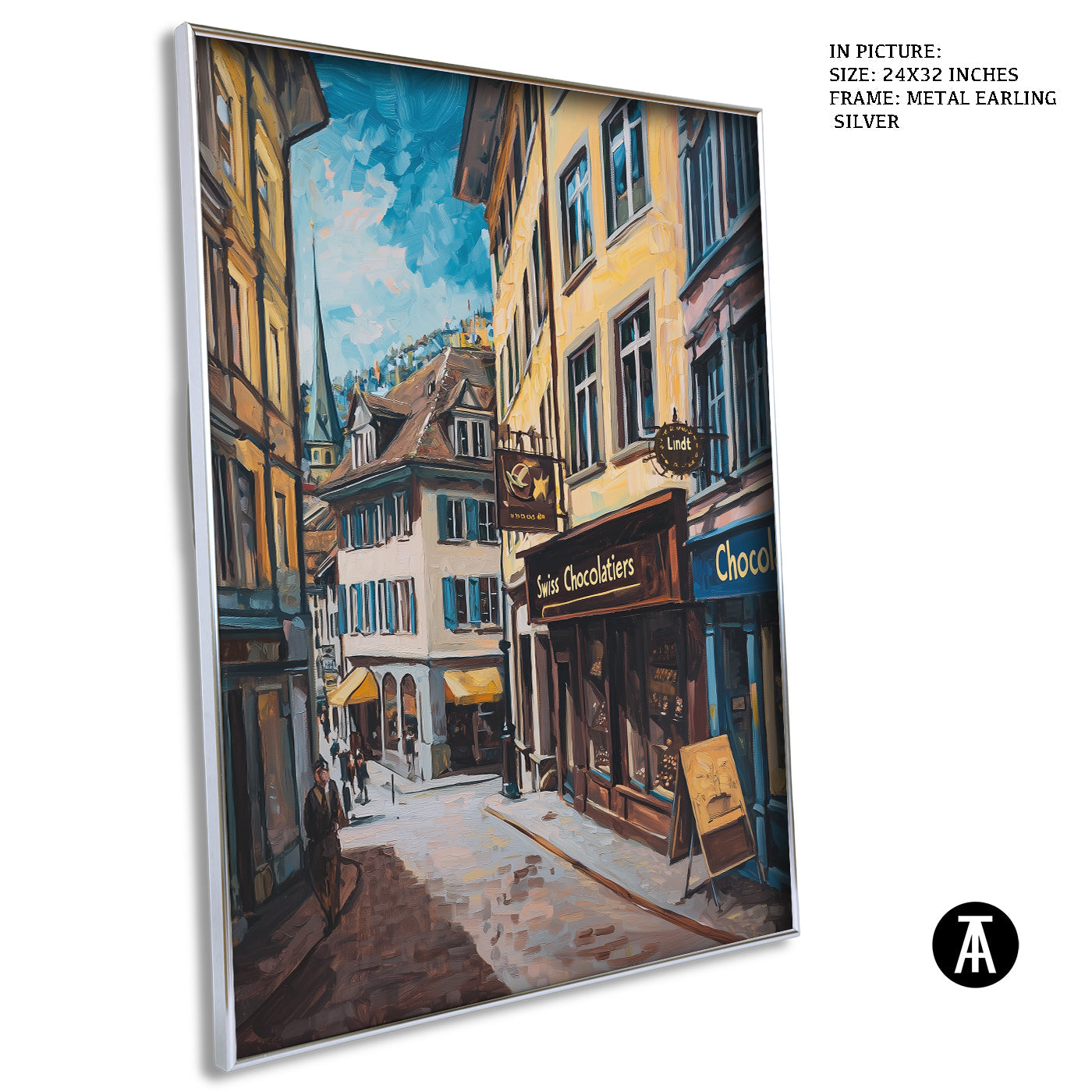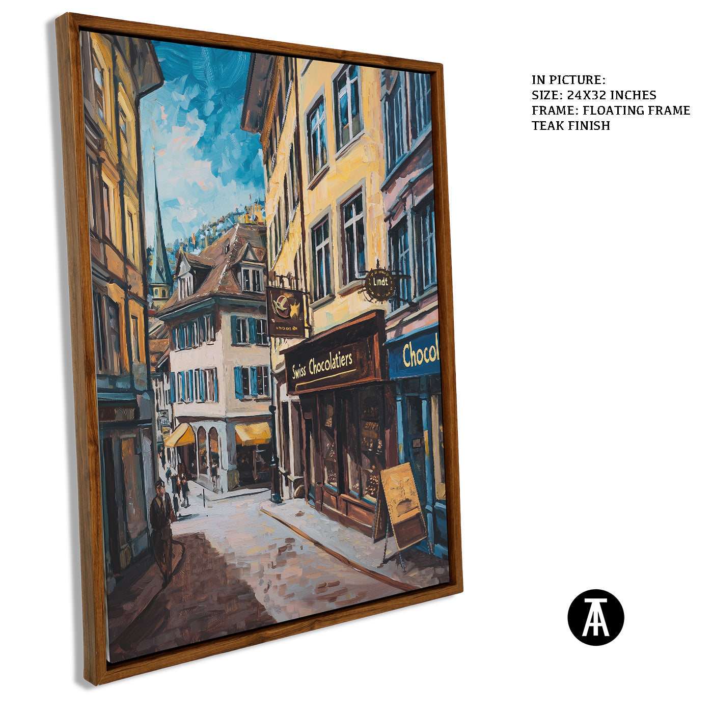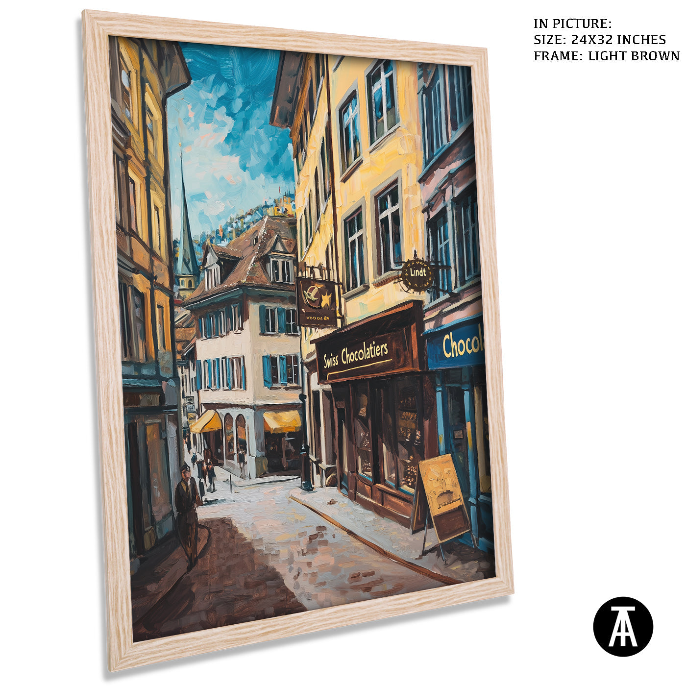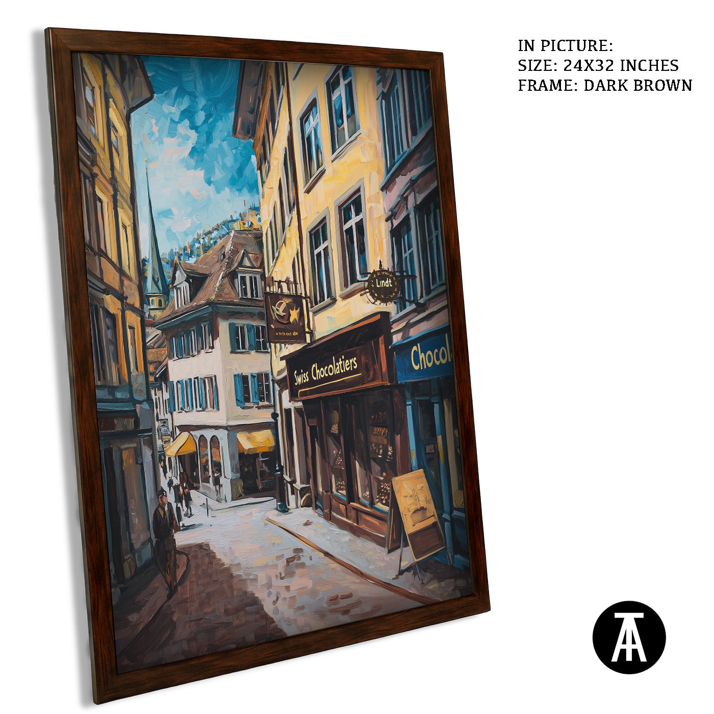 Step into a world of indulgence with this artwork of a Lindt chocolate shop. The painting beautifully portrays the warm, inviting atmosphere of this Swiss treasure, filled with the finest chocolates. Perfect as framed art for your dining room, kitchen, or living room, it adds a touch of sweetness and charm to your decor. With its rich details and vibrant colors, this wall painting is a treat for the eyes and soul. Ideal for modern art enthusiasts and chocolate lovers, this piece captures the spirit of Swiss excellence.