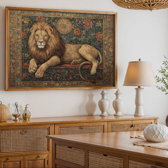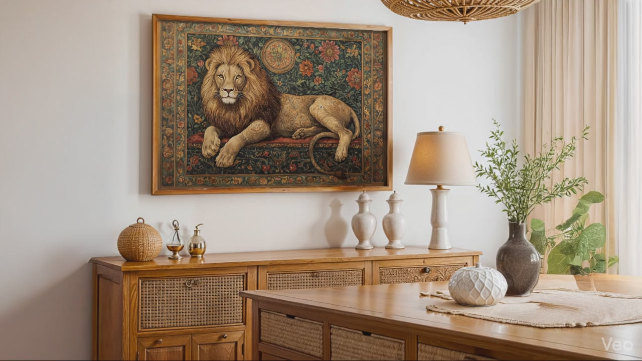 Lion - Pichwai Art offers the ornate detail of Pichwai painting, bringing Rajasthani heritage luxury and intricate art to your curated wall collection.