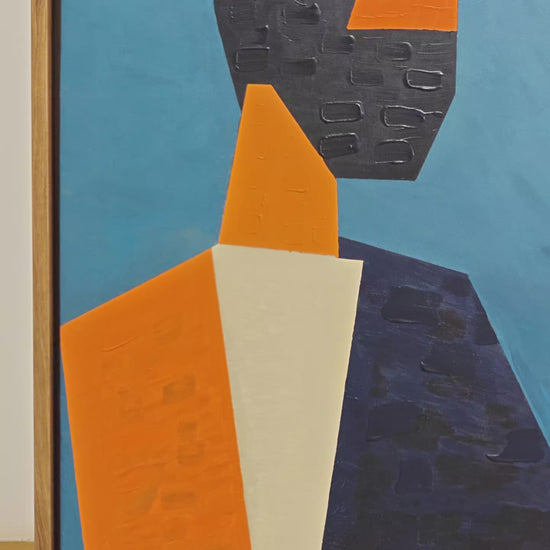 “Fragmented Self” is a striking abstract portrait that explores identity, emotional duality, and the parts of ourselves we struggle to reconcile. Bold geometric shapes in deep blue, black, and vibrant orange create a powerful visual tension, reflecting the internal chaos that shapes the modern human experience. This expressive acrylic artwork captures the feeling of being pulled in different directions while still holding on to a sense of self. Perfect for contemporary interiors, collectors of thought-provoking modern art, and those seeking unique abstract wall decor. This original handmade painting adds depth, character, and psychological richness to any space.