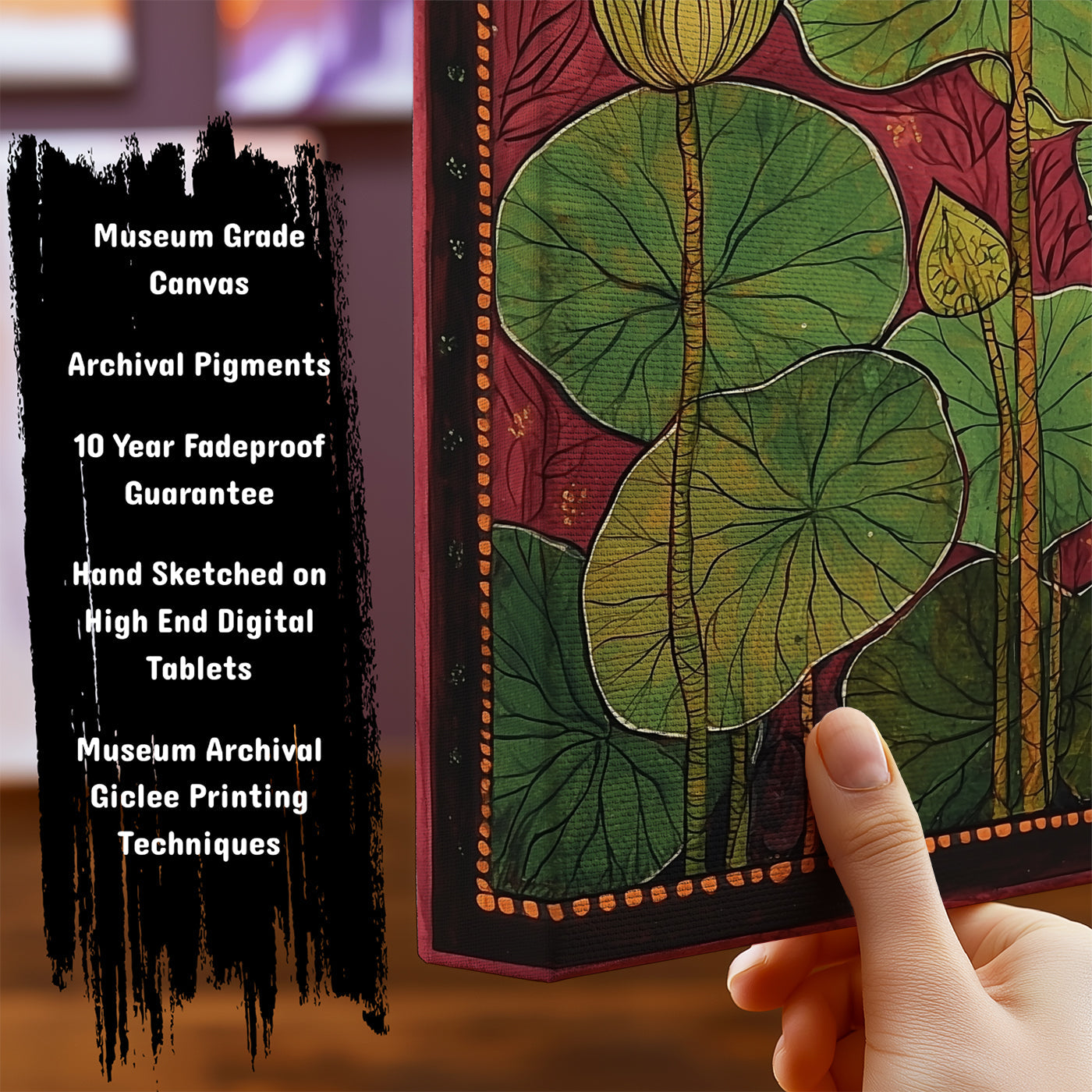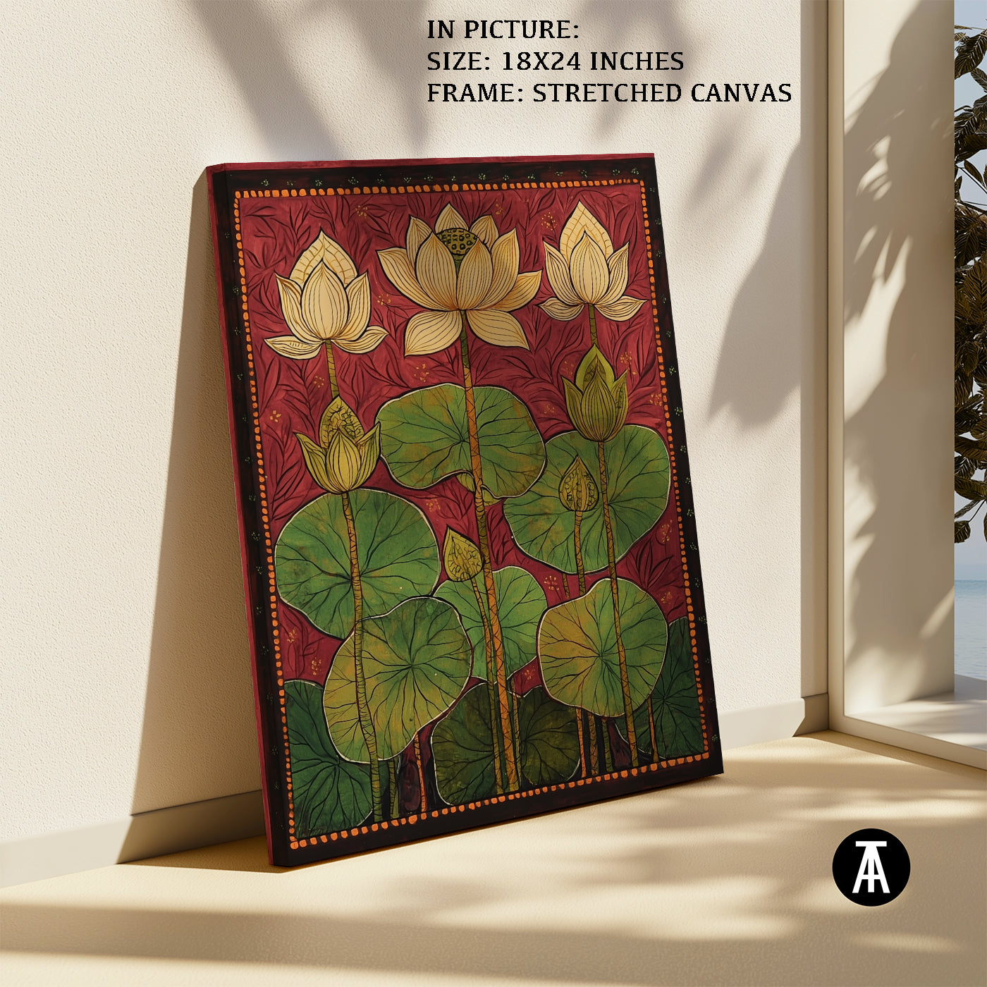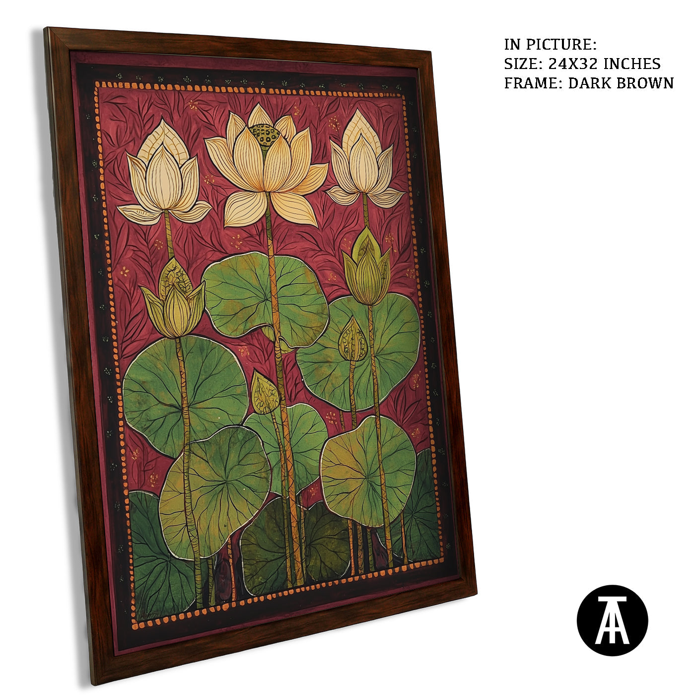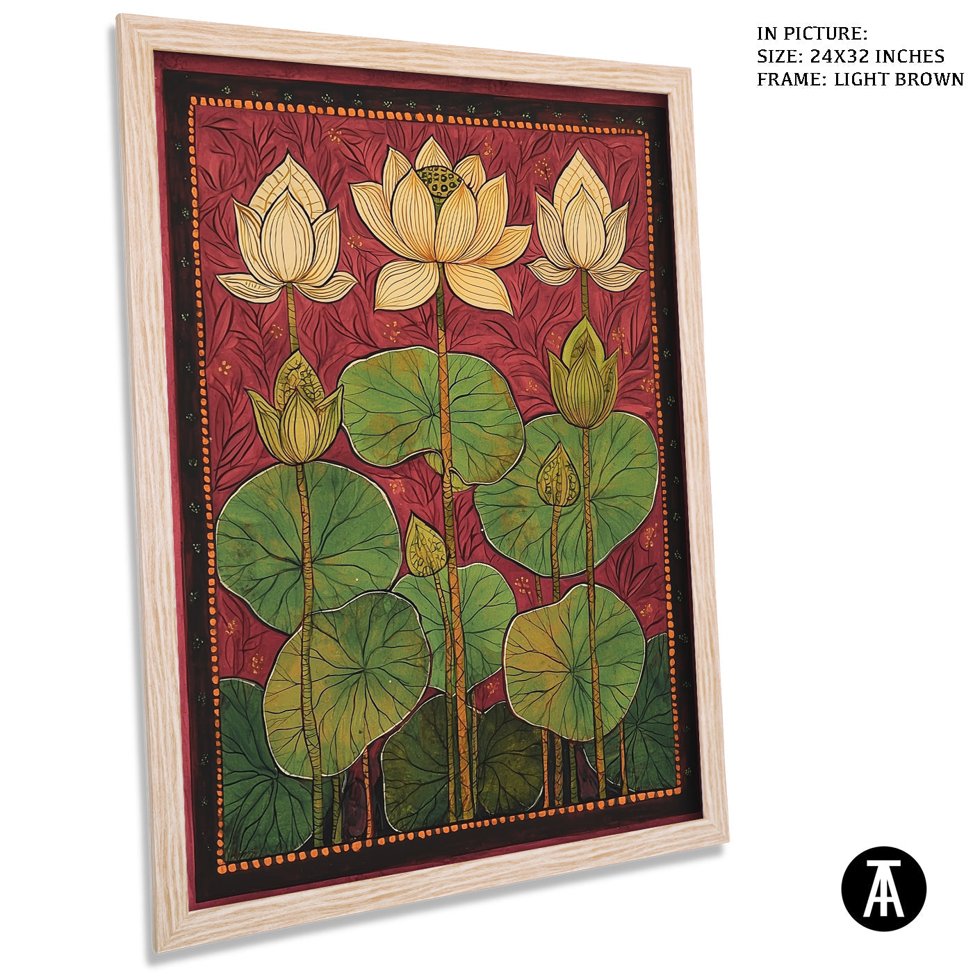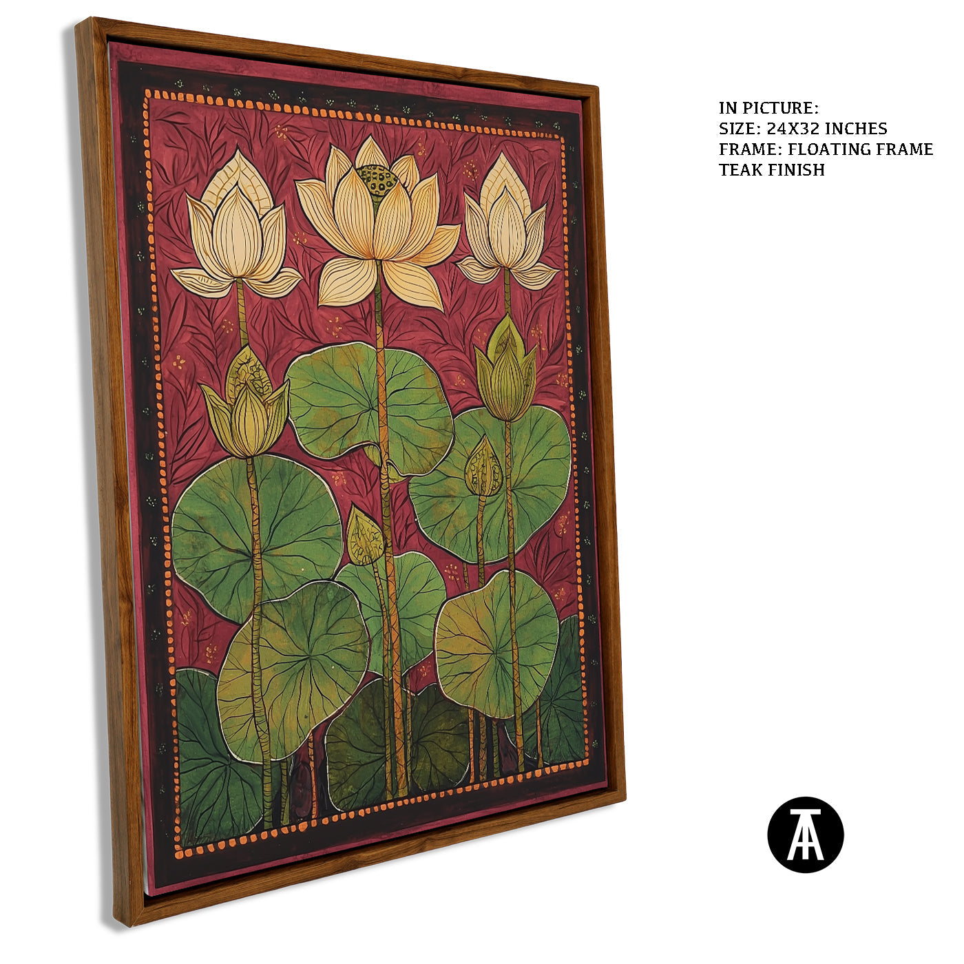 This artwork beautifully showcases the lotus flower in the traditional Madhubani style. The intricate patterns and vibrant colors bring a rich cultural feel to your space. It’s perfect for anyone who appreciates traditional Indian art. A great way to add a touch of elegance and heritage to your home.
