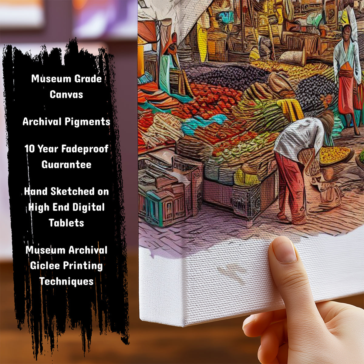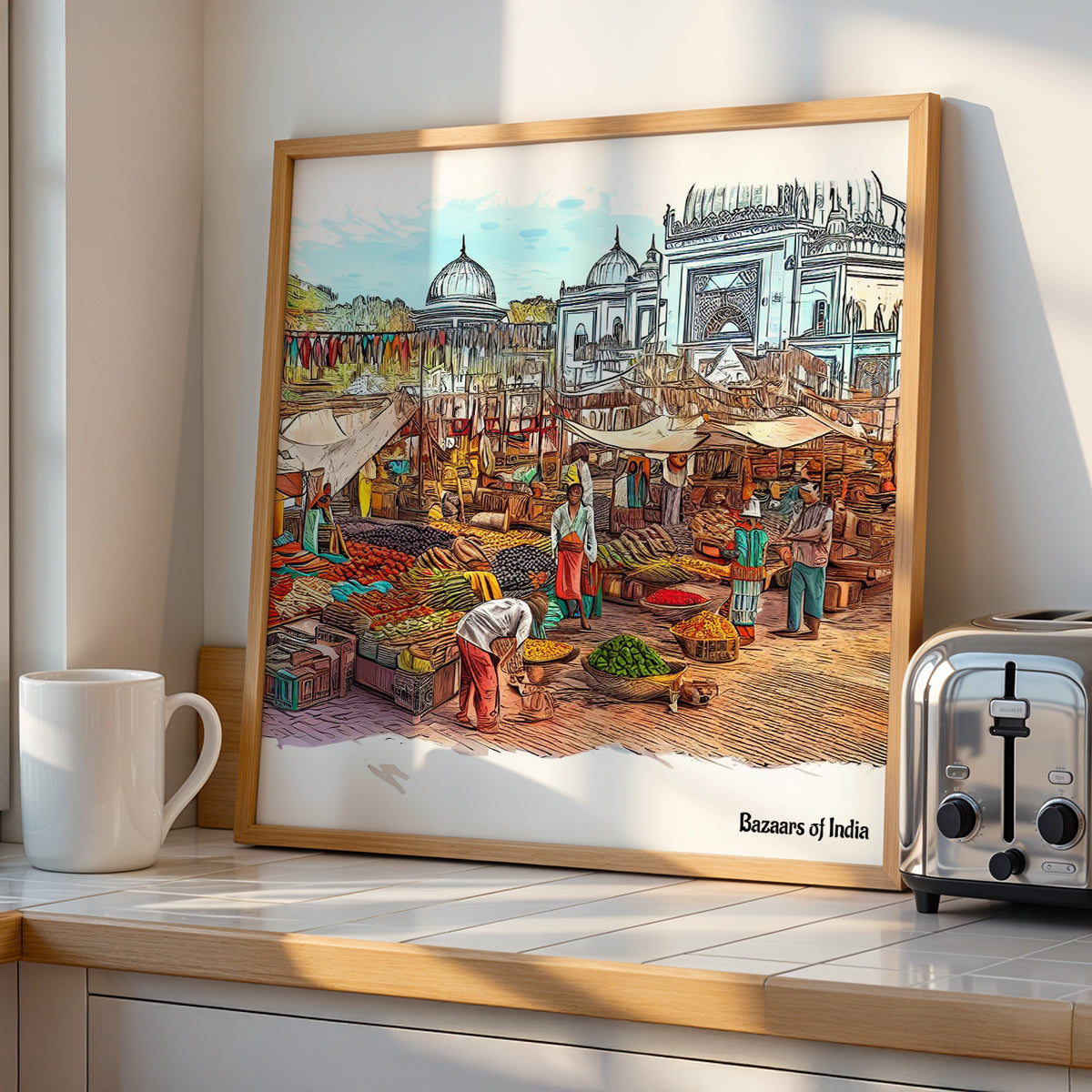 Step into the bustling bazaars of India with our captivating artwork titled 'Mandi.' This piece transports you to a vibrant morning market, filled with an array of colors, aromas, and the hustle and bustle of local life. The intricate details and vibrant palette beautifully capture the essence of this cultural spectacle, evoking a sense of wanderlust and immersing you in the heart of India. Bring the energy and charm of the Indian bazaars into your space with this mesmerizing artwork.