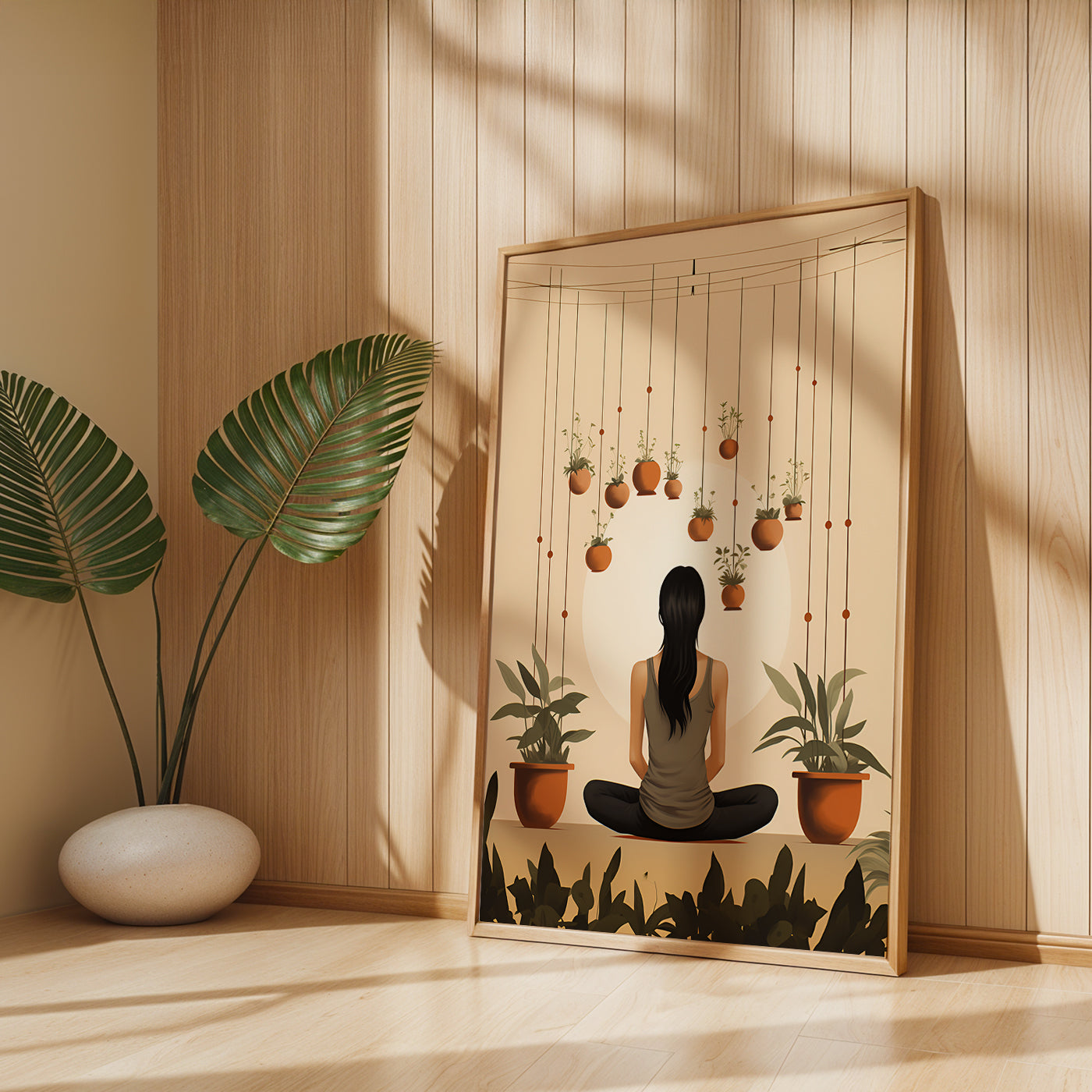 Discover inner peace with 'Bali Boho's Meditative Serenity.' This exquisite artwork mirrors the profound calm of a lady deep in meditation. Part of our Bali Boho collection, it seamlessly blends Bali's bohemian spirit with the art of introspection. Meticulously crafted with high-definition printing on fine art paper, this piece invites you to embrace tranquility. The durable framing not only safeguards the artwork but also adds a touch of timeless elegance to your space.