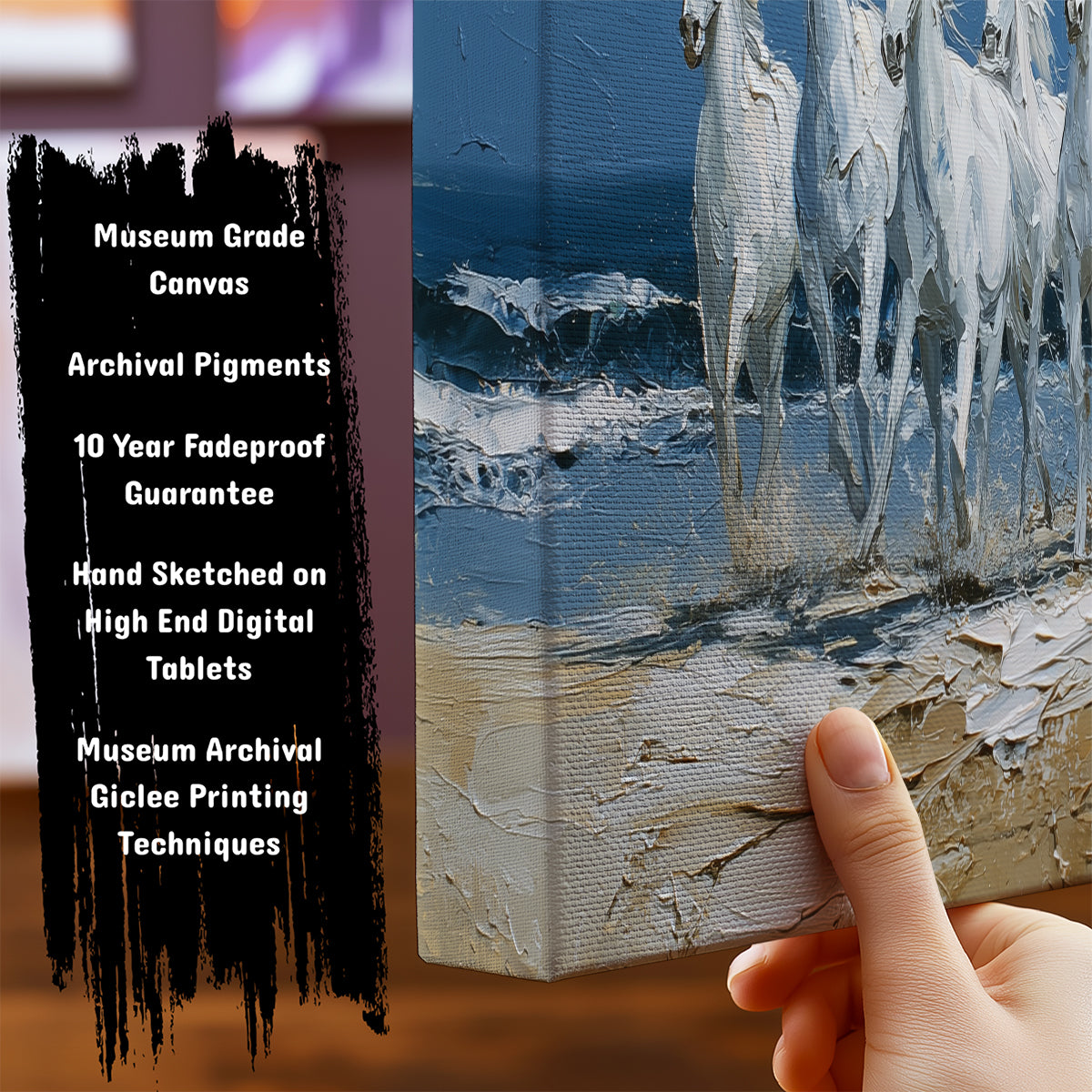 Set the tone with Moonlit Beach with Seven Horses—a statement wall art for modern homes.