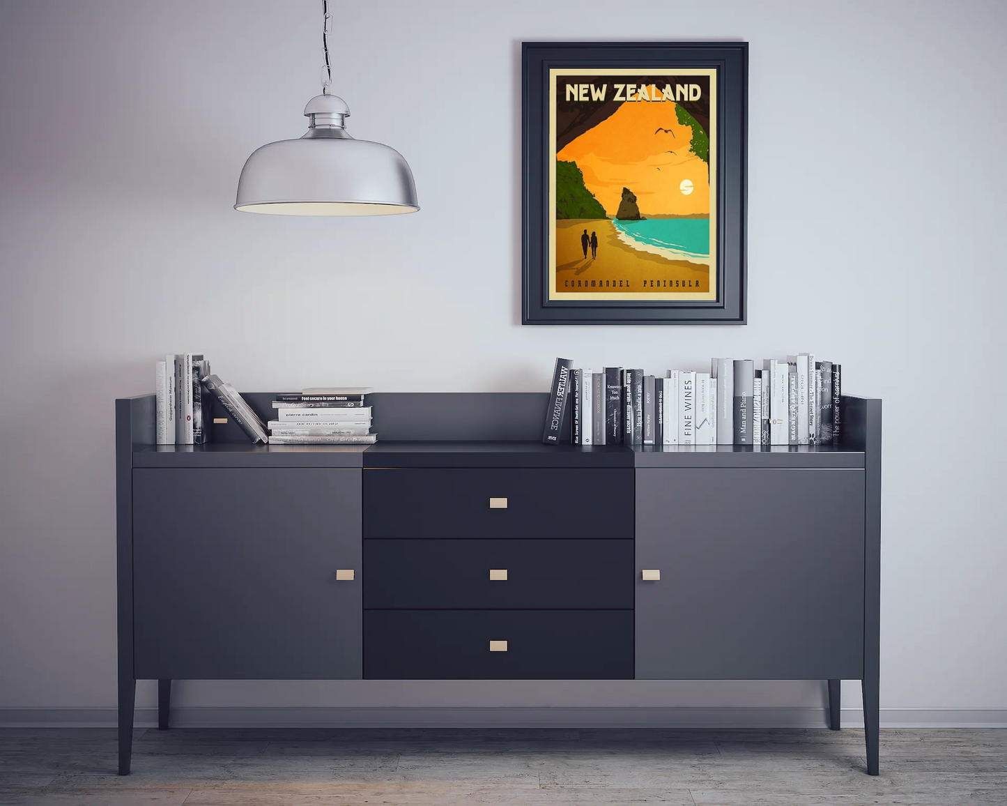 Vintage New Zealand Beach Poster (Framed Art Print)