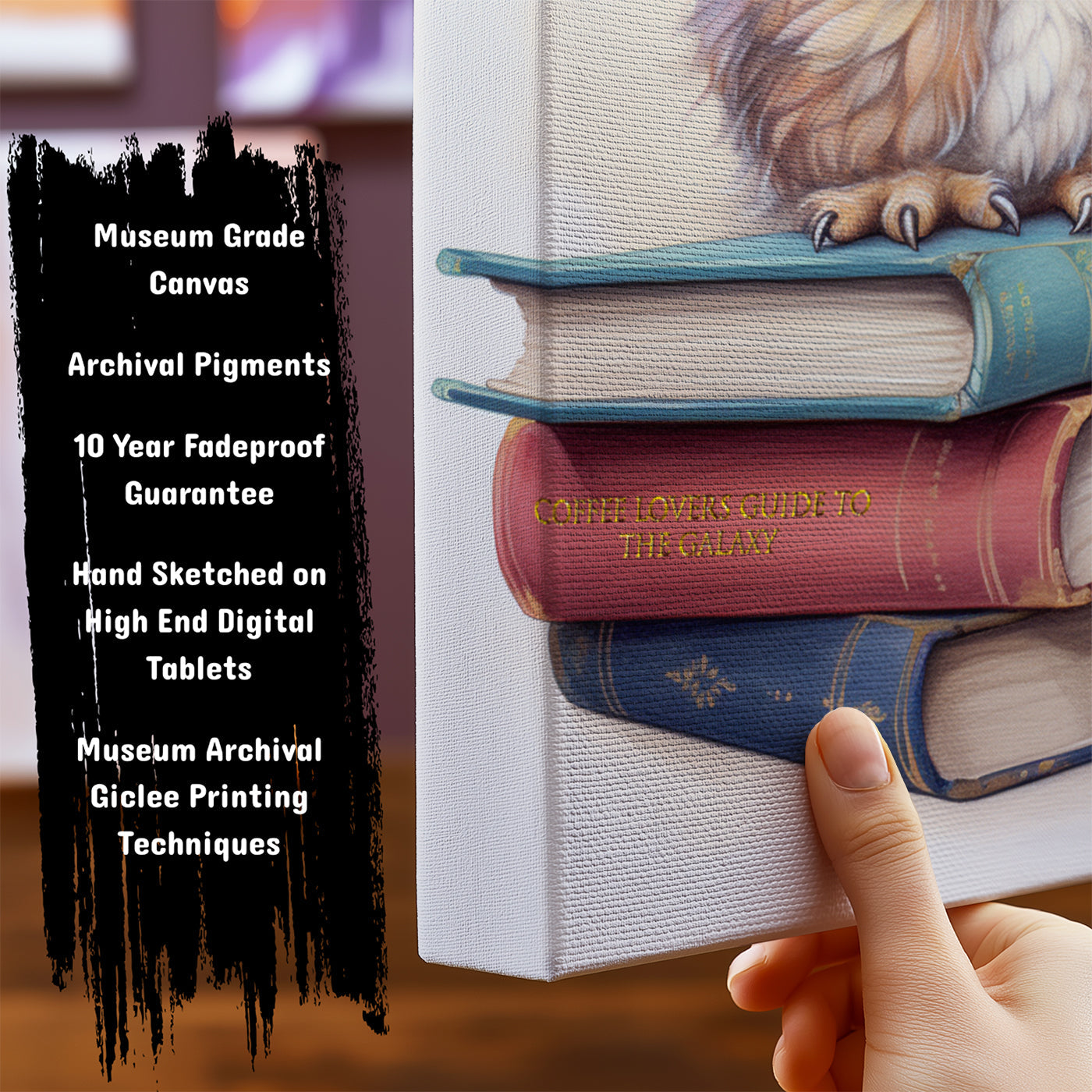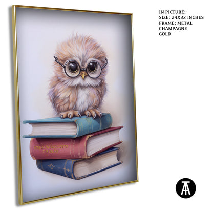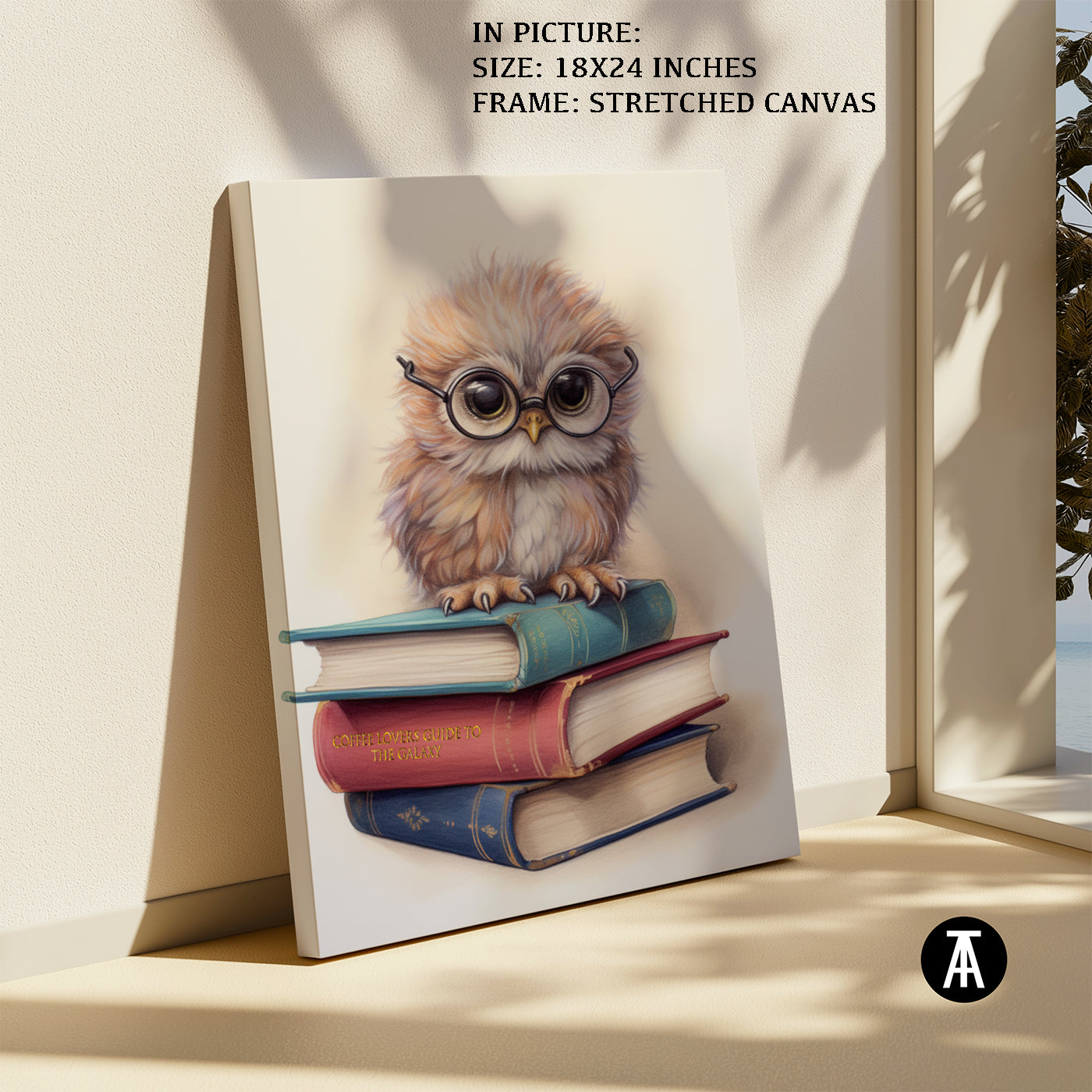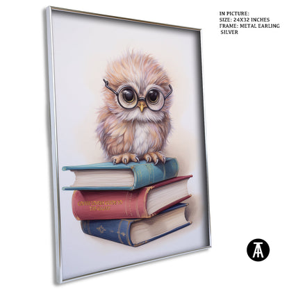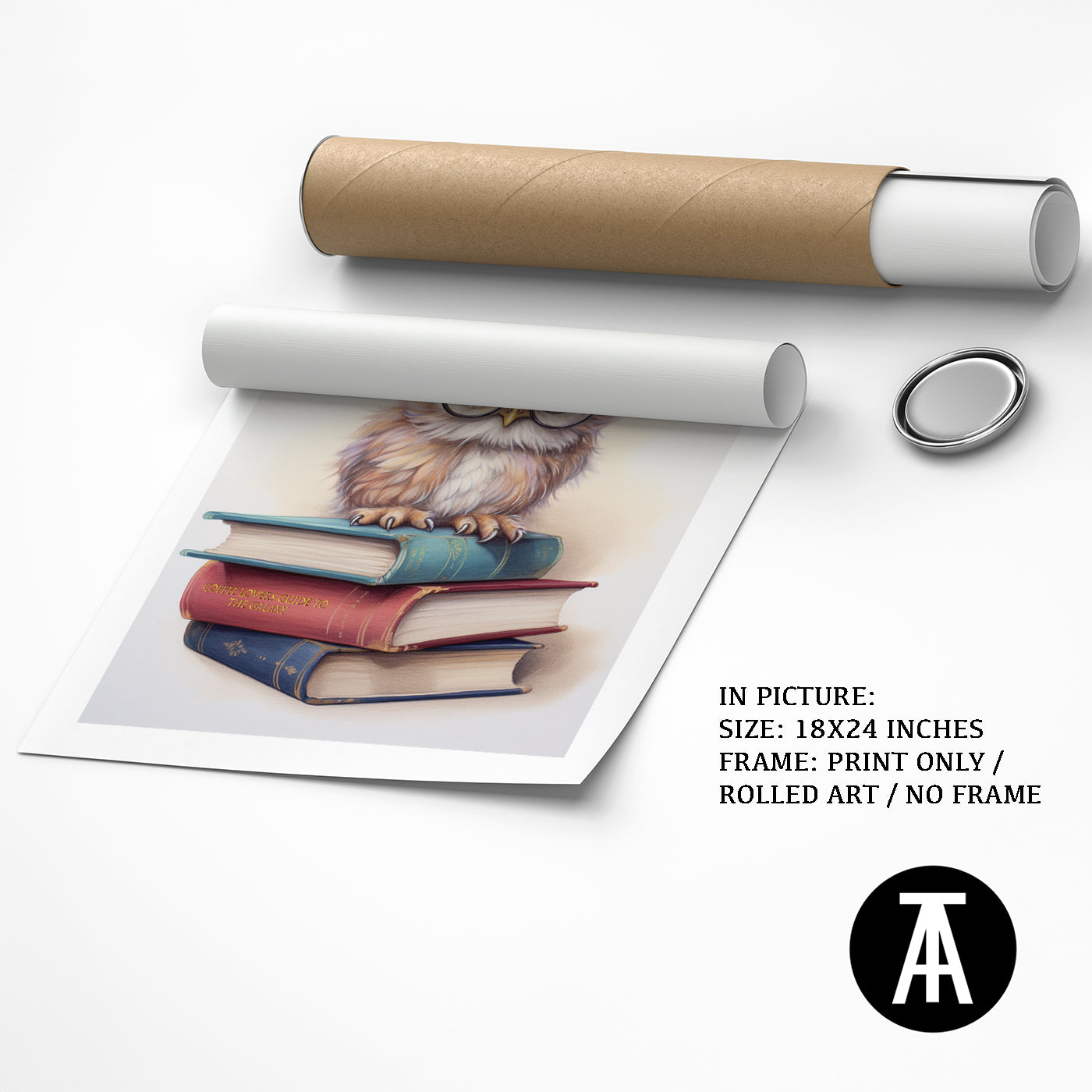 A wise choice! This whimsical artwork depicts an owl enjoying a cup of coffee in its library, creating a cozy and intellectual atmosphere for your cafe. A perfect conversation starter for bookworms and coffee lovers.