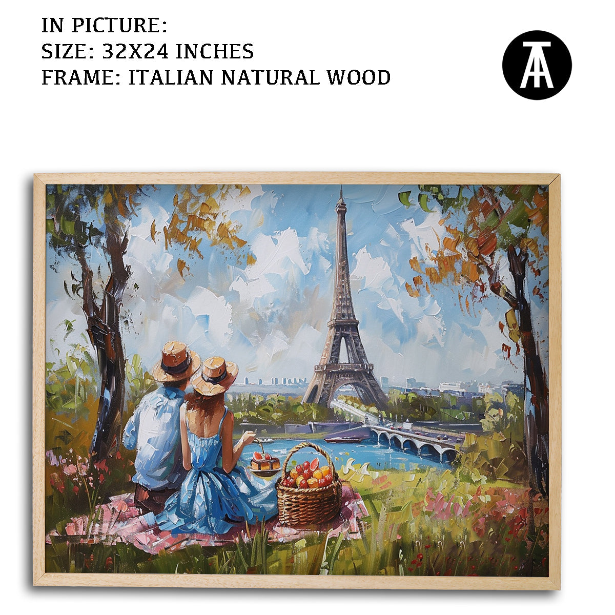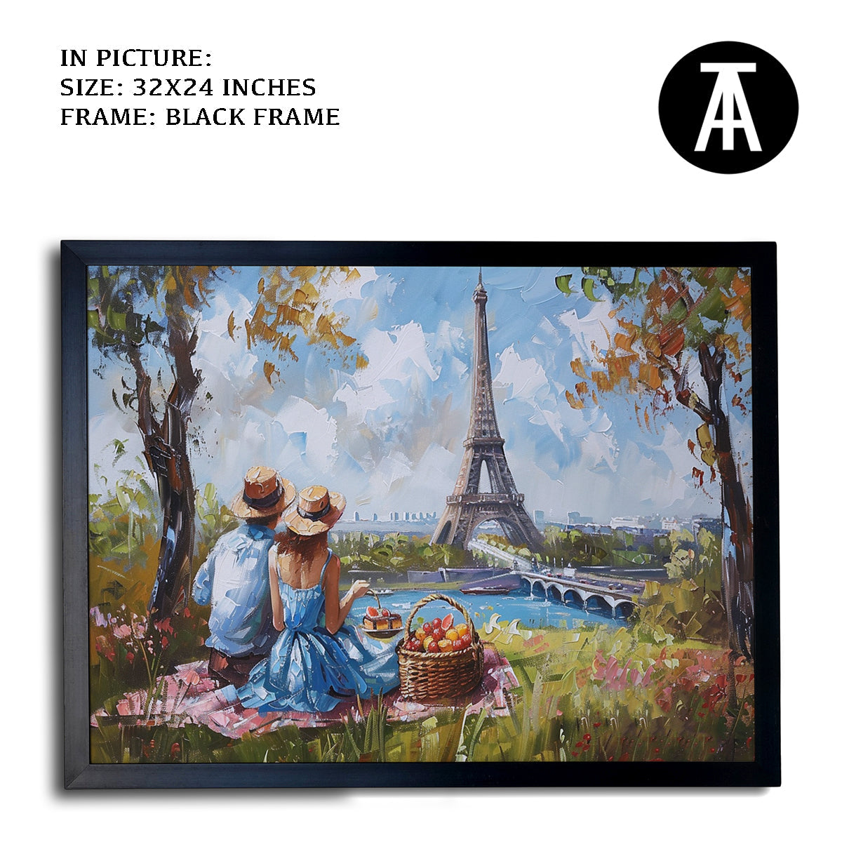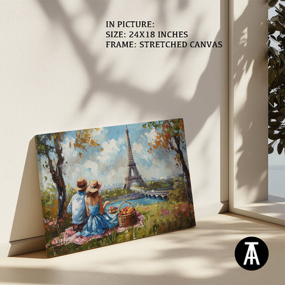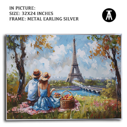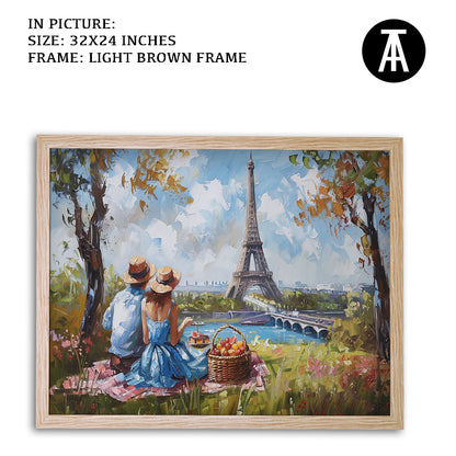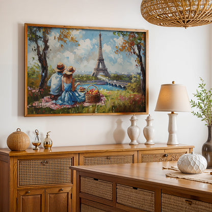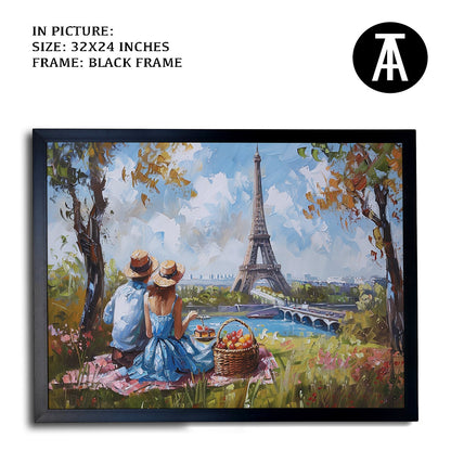 Elevate your living space with this stunning framed art depicting a vibrant picnic scene beneath the iconic Eiffel Tower. This modern masterpiece, rendered in vivid hues, is a perfect blend of contemporary style and classic Parisian charm. Hang this captivating wall painting to infuse your home with a touch of sophistication and global allure.