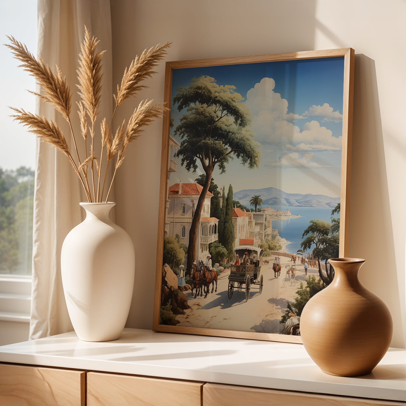 Transform your living space with a captivating framed artwork showcasing the beauty of a Princes Island in Istanbul. This luxurious piece adds a touch of sophistication to your home decor, capturing the serene atmosphere and scenic landscapes of these iconic islands. Ideal for those seeking a unique and cultural addition to their wall art collection.