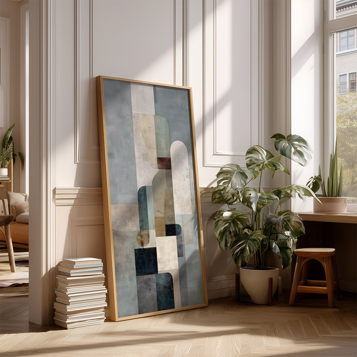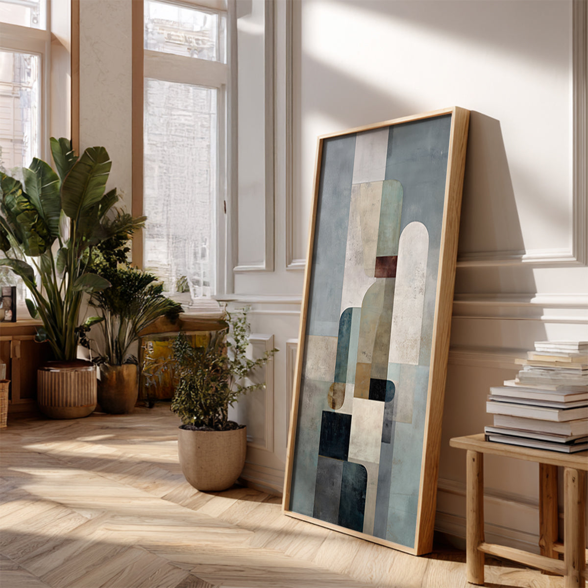 A modern abstract artwork suggesting subtle upward movement. Enhances verticality while maintaining calm interiors. Suitable for minimalist and modern spaces.