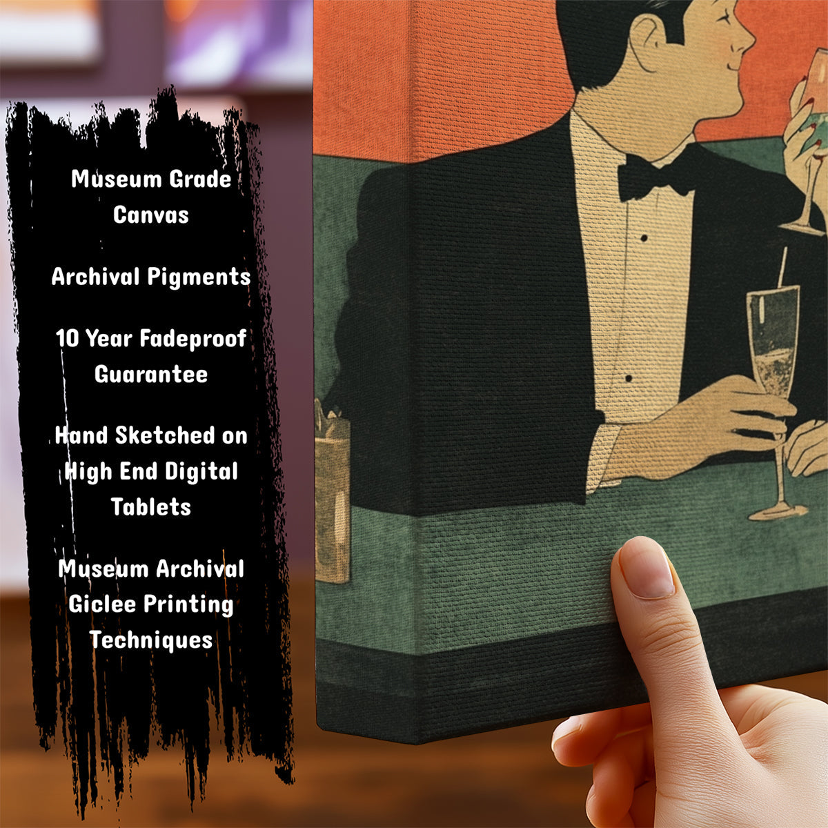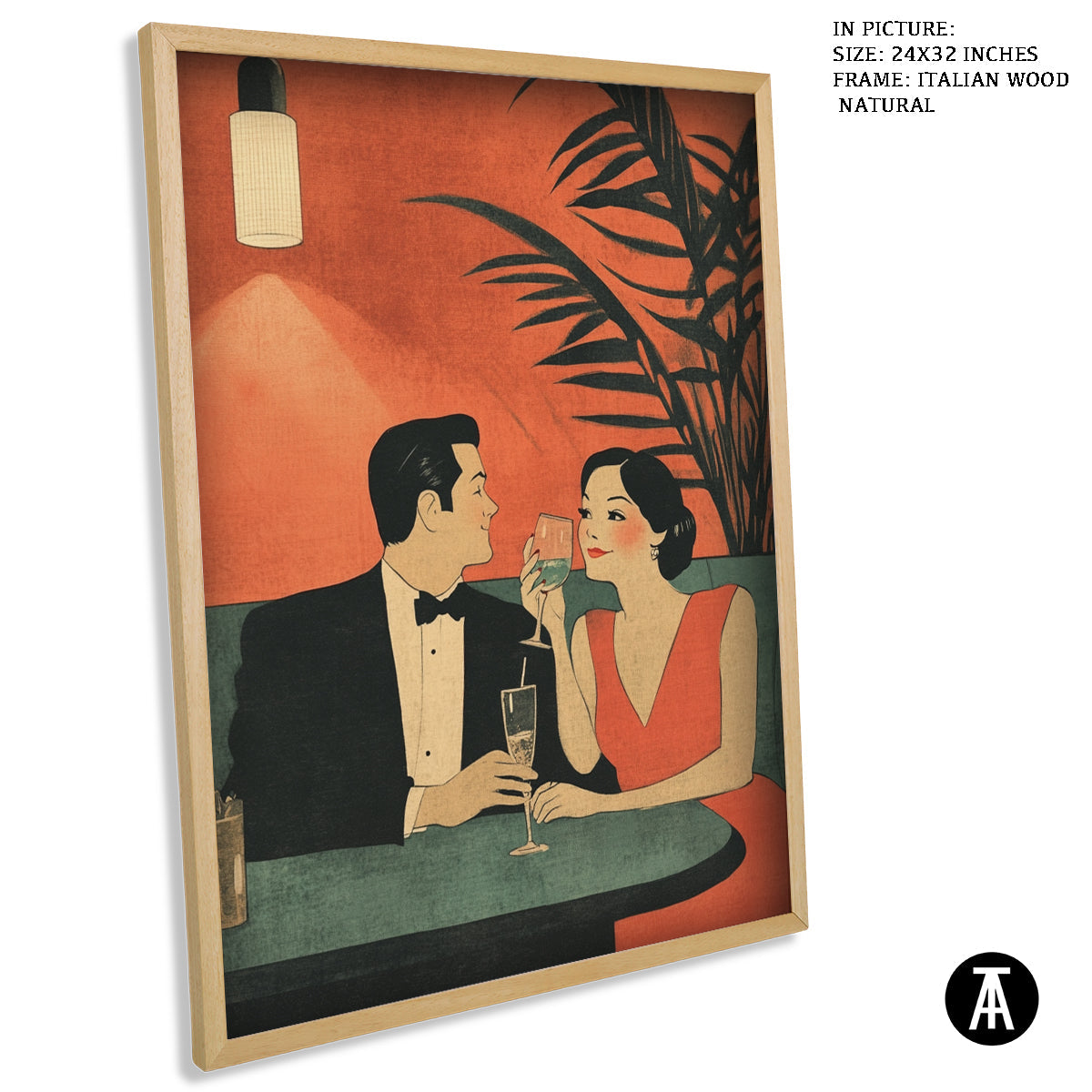 Elevate your living space with this stunning framed art depicting a vibrant retro bar scene. This captivating piece, a perfect blend of modern art and vintage charm, adds a touch of nostalgia and sophistication to your walls. Hang this eye-catching wall painting in your living room to spark conversations and create a unique ambiance.