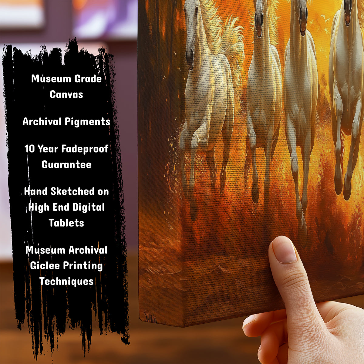 Uplift blank walls with Seven Horses at Sunrise designed for contemporary spaces.