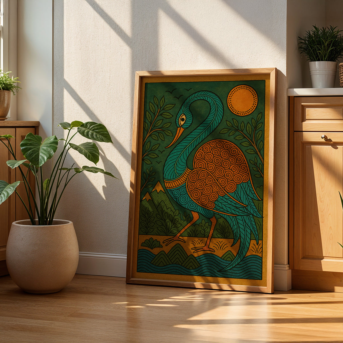 Swan - Madhubani Art celebrates the vibrant patterns of Madhubani heritage art, perfect as a colorful wall accent and folk-inspired decor piece.