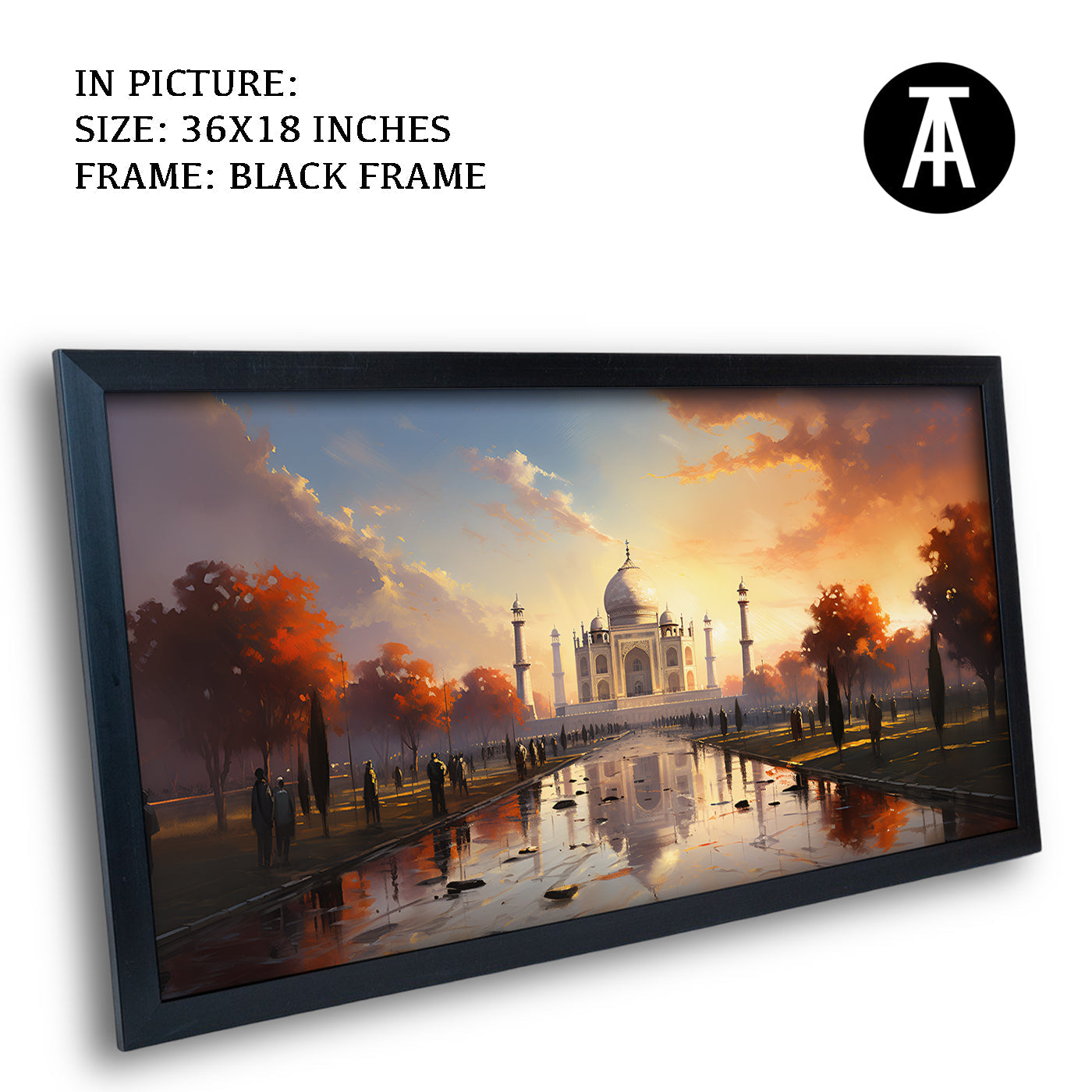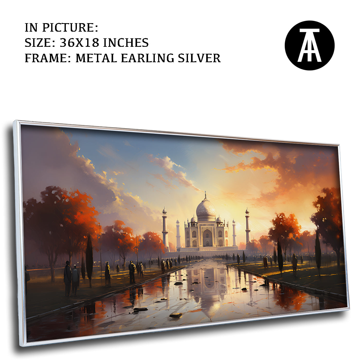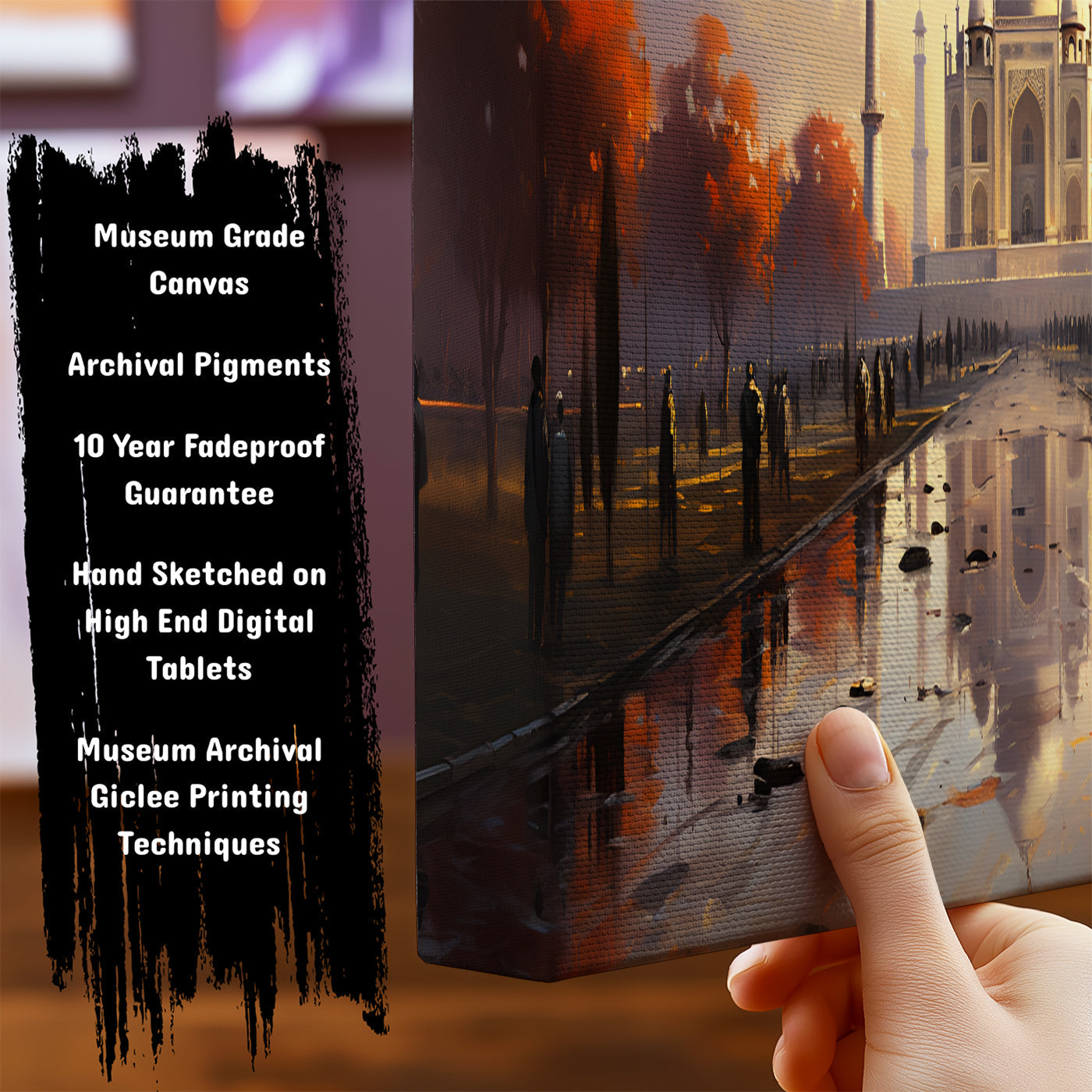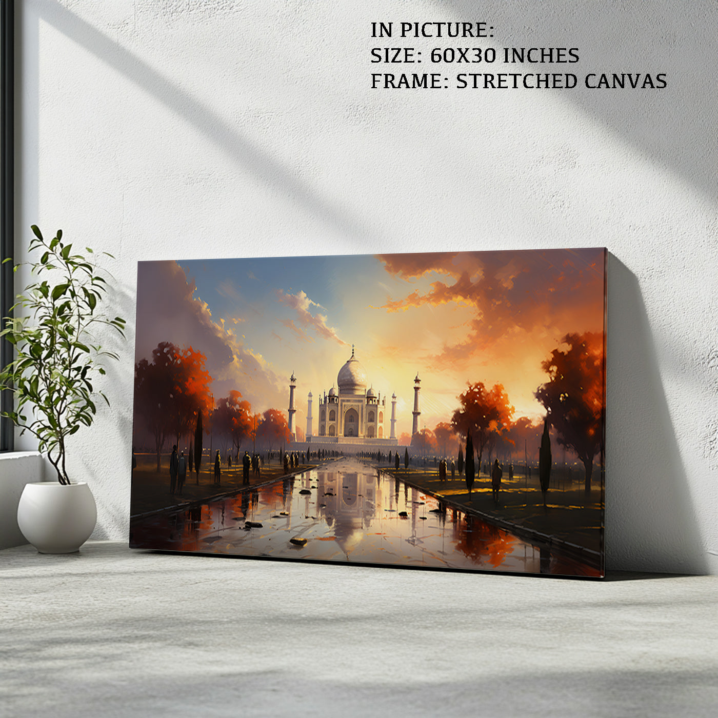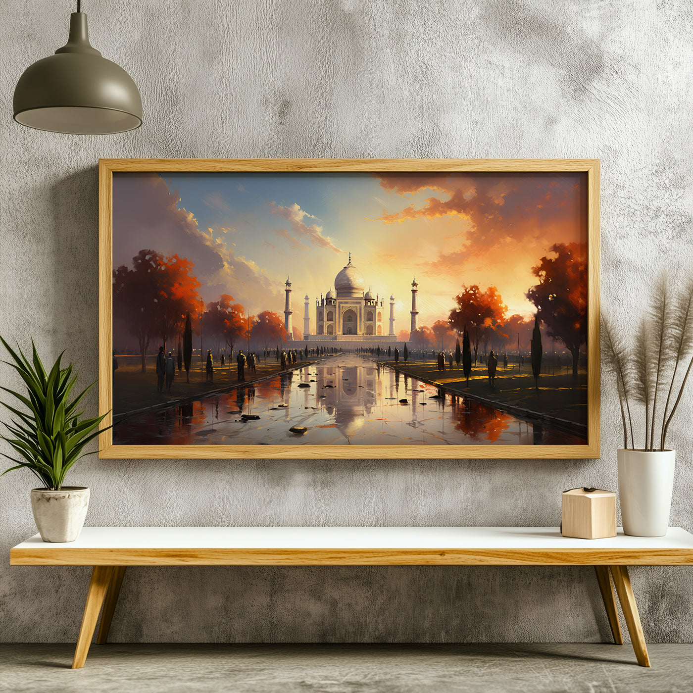 Celebrate the autumnal beauty of the Taj Mahal with our Indian art collection, capturing the iconic monument in the warm hues of fall. Each piece reflects the timeless elegance of this symbol of love.