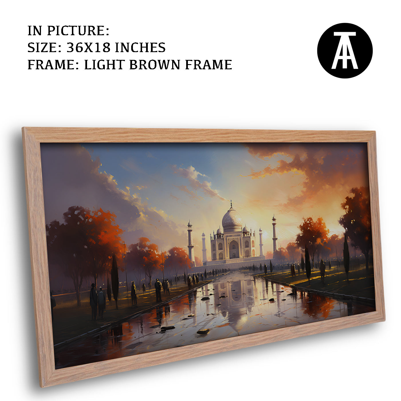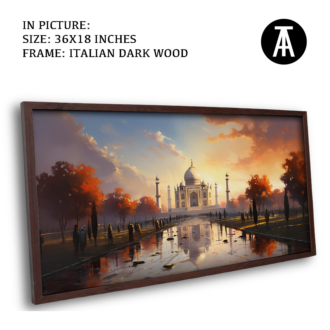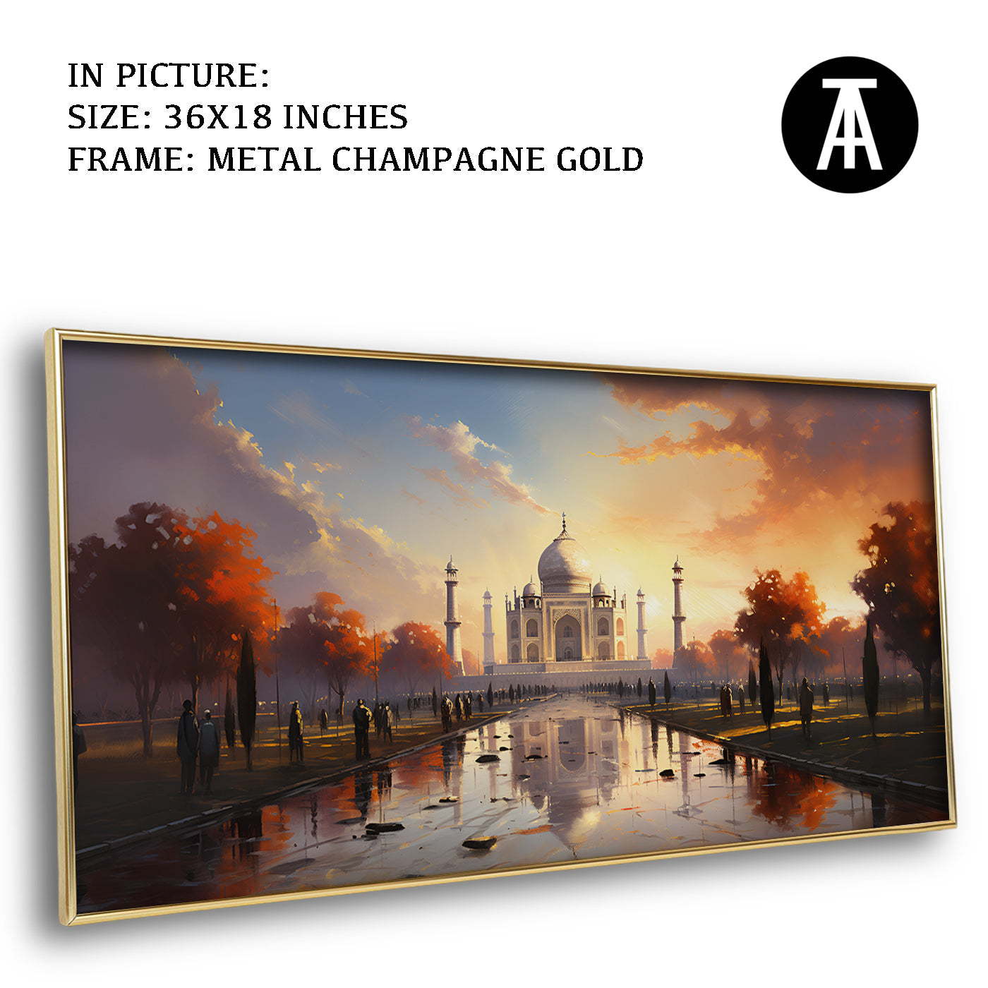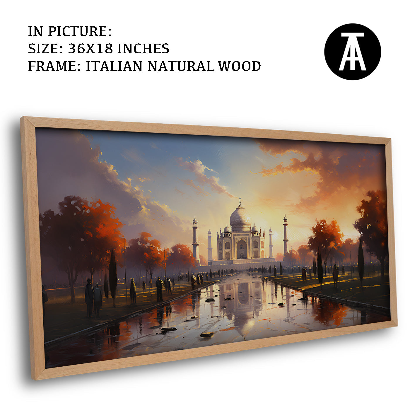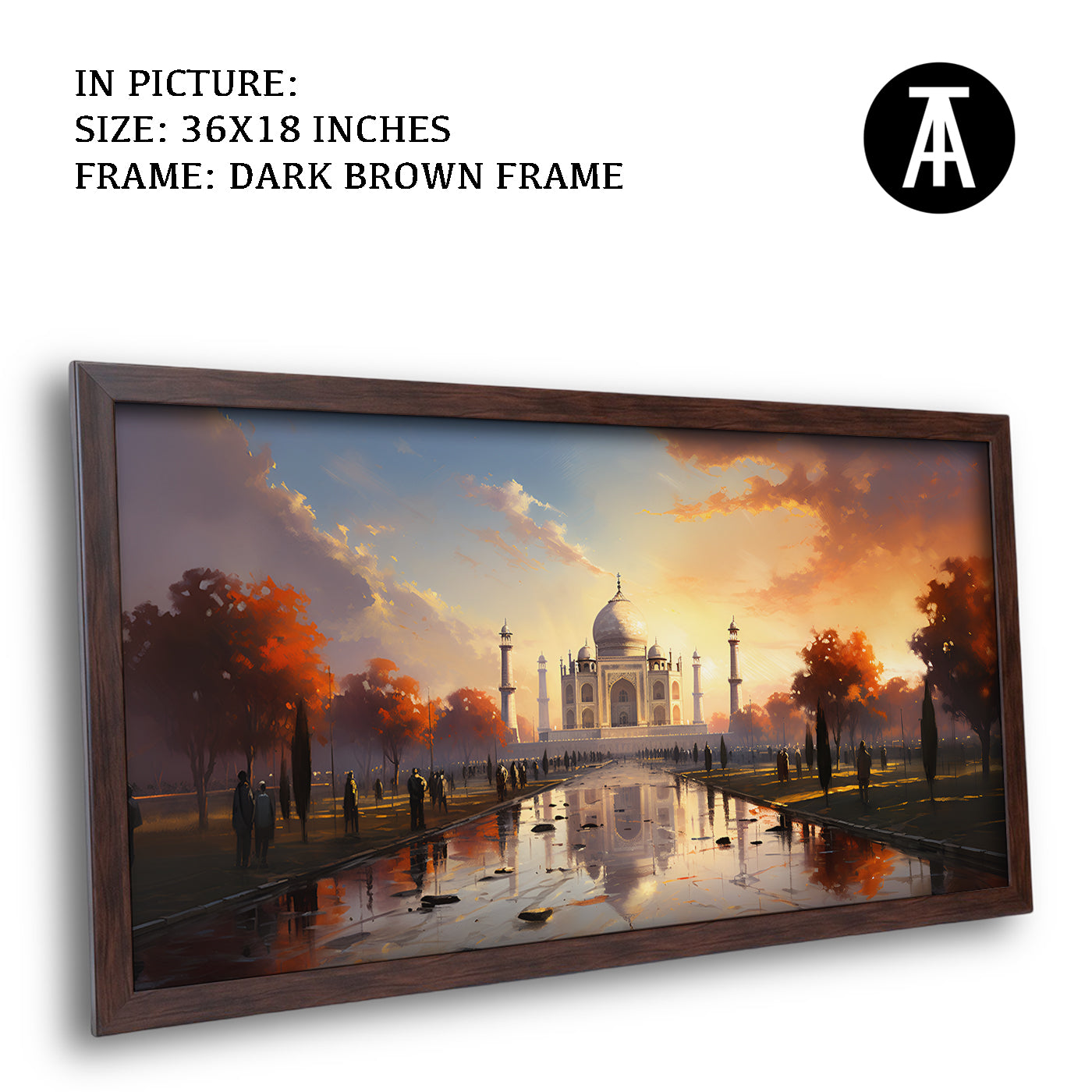 Celebrate the autumnal beauty of the Taj Mahal with our Indian art collection, capturing the iconic monument in the warm hues of fall. Each piece reflects the timeless elegance of this symbol of love.