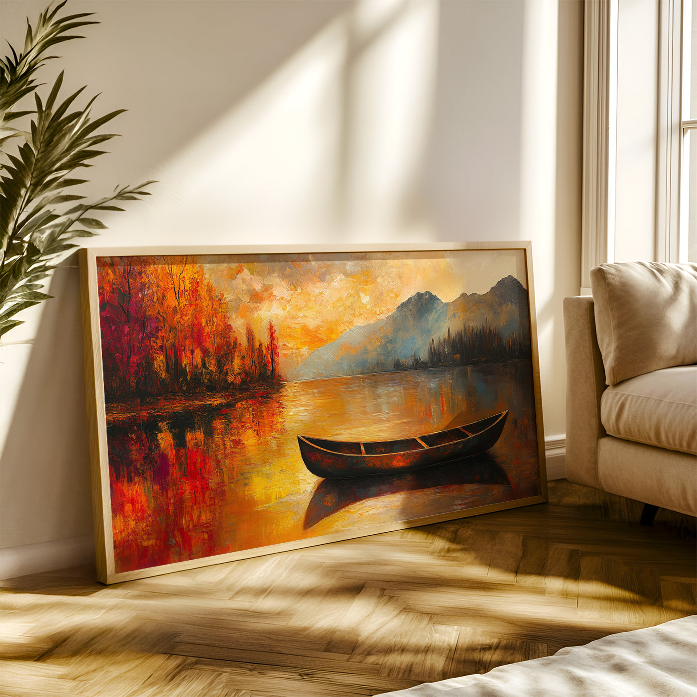 Lonely Kayak depicts a lone kayak standing still in the water, emphasizing solitude and quiet reflection. The artwork captures the serene, empty space around the boat, creating a sense of peaceful isolation. Perfect for adding a touch of calm and introspection to your décor.