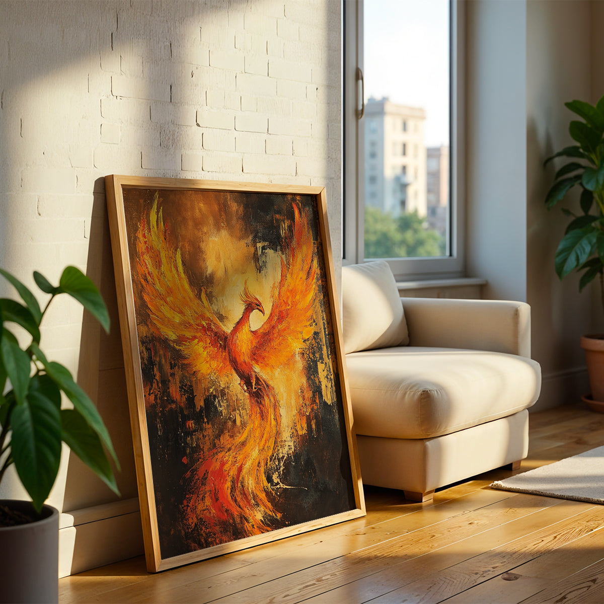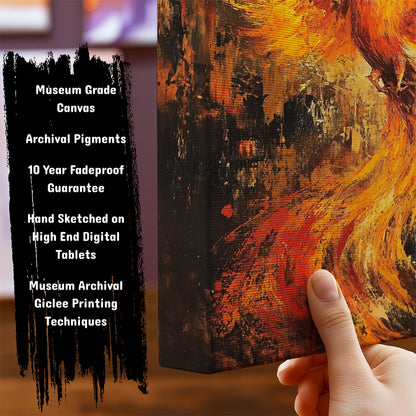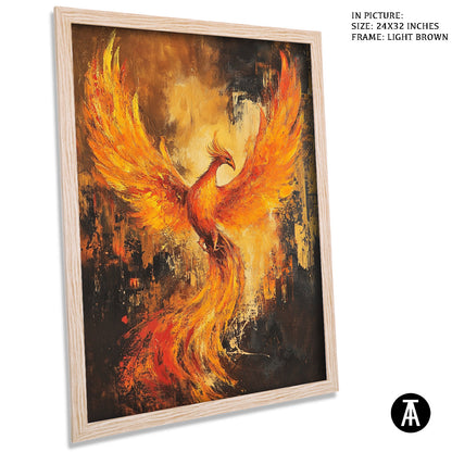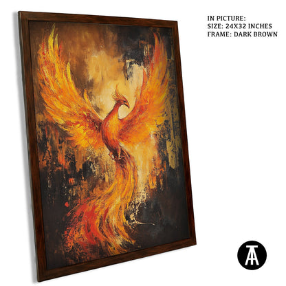 This artwork, "The Phoenix," features a beautiful, colorful bird rising from the flames. The phoenix symbolizes rebirth and new beginnings. Framed and ready to hang, it adds a touch of magic and inspiration to any space.