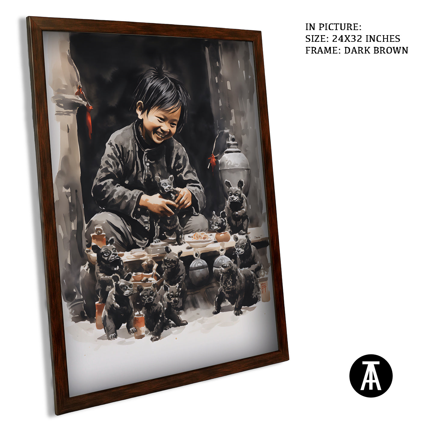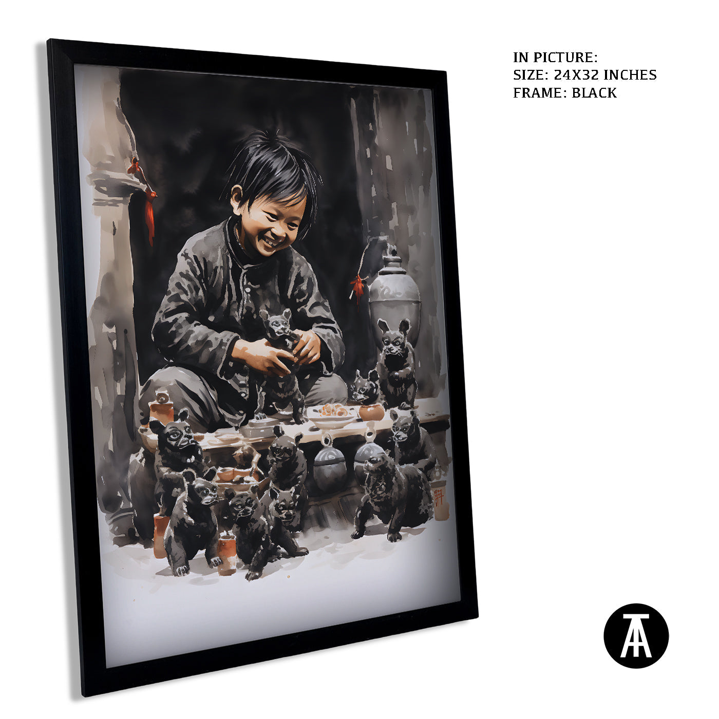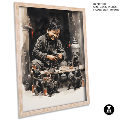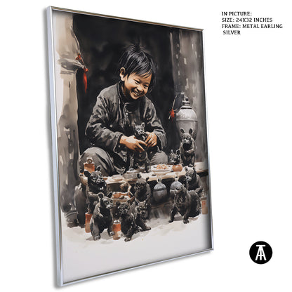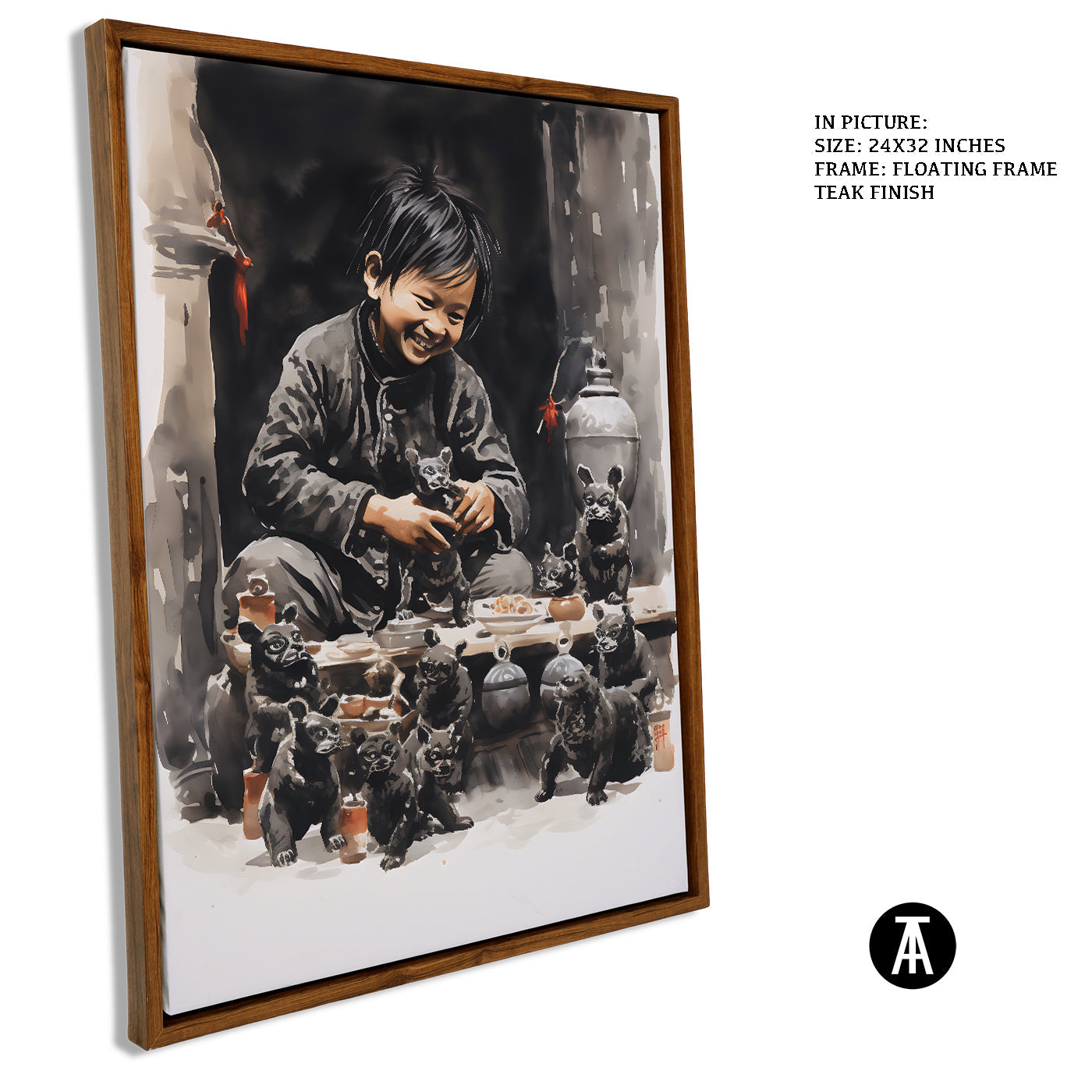 Immerse yourself in the wonder of Vietnamese craftsmanship with "The Toy Maker's Child," a delightful watercolor painting portraying a child joyfully playing with freshly made lacquer toys. This artwork captures the innocence and cultural significance of traditional Vietnamese toys, making it a cherished addition to any travel-inspired art collection. Celebrate the joys of childhood and Vietnamese heritage with this heartwarming piece.