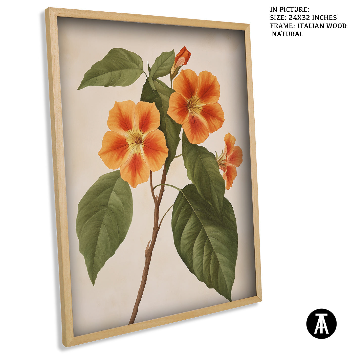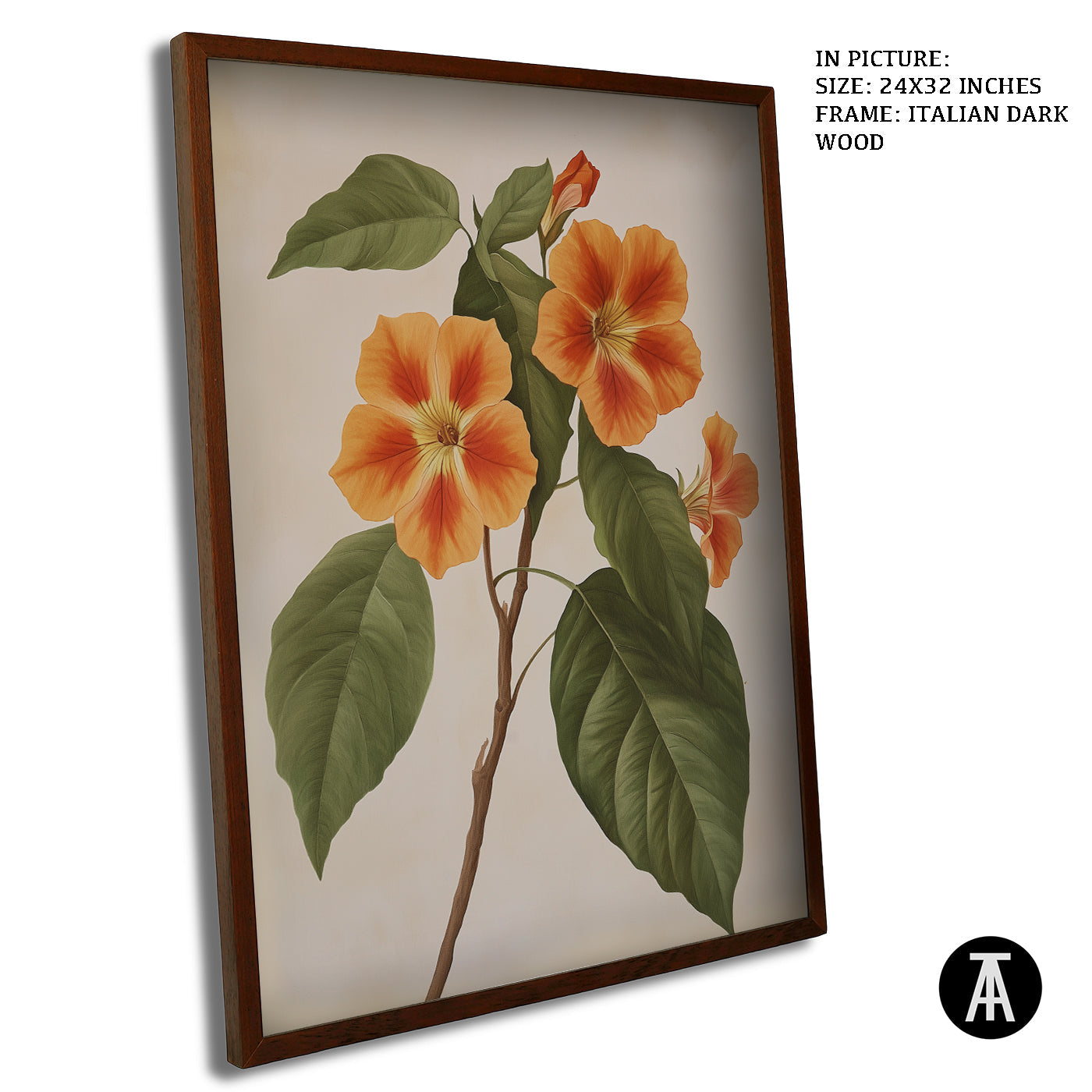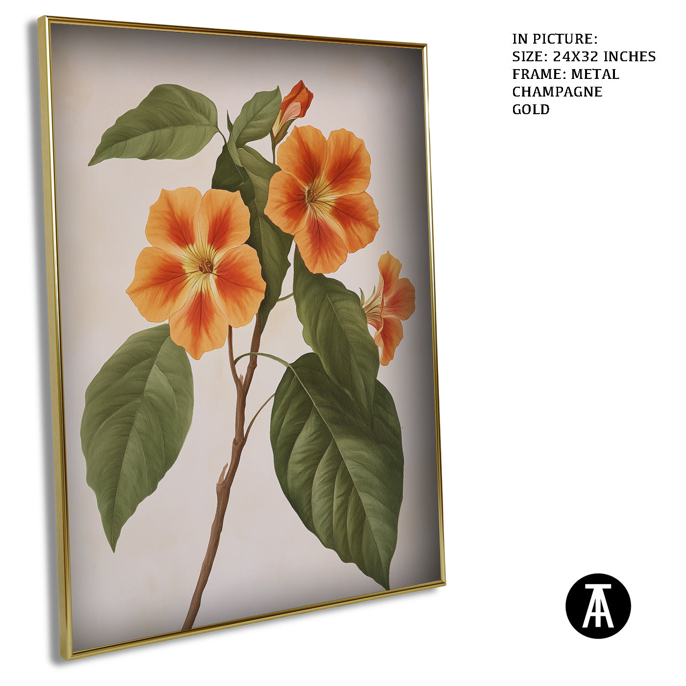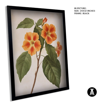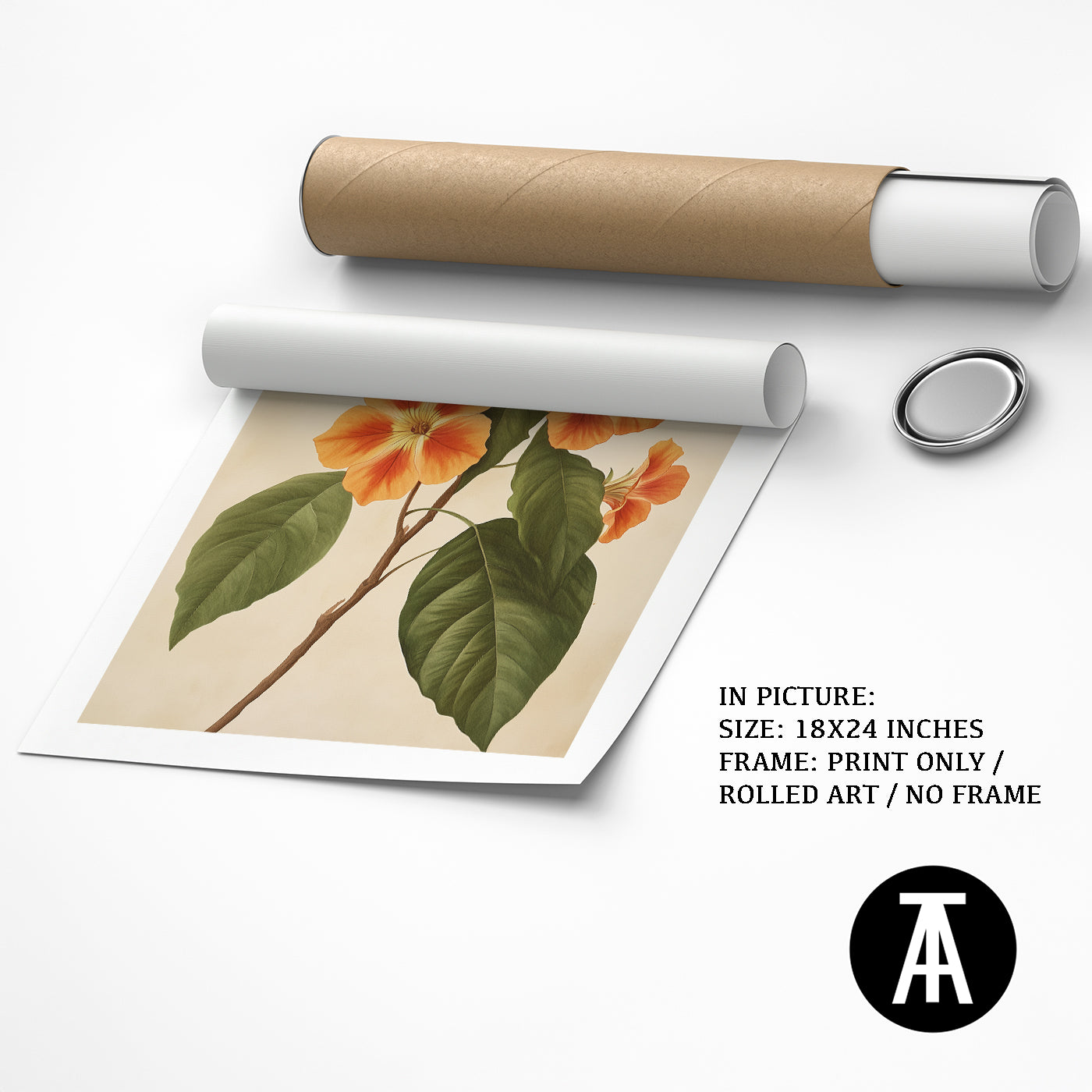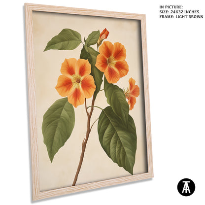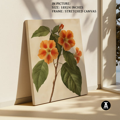This artwork showcases the unique beauty of Thunbergia Gibsonii, a striking plant with vibrant flowers. The bold colors and detailed design create an eye-catching piece. Perfect for adding a touch of exotic charm to your home. A wonderful choice for anyone who enjoys botanical art.