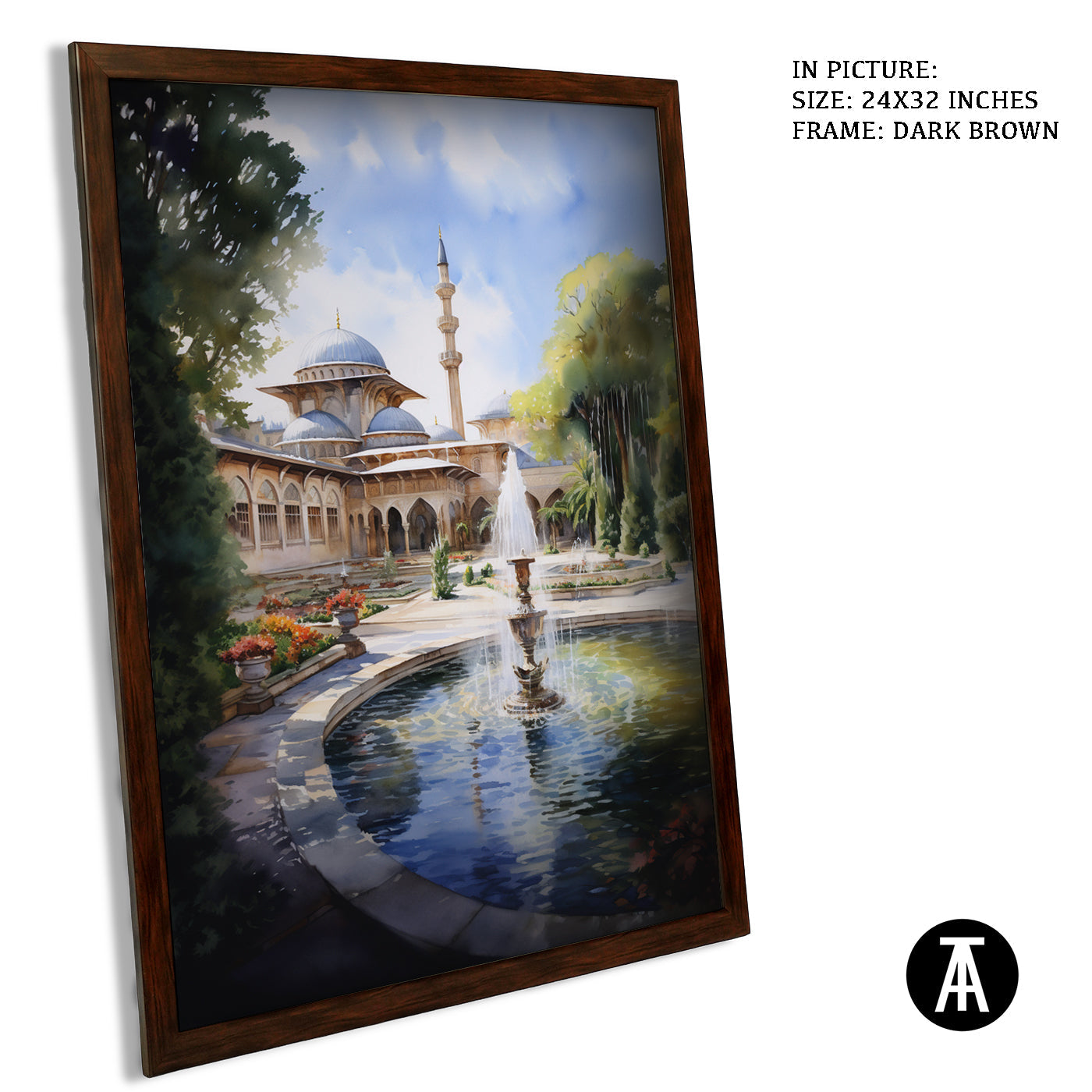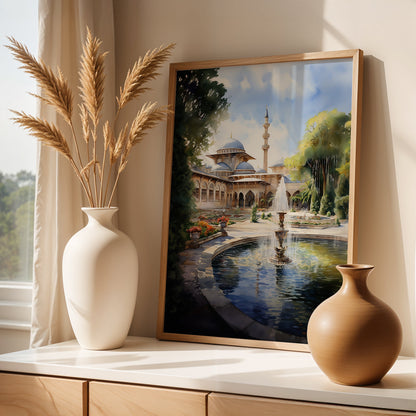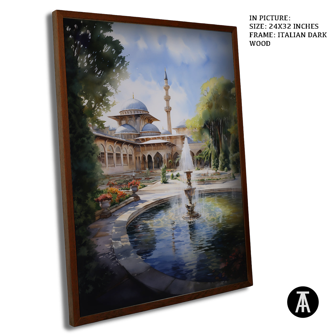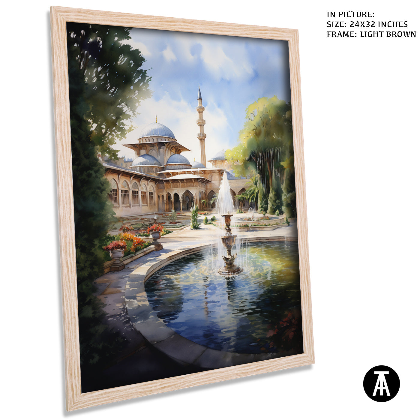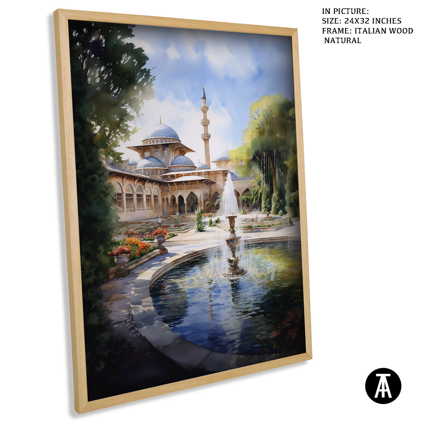 Immerse yourself in the regal history of Istanbul with a framed artwork featuring the majestic Topkapi Palace. This luxurious piece seamlessly blends luxury decor and historical charm, making it an ideal addition to your wall art collection. Elevate your interior design with the opulence and cultural significance of this iconic Istanbul landmark.